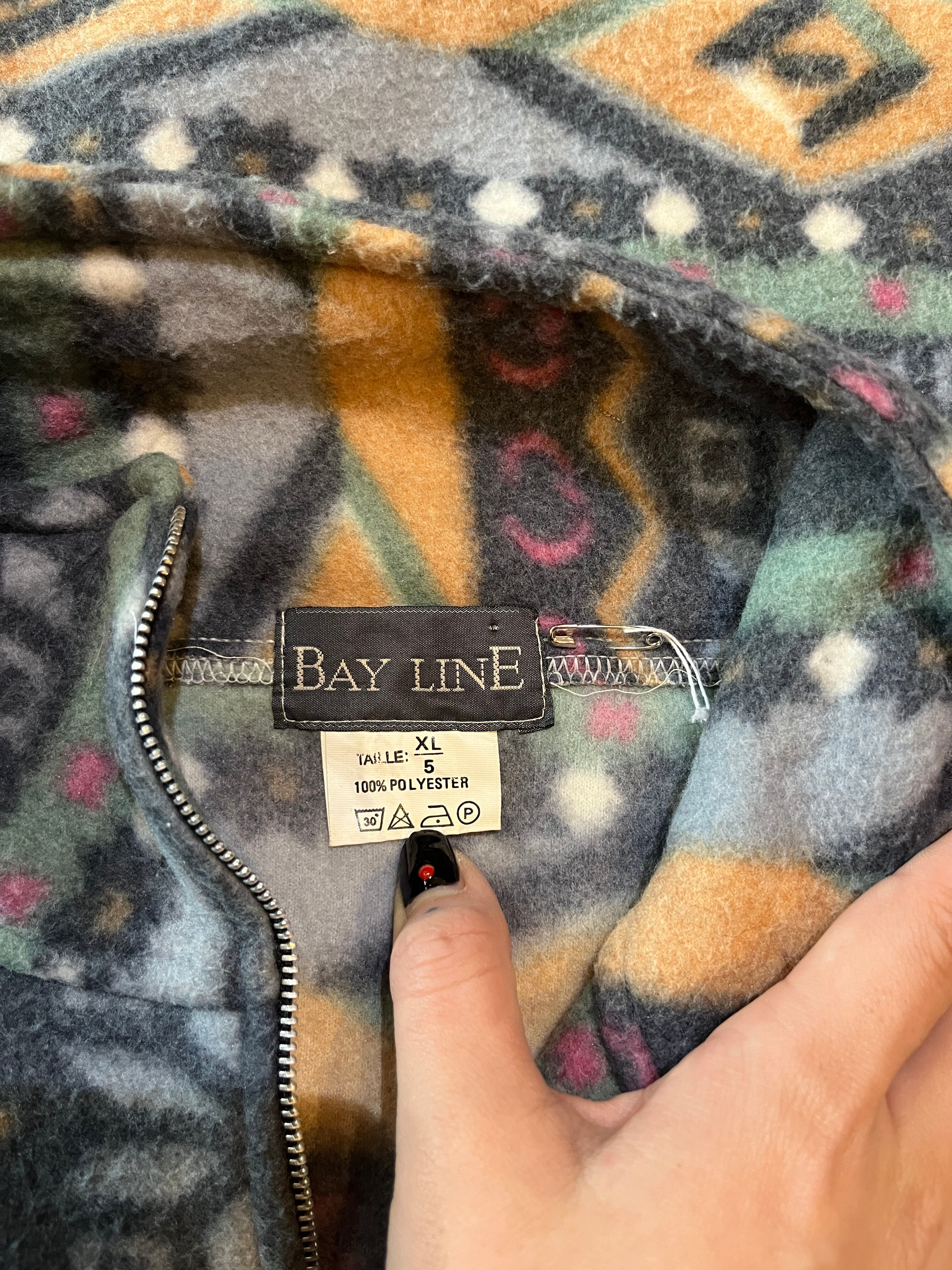 幾何学模様が連なっているけど、色数を抑えているから全体に落ち着きが感じられます。スタイリングの中に自然と溶け込みますね。