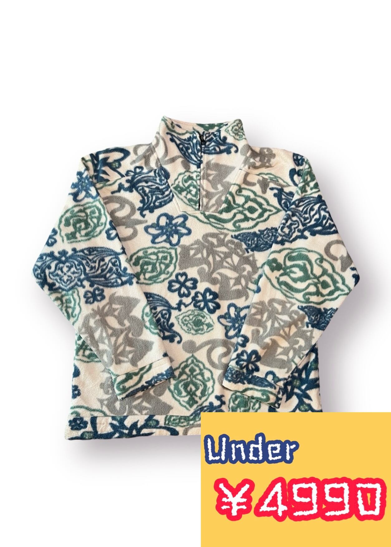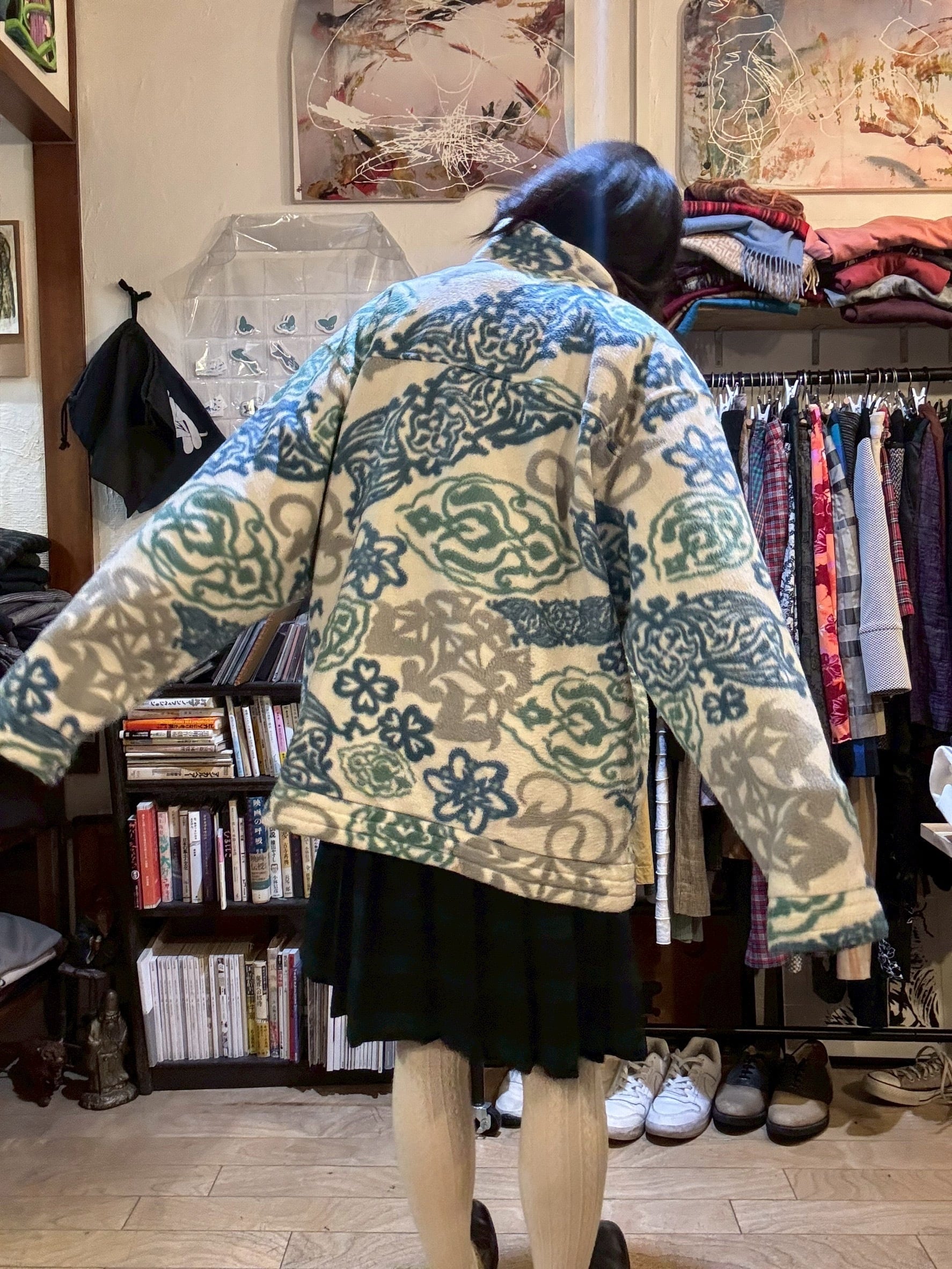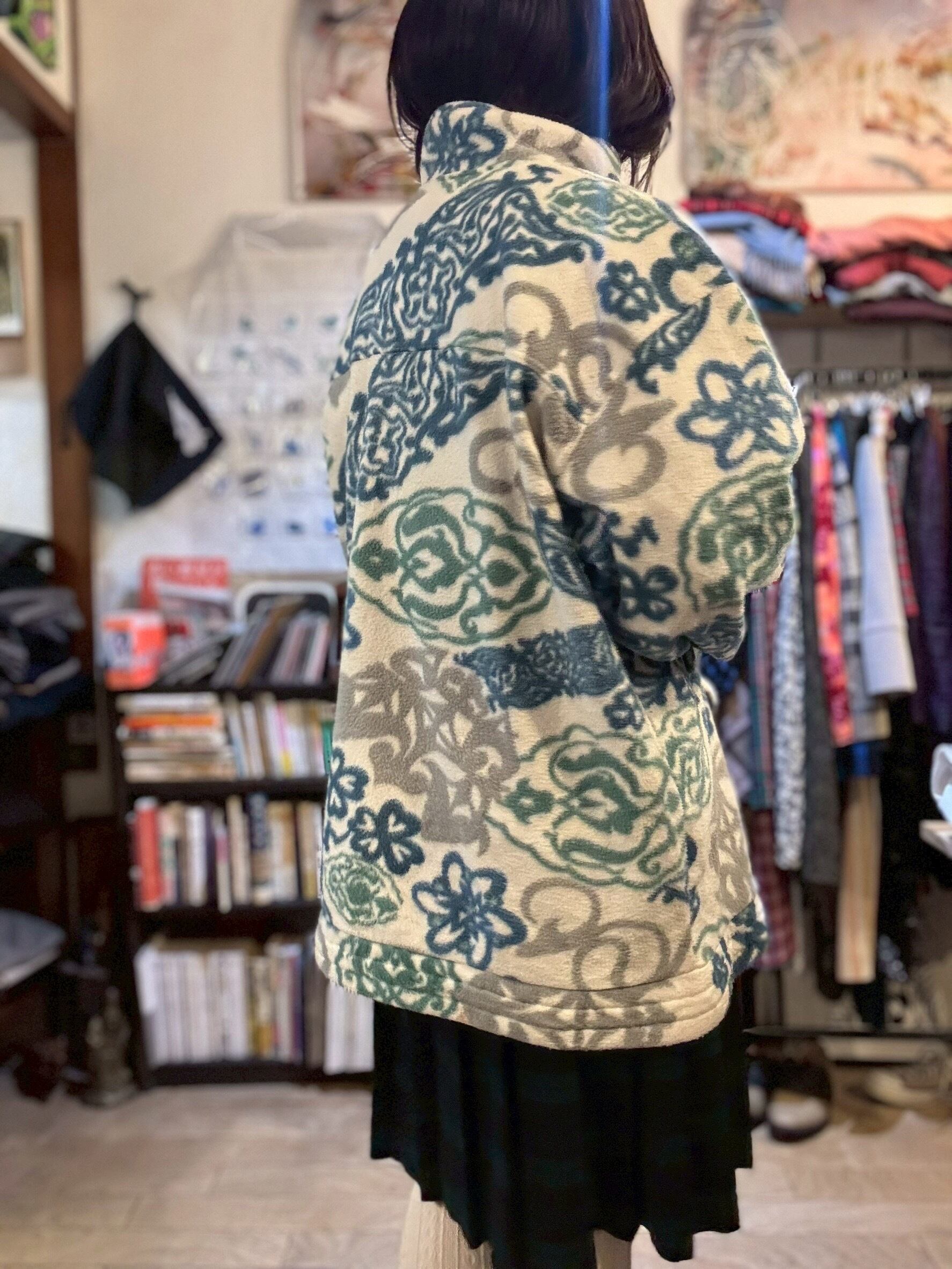 ホワイトベースのフリースジャケット。