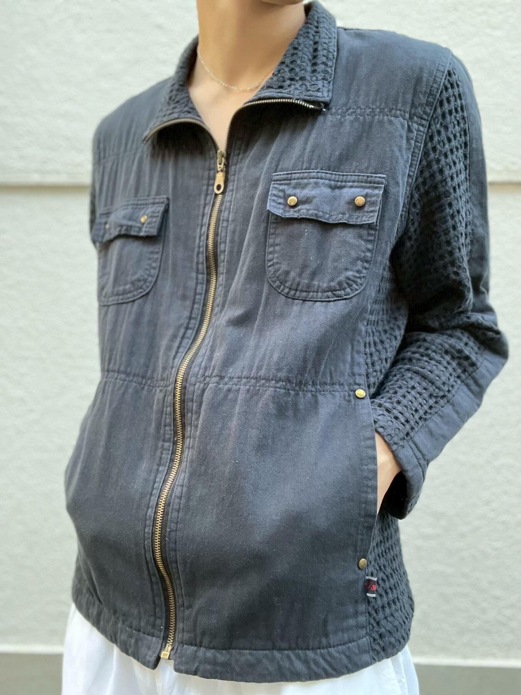 トラックジャケットのような形なのでインナーに忍ばせても良し、暖かくなったら一枚でも良し。