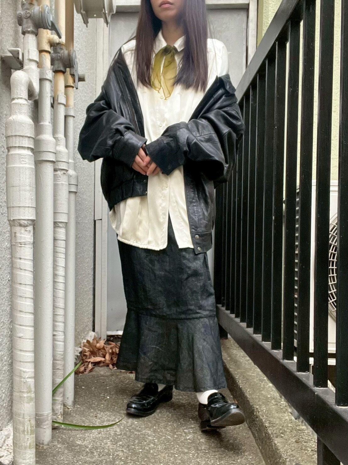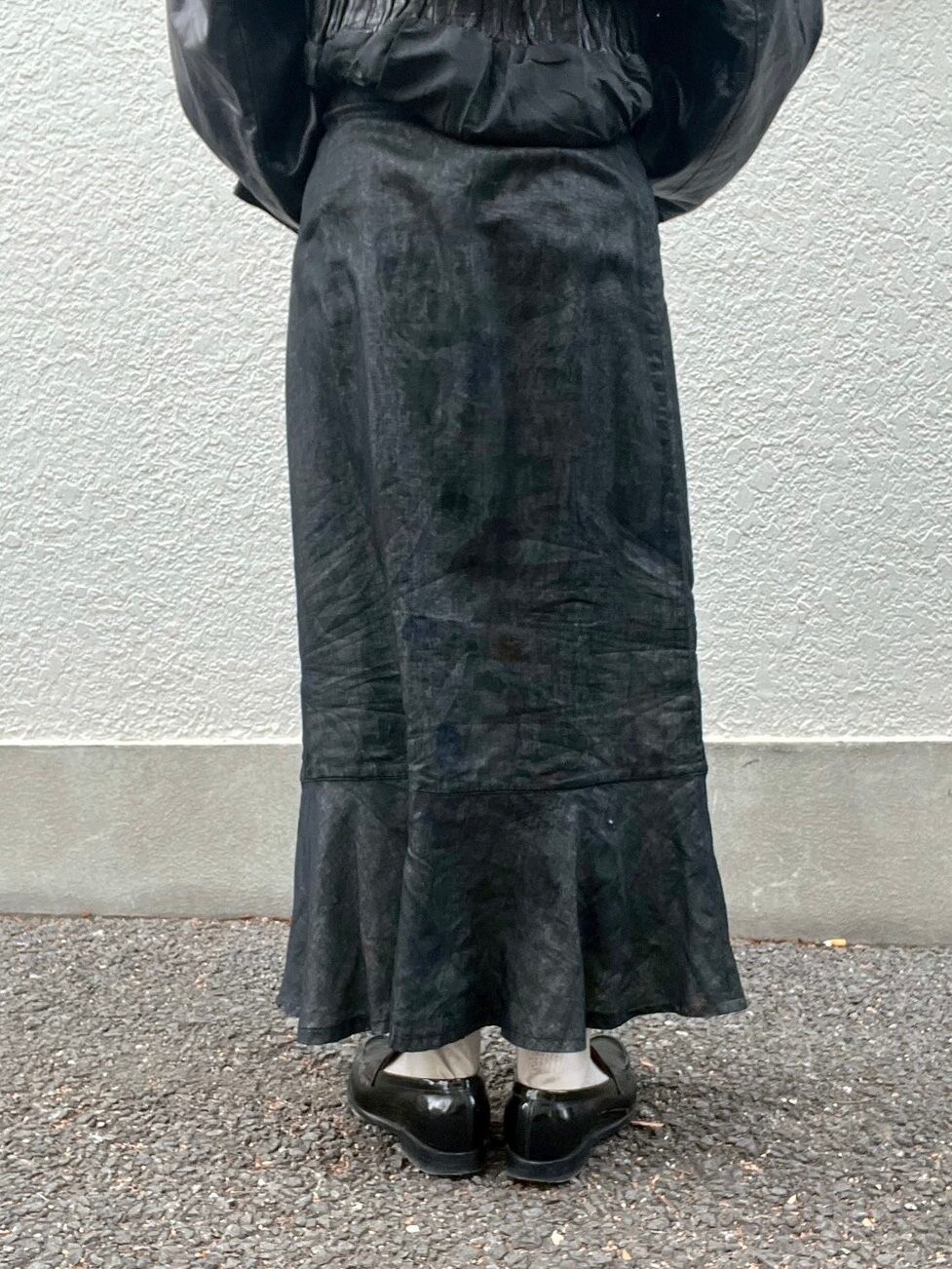 シャリ感のある黒スカート。