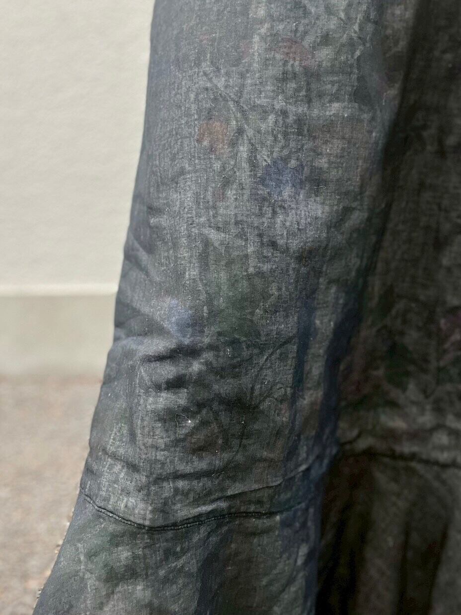 裏地は花柄。外からは見えないけど、脱ぎ着のときにふっと気づくくらいの可愛さ。主張しないけど、ちゃんと遊びがある一着です。