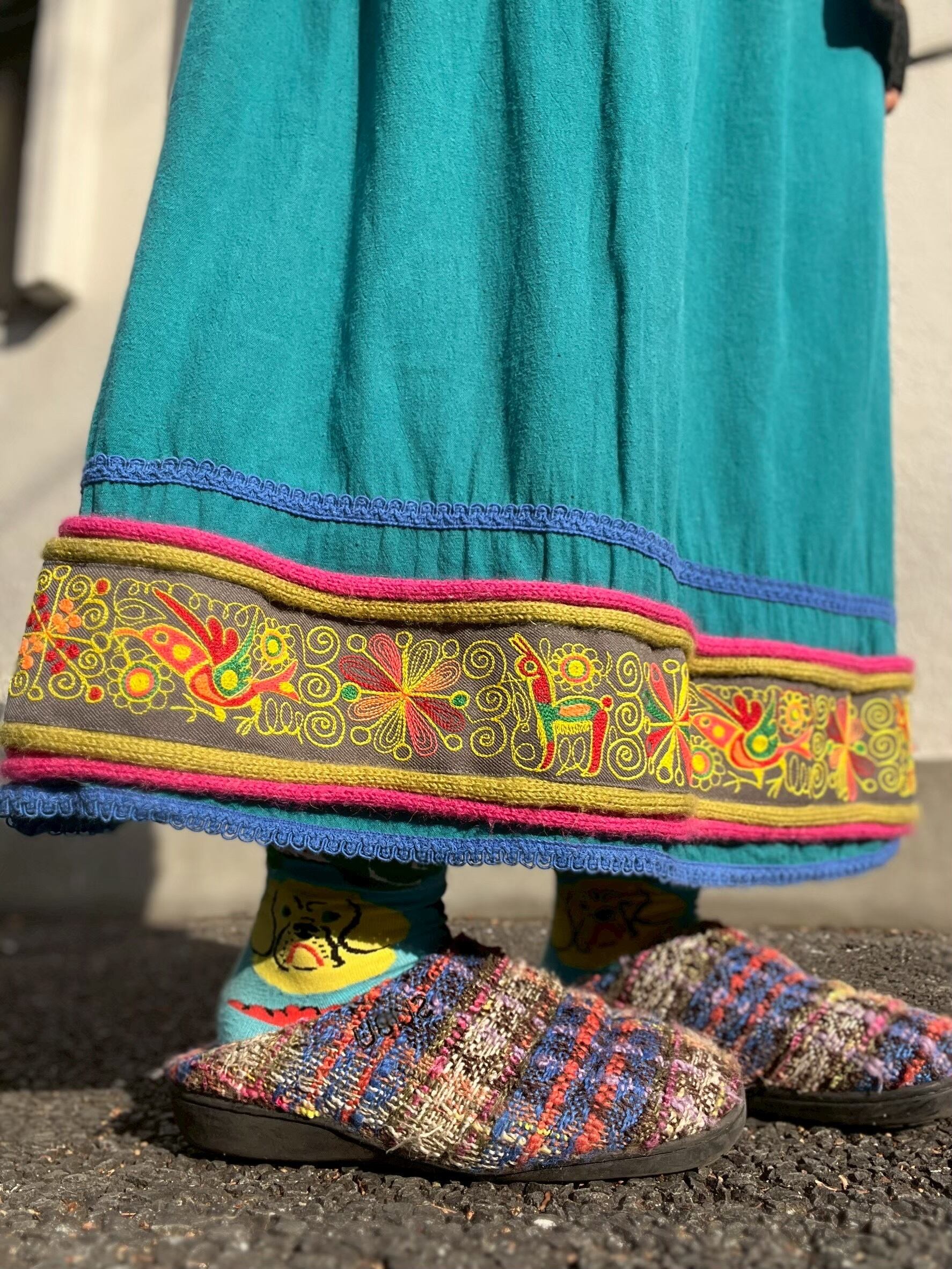 刺繍で切り替えられたコットンスカート。