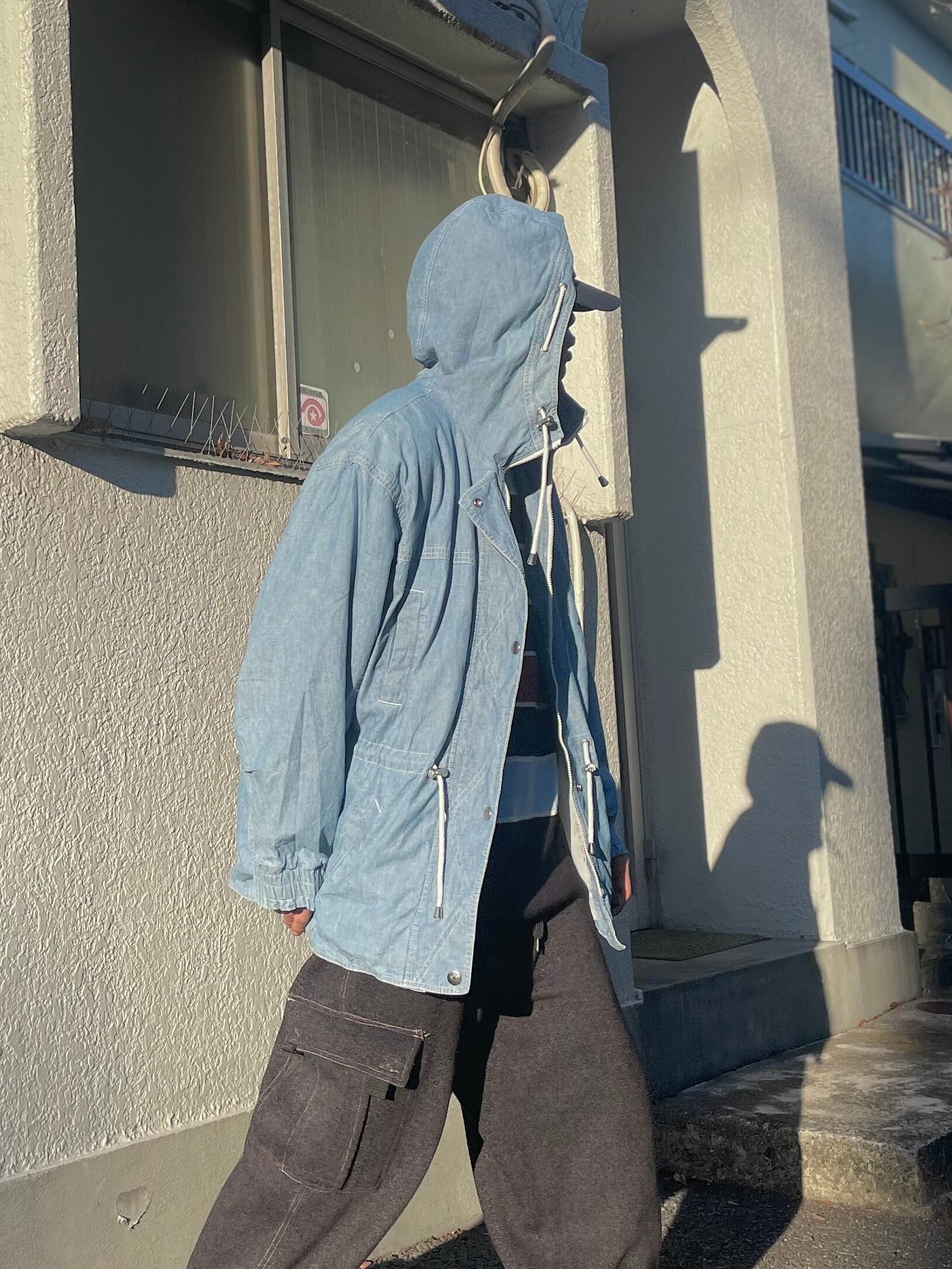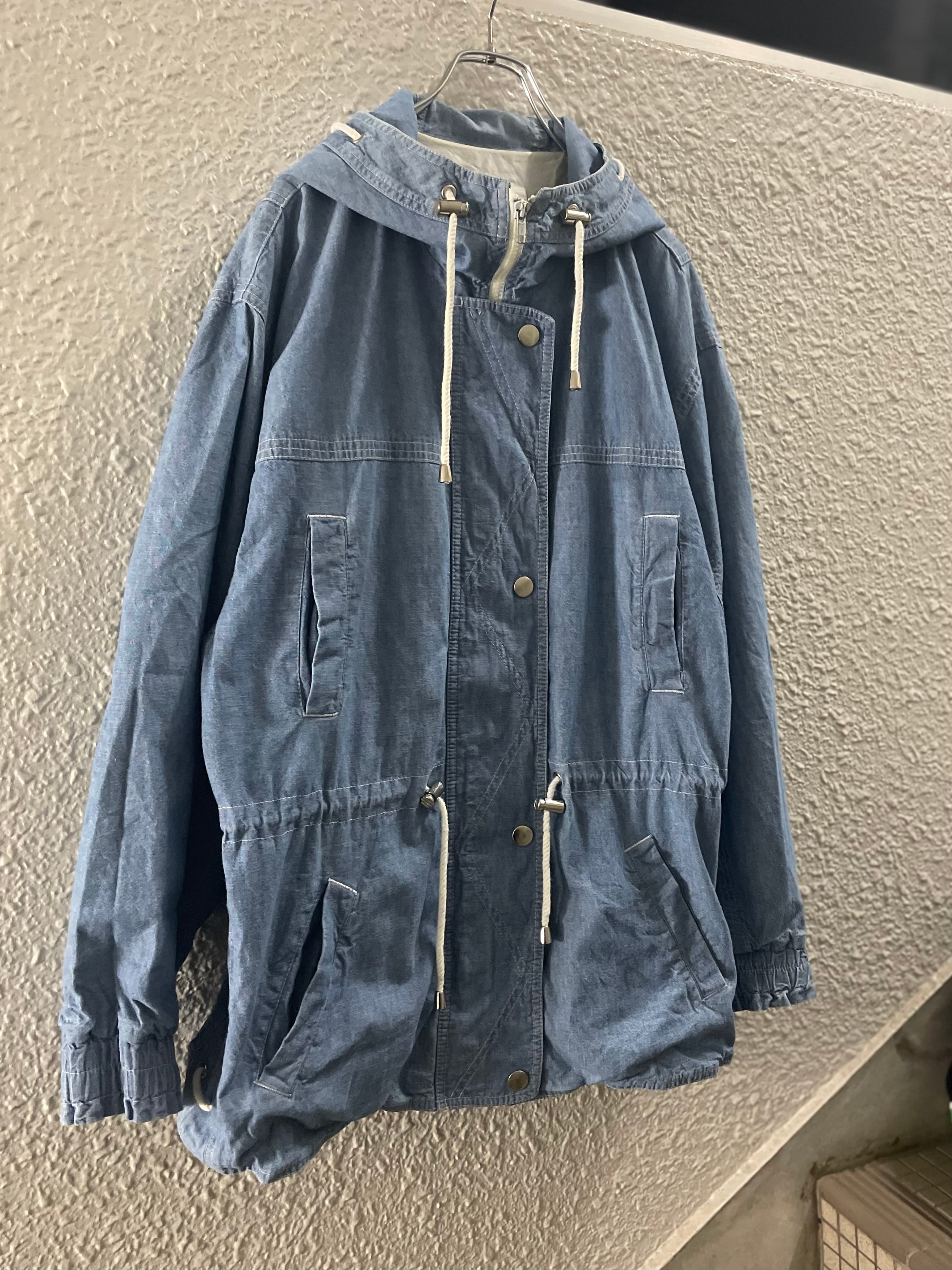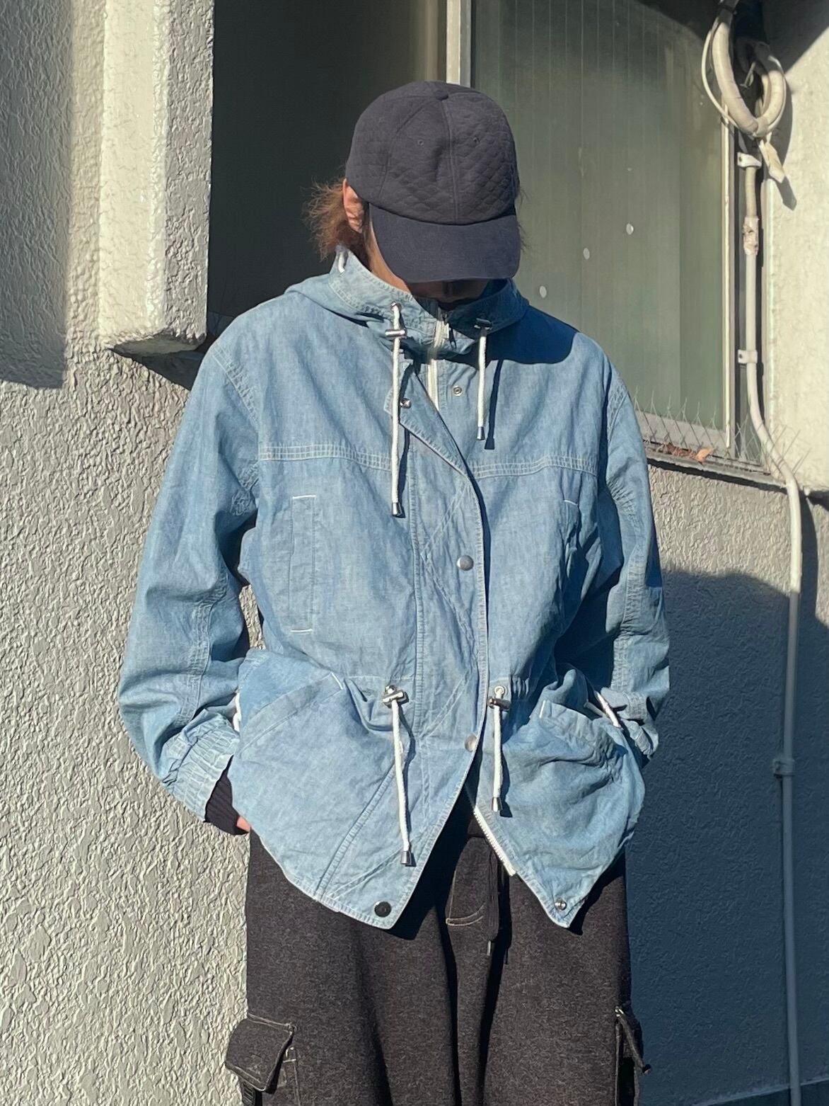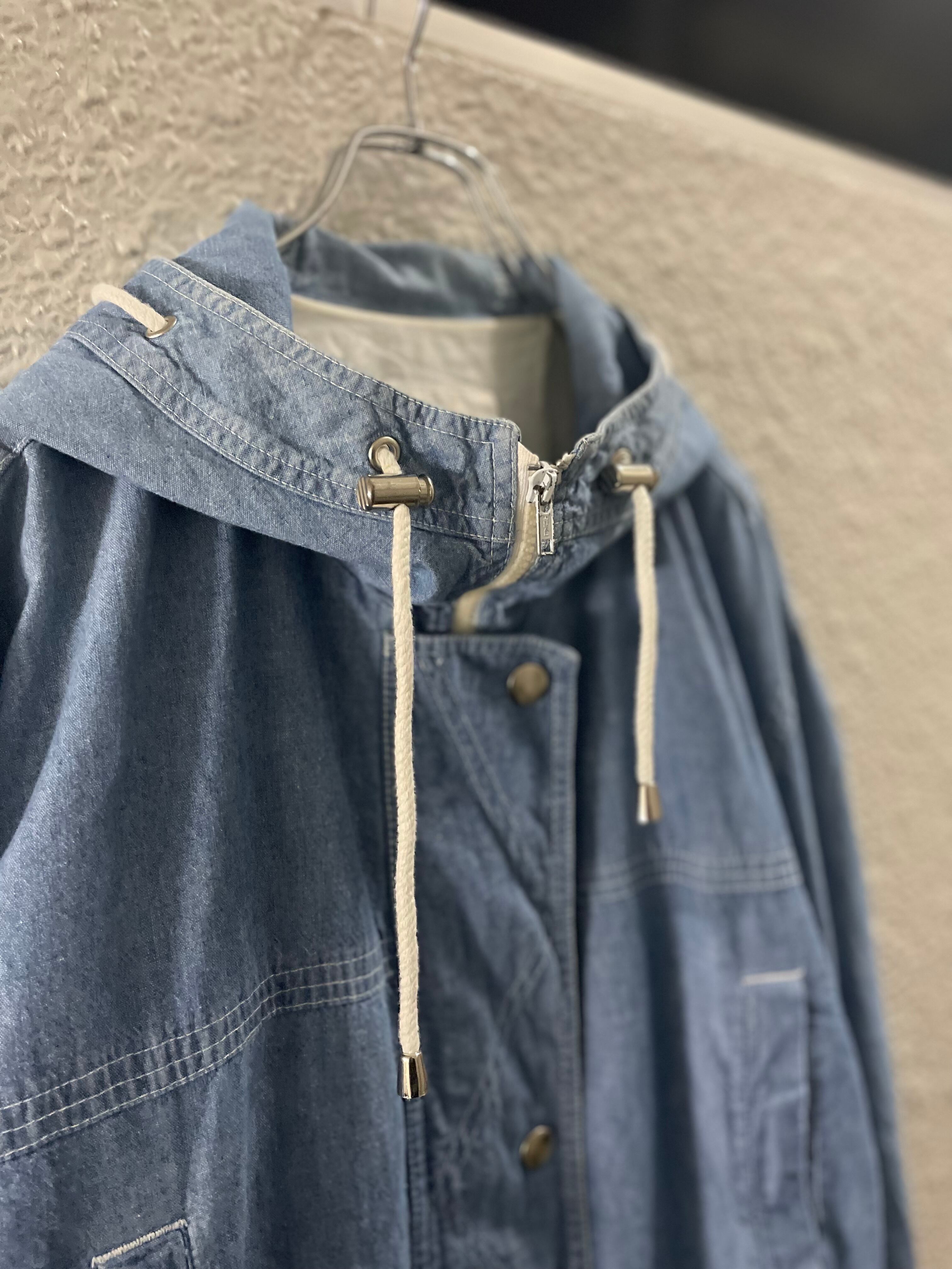 シャンブレーのフーディージャケット。
