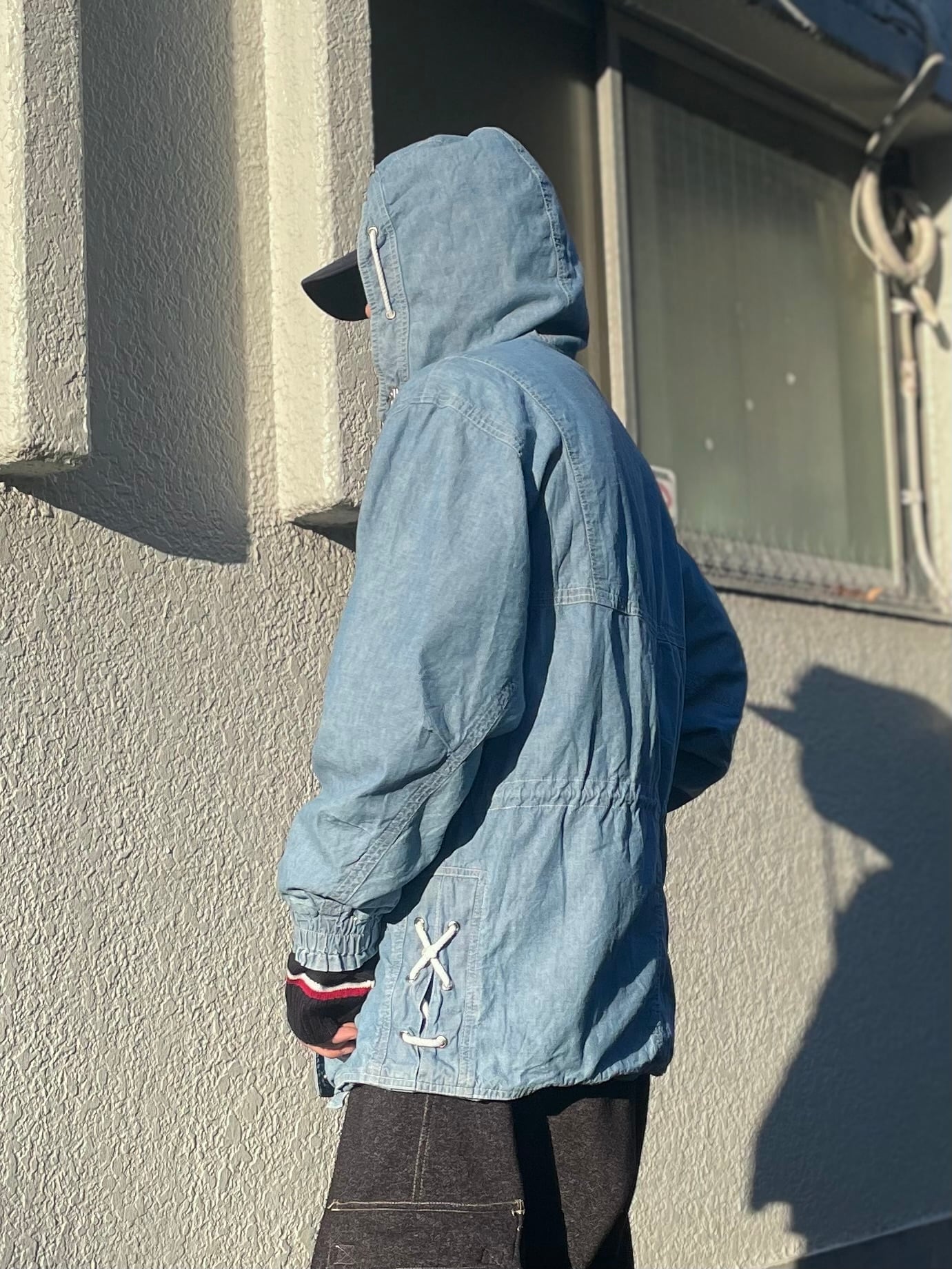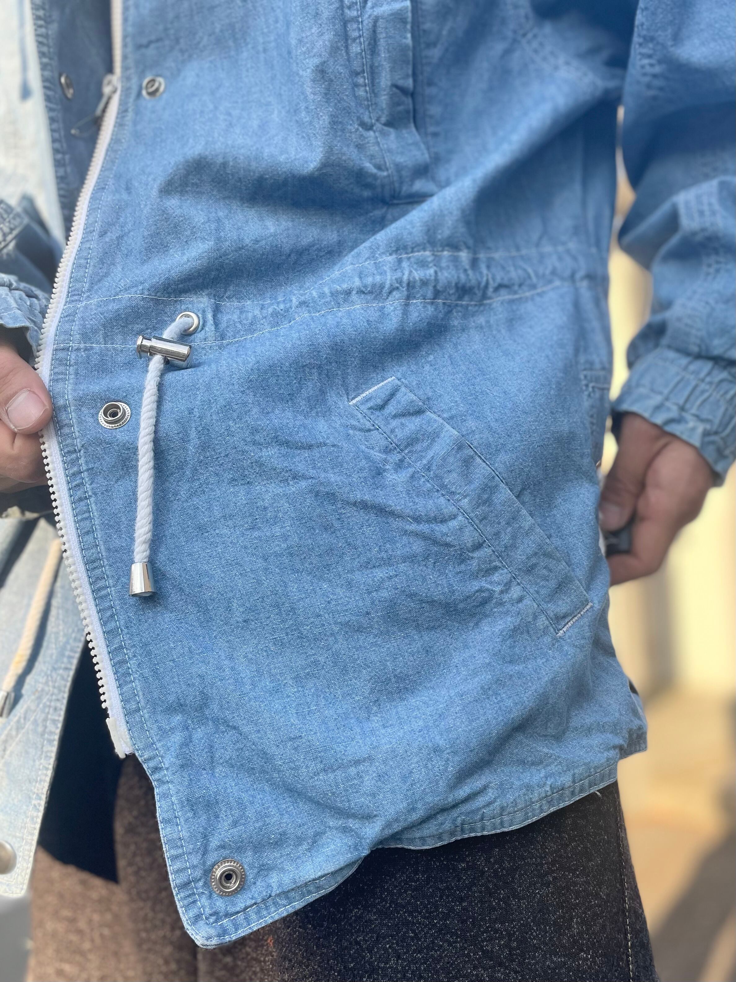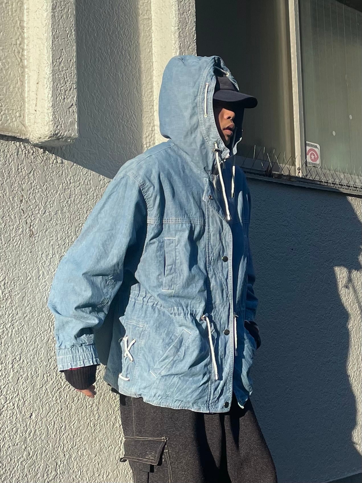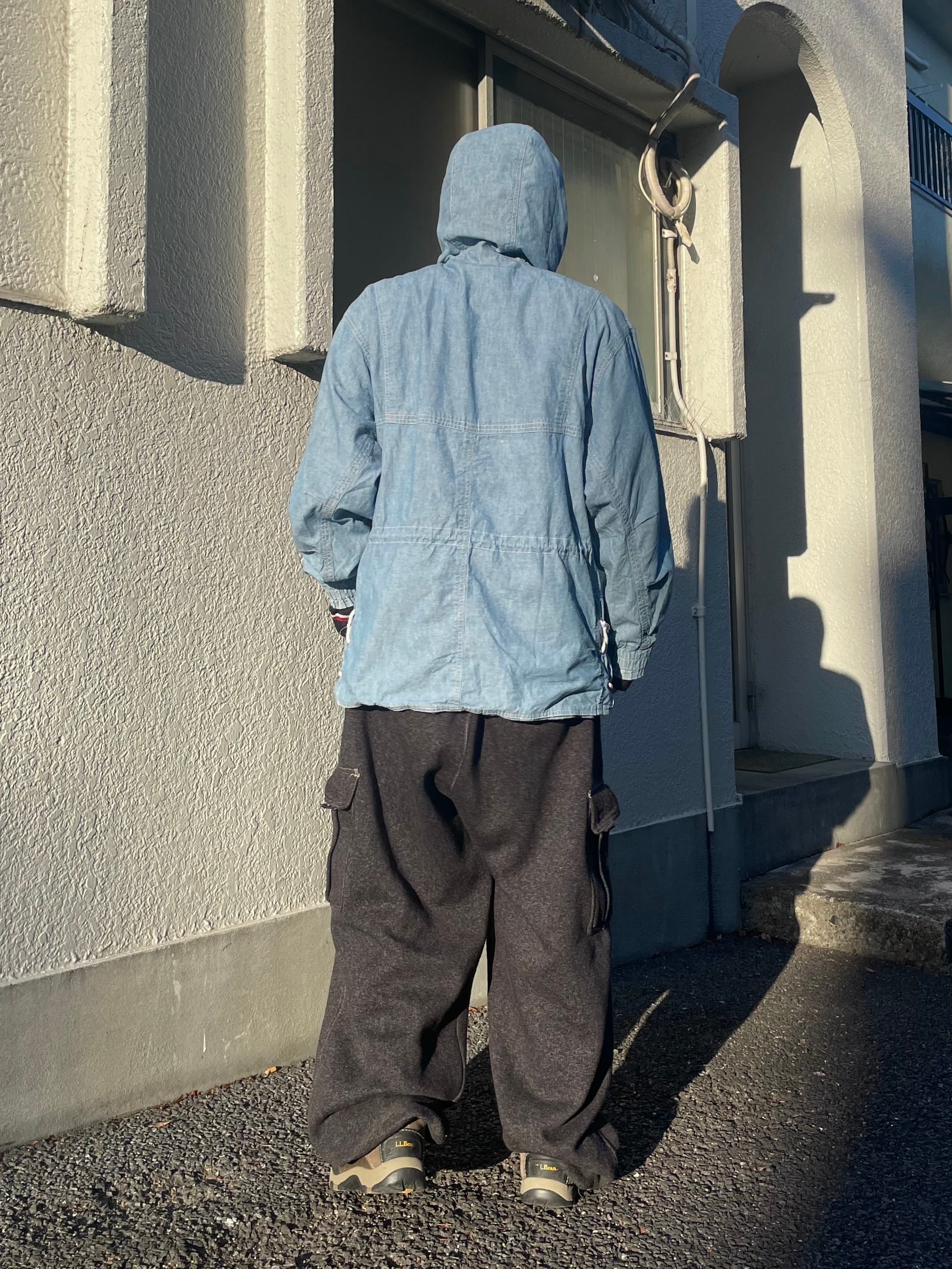 シャンブレーのフーディージャケット。