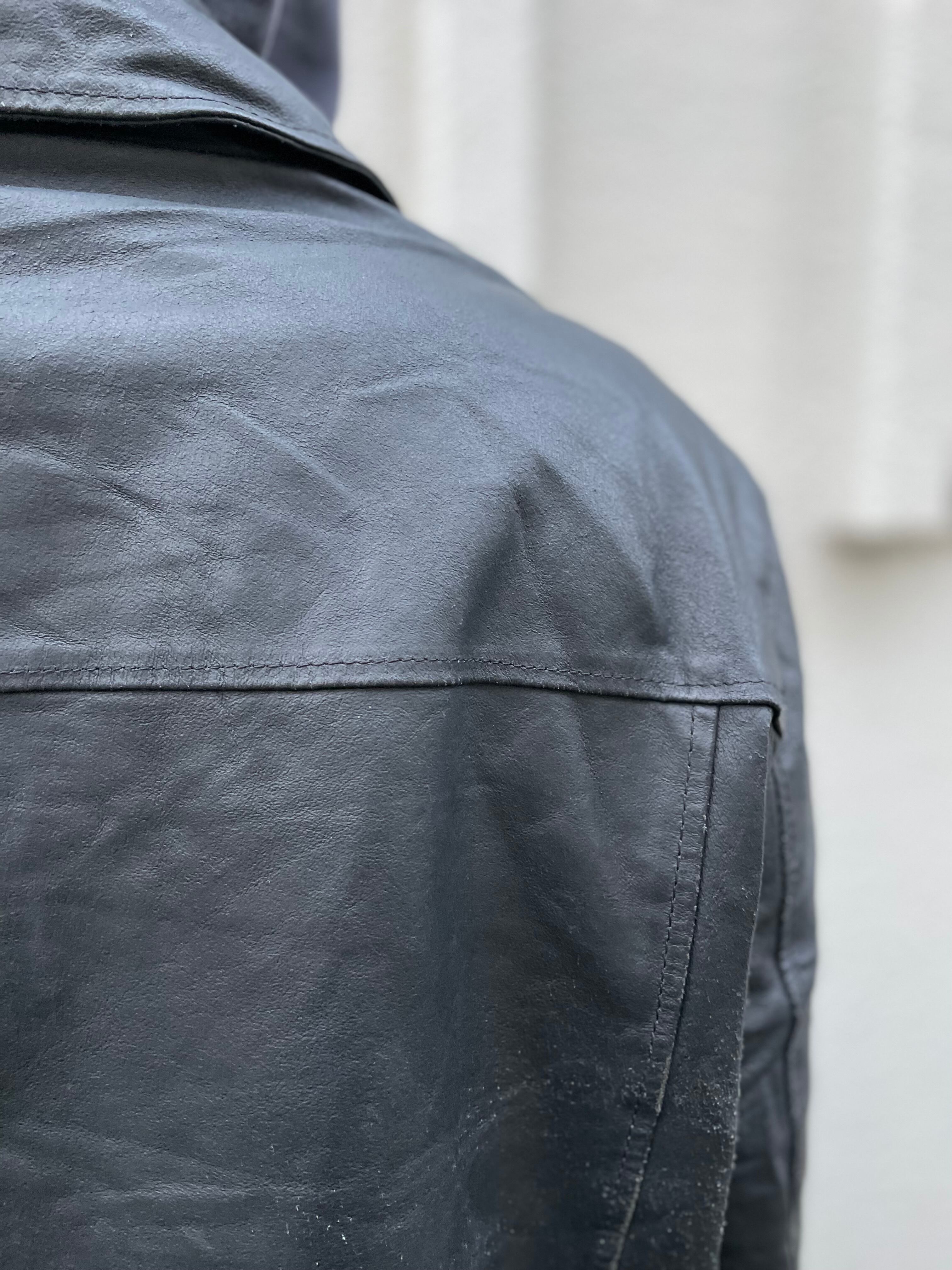 鈍い光を湛えた、黒の革。トラッカータイプのレザージャケット。