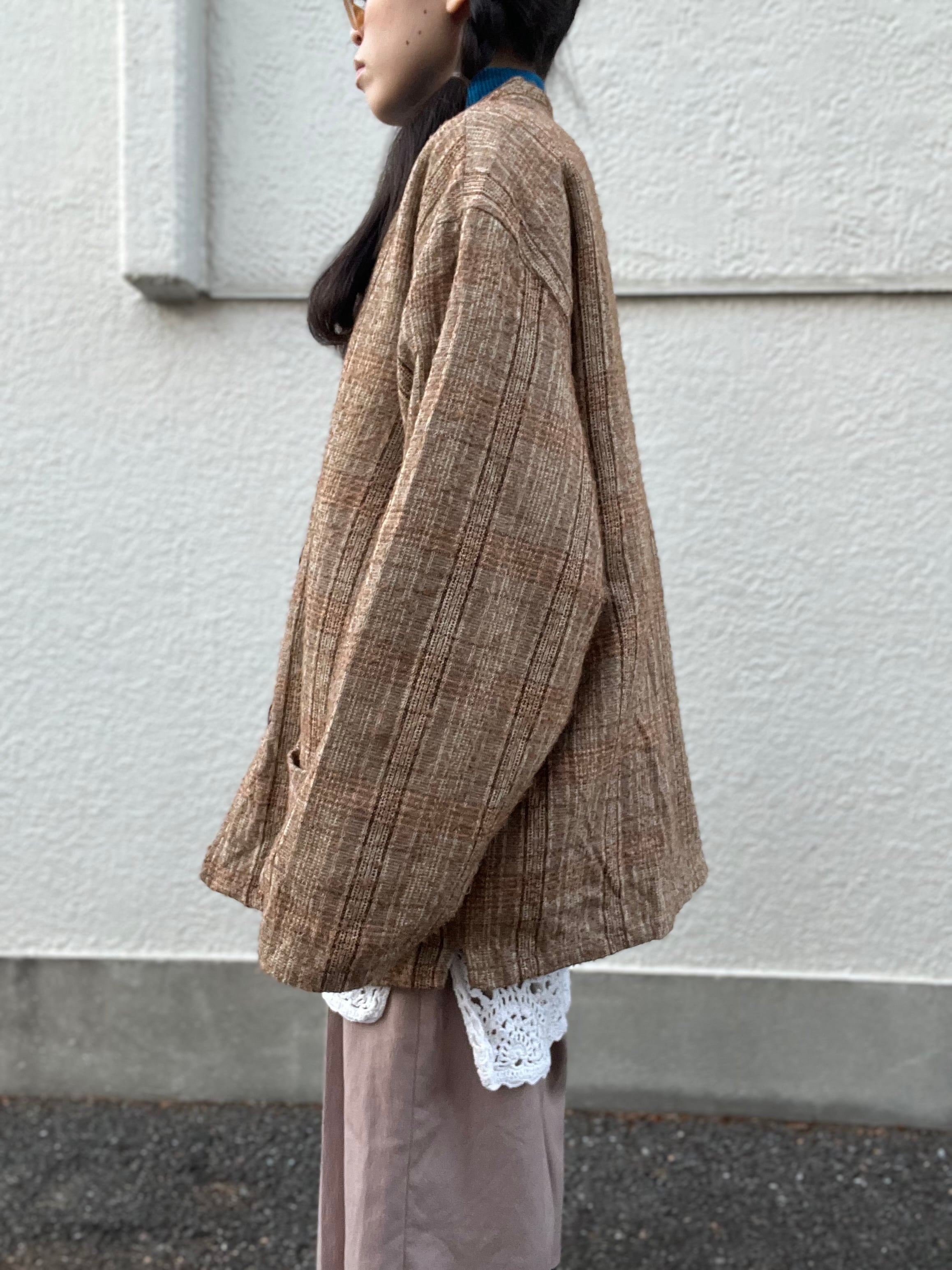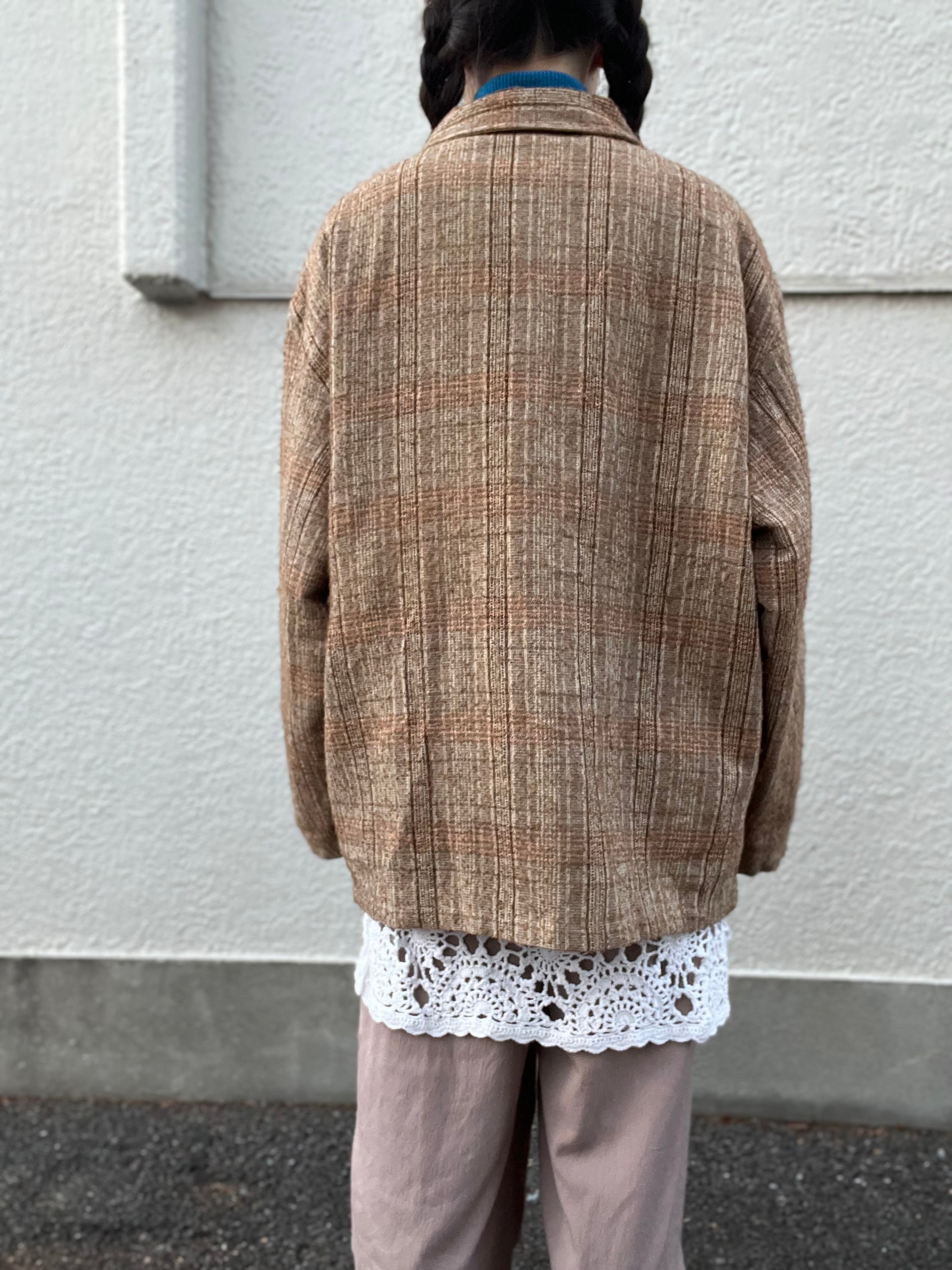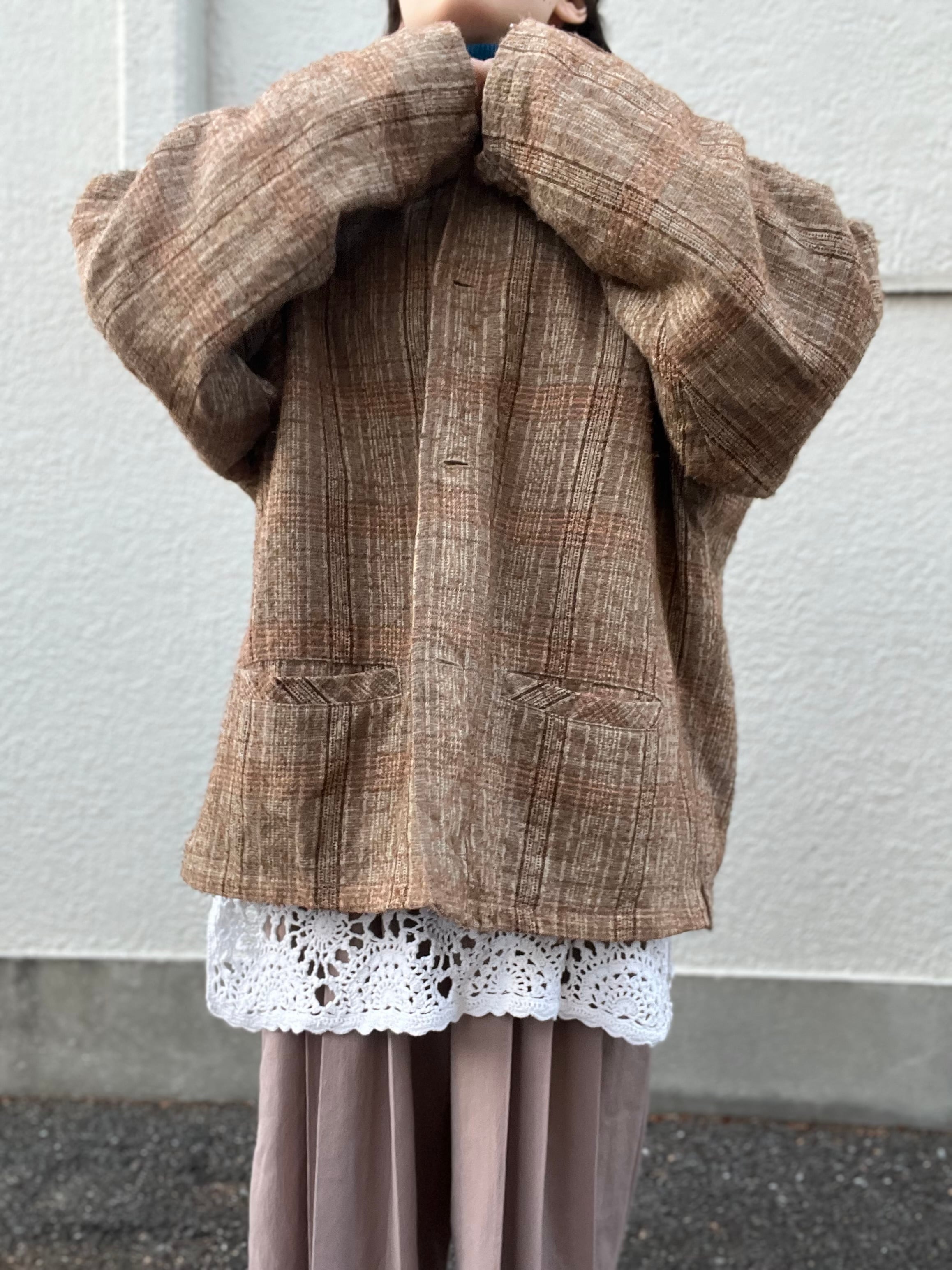 土着的なブラウンを基調したチェックジャケット。