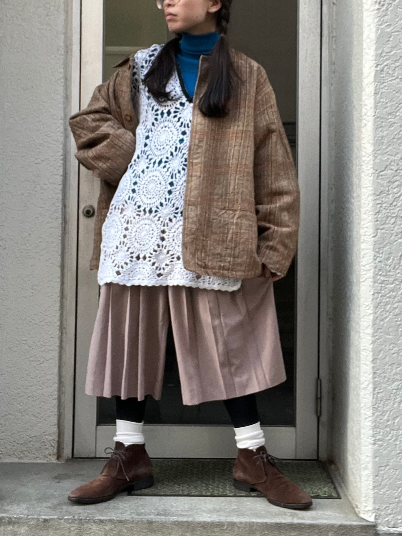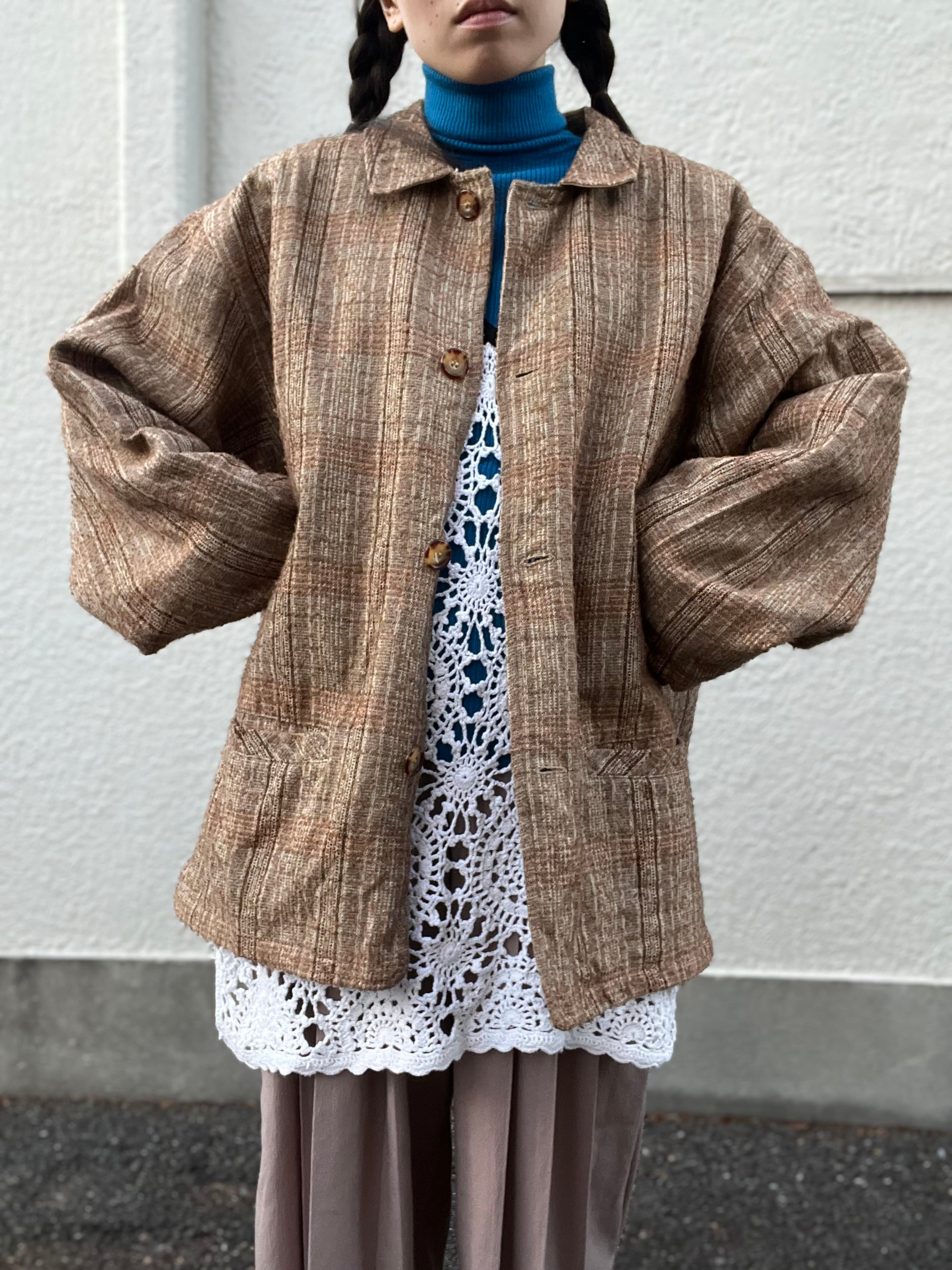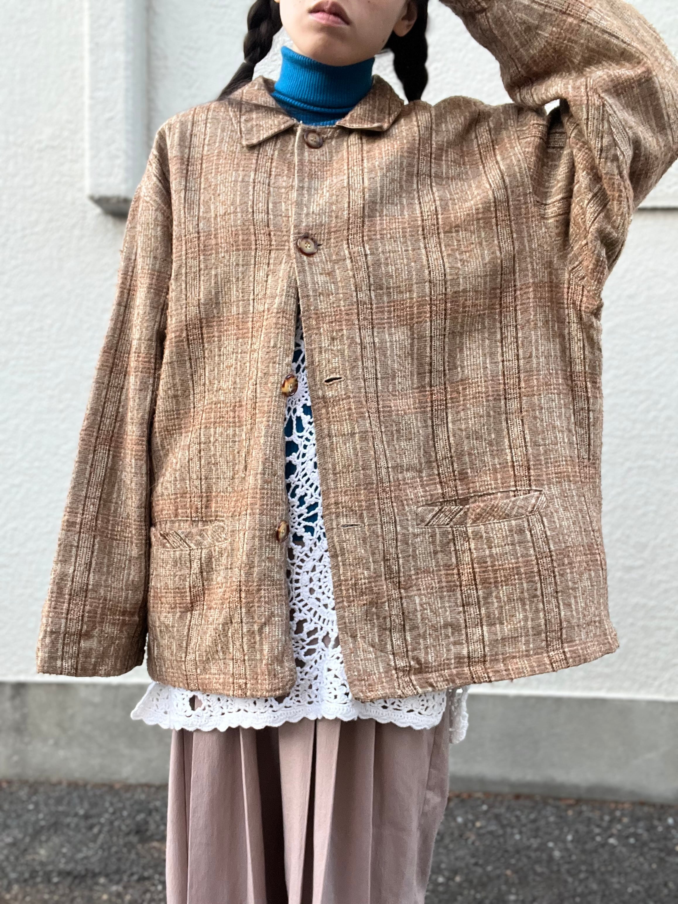 土着的なブラウンを基調したチェックジャケット。