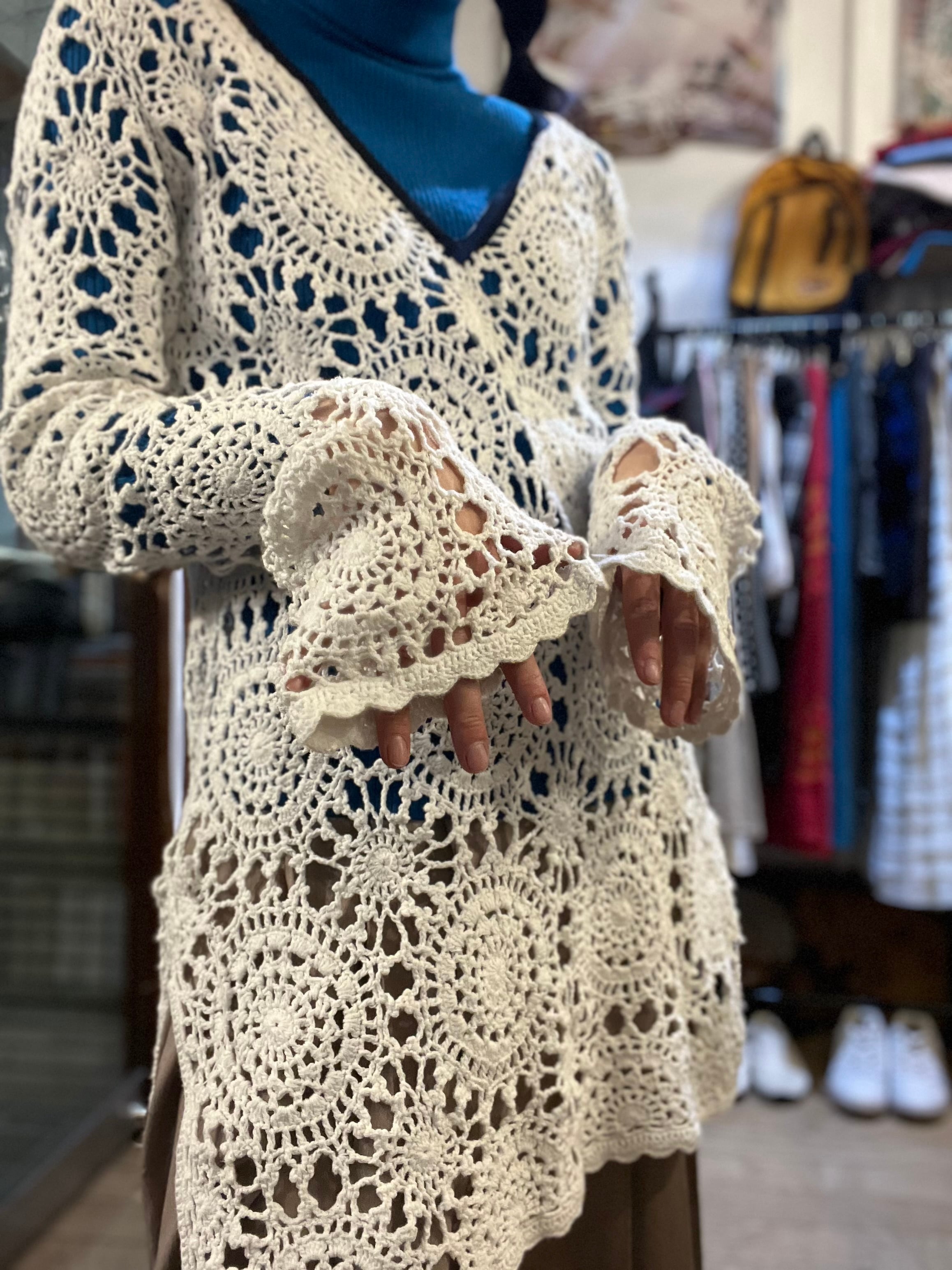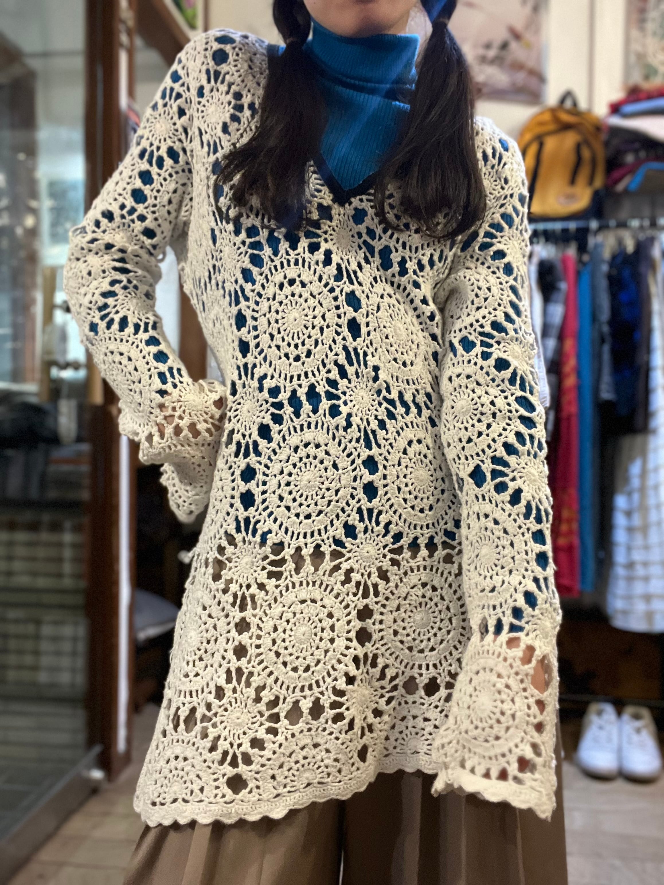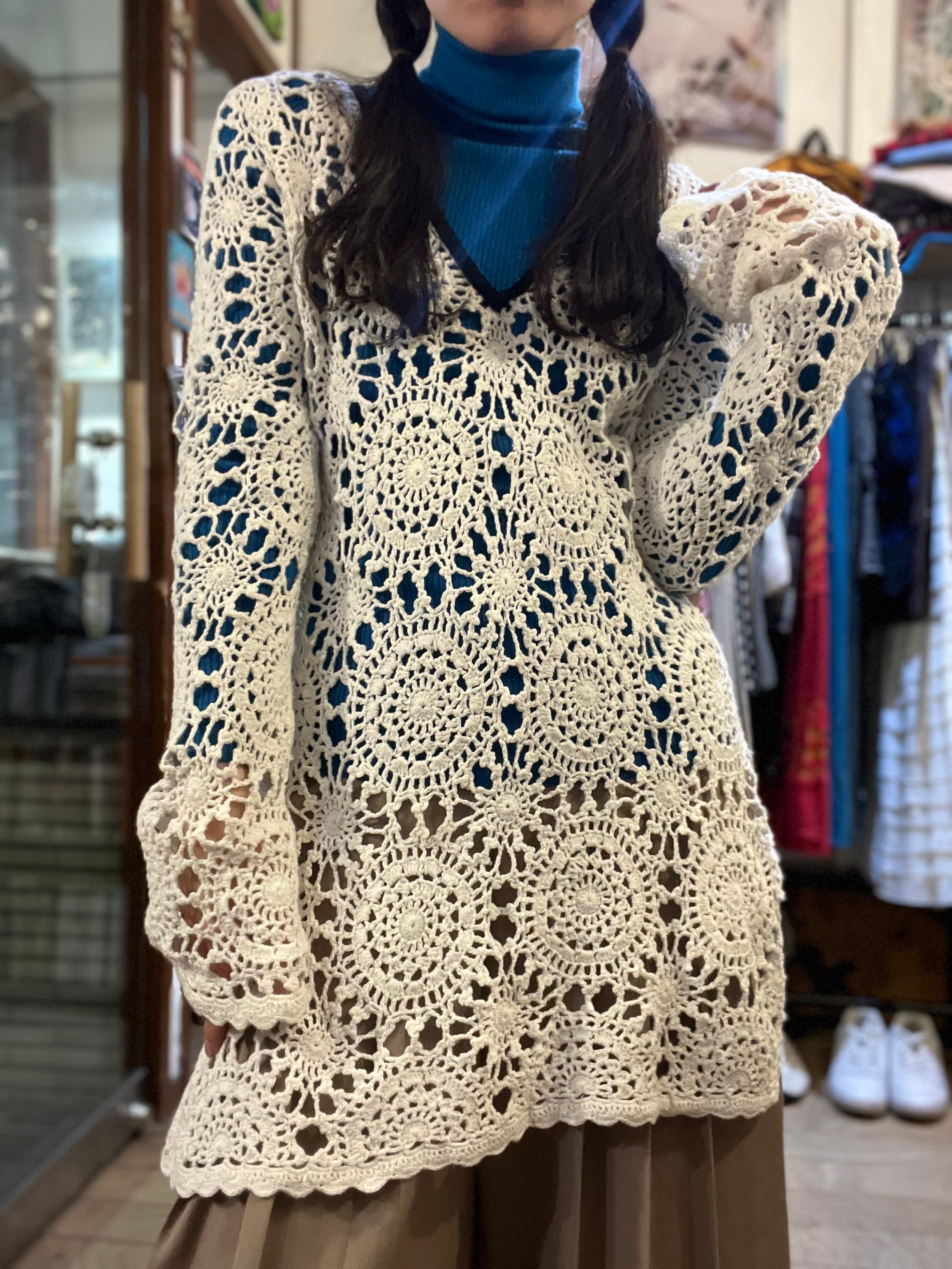 視覚情報を美しく分断する、圧倒的な密度を誇るレースワンピース。