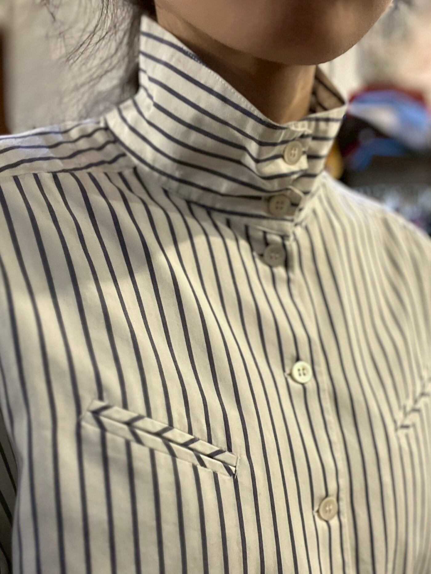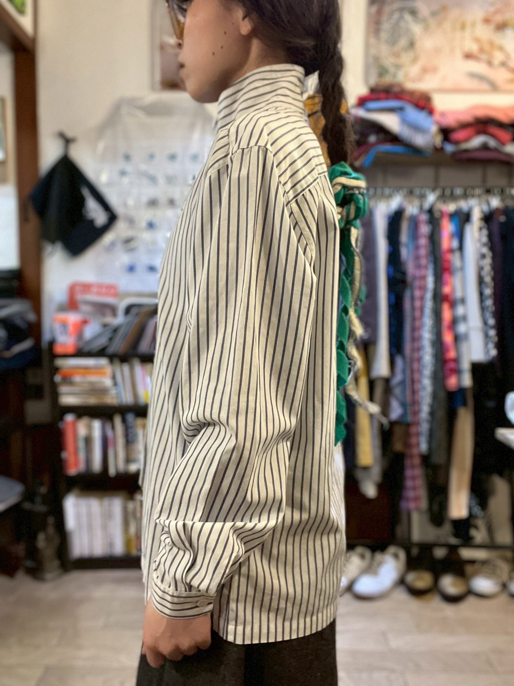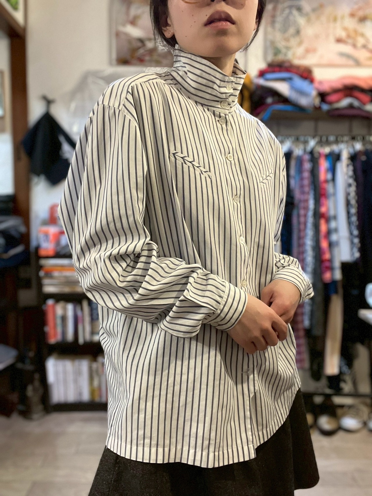 "2way" High Neck Design Striped Shirt