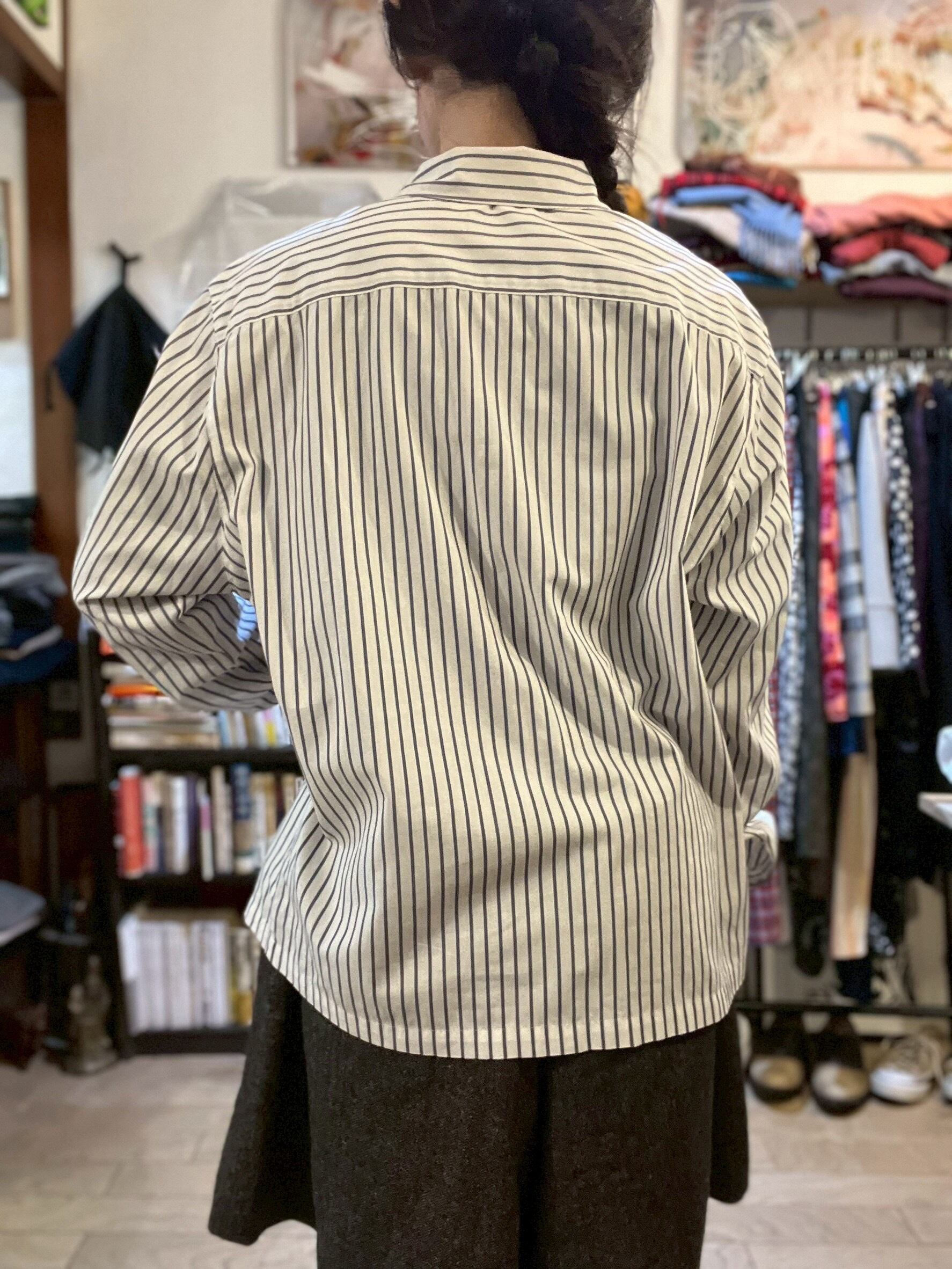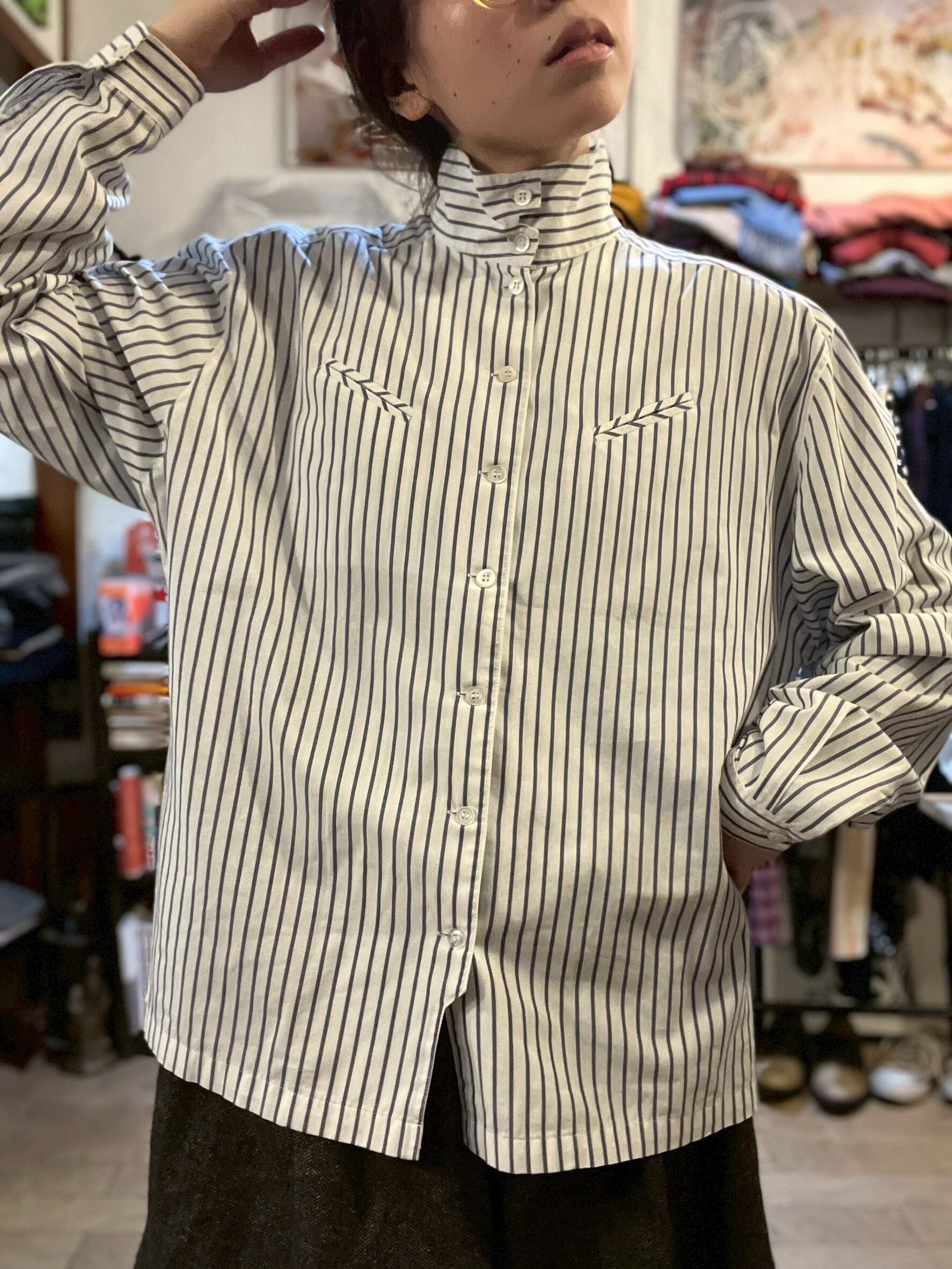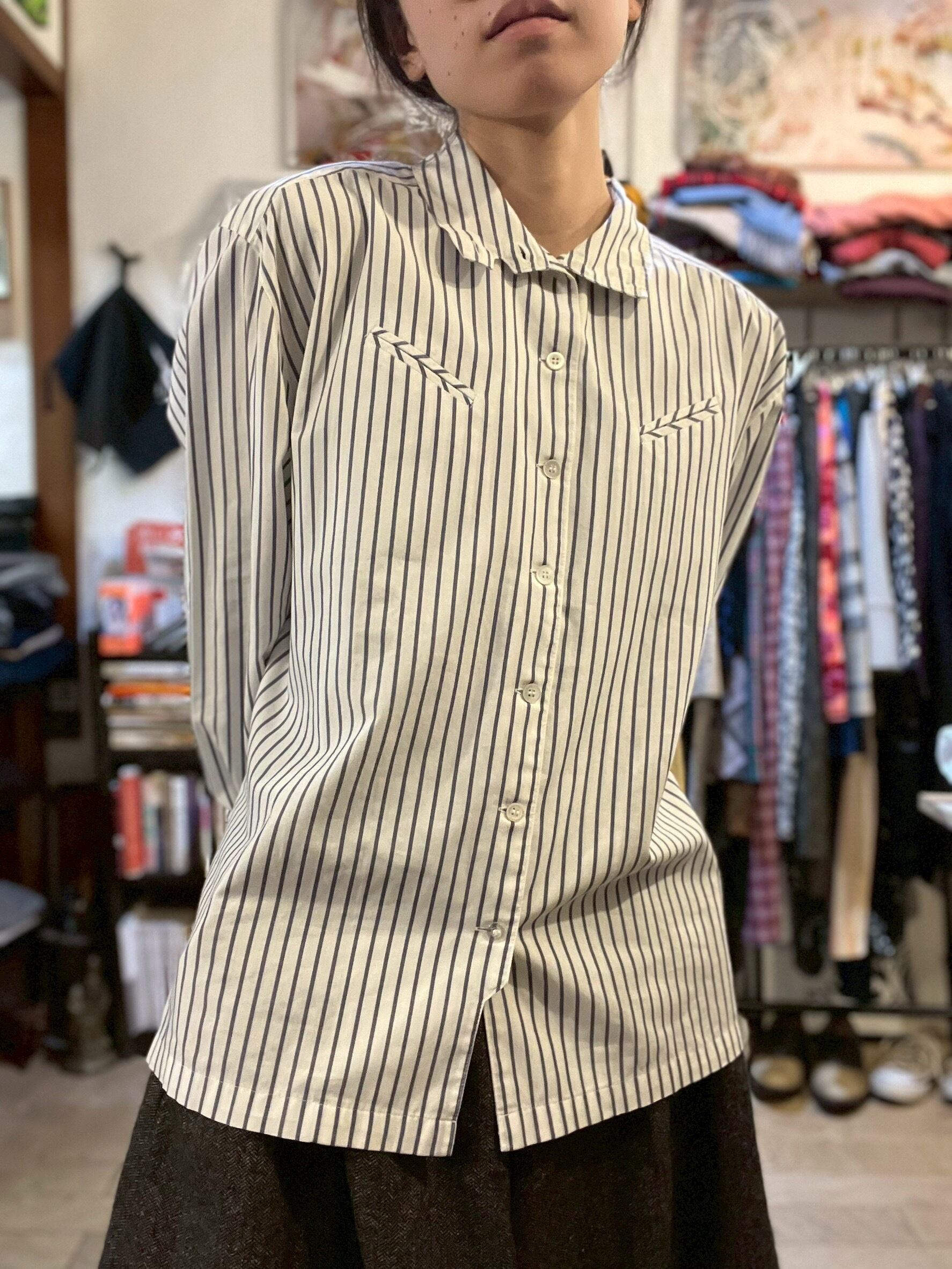 "2way" High Neck Design Striped Shirt