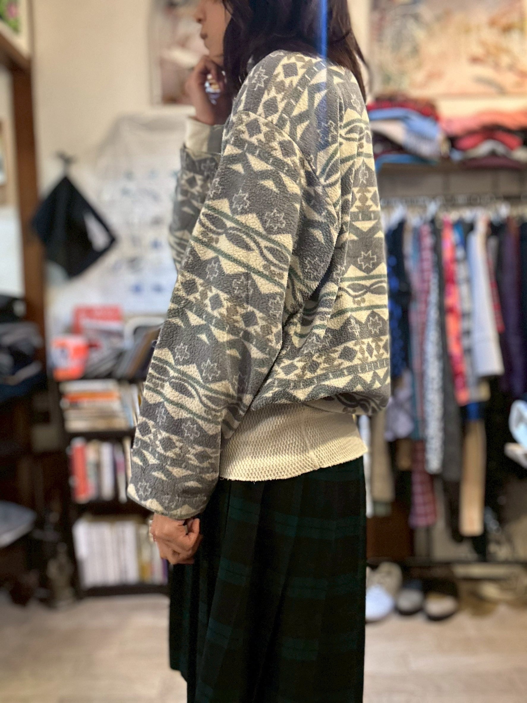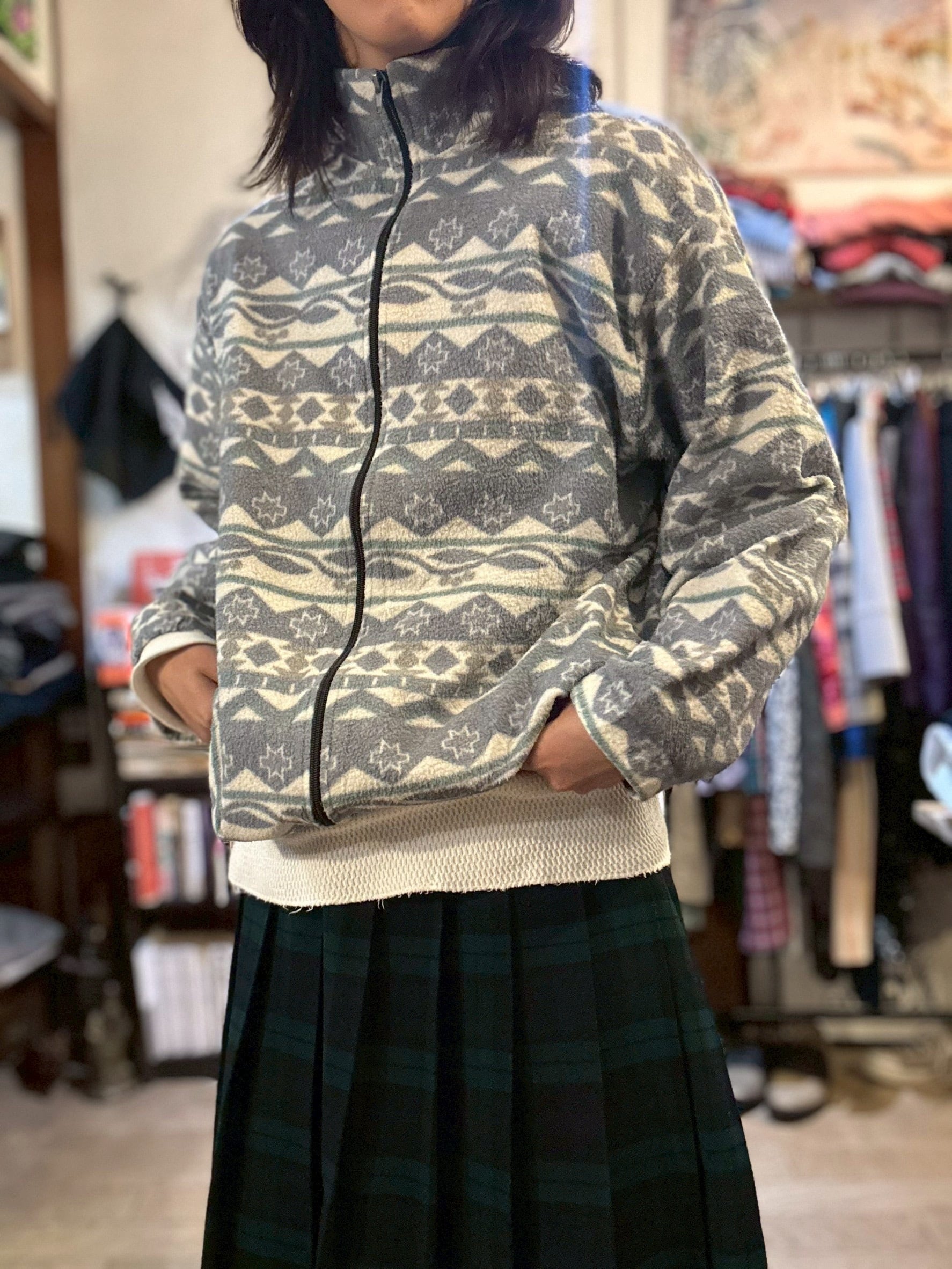 やさしい色合いのフリースジャケット。