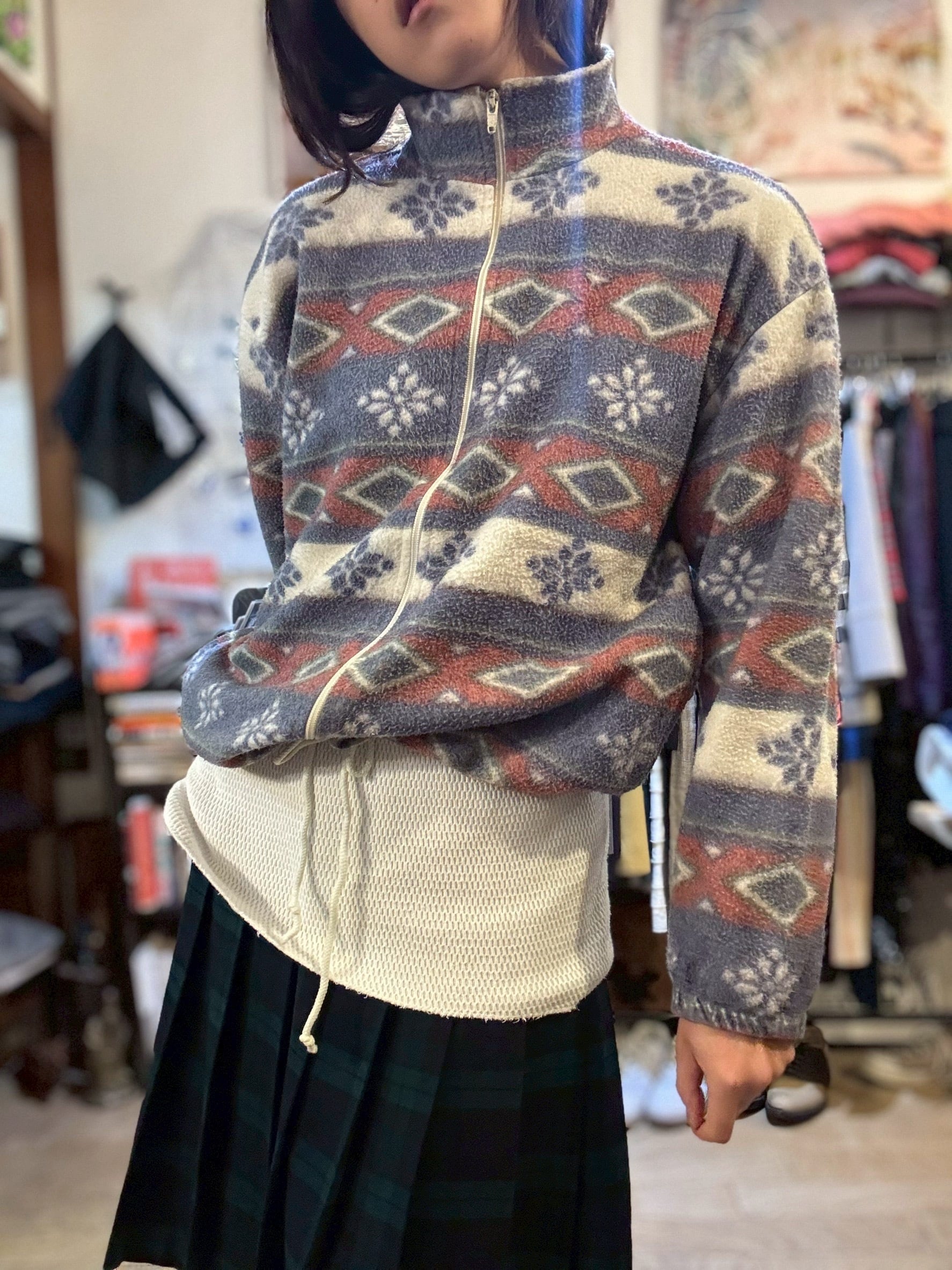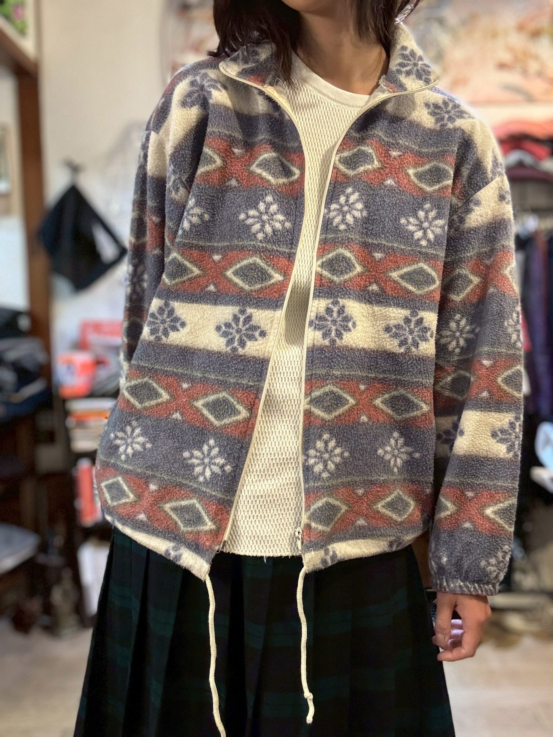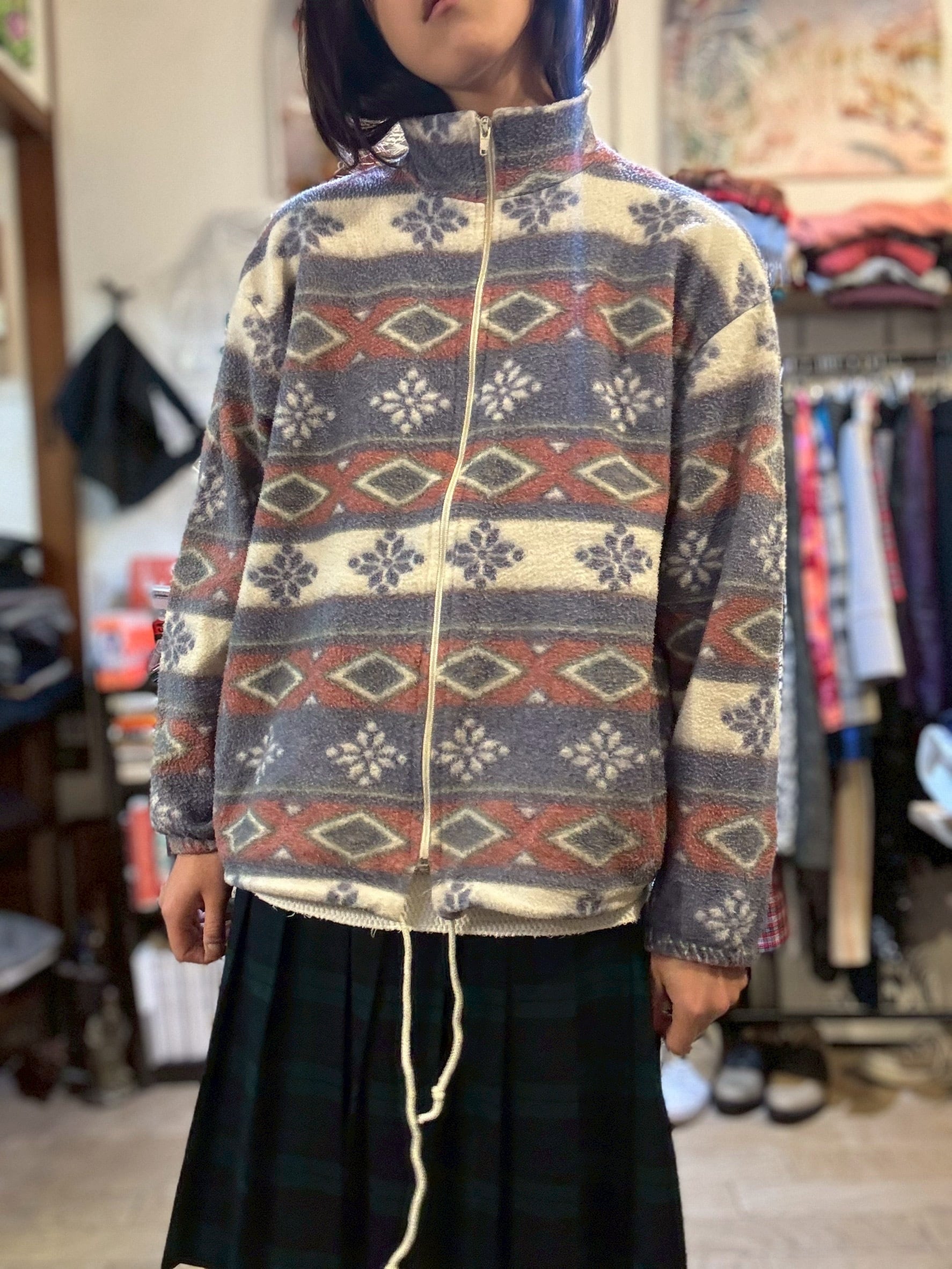ネイティブカラーの柄フリース。