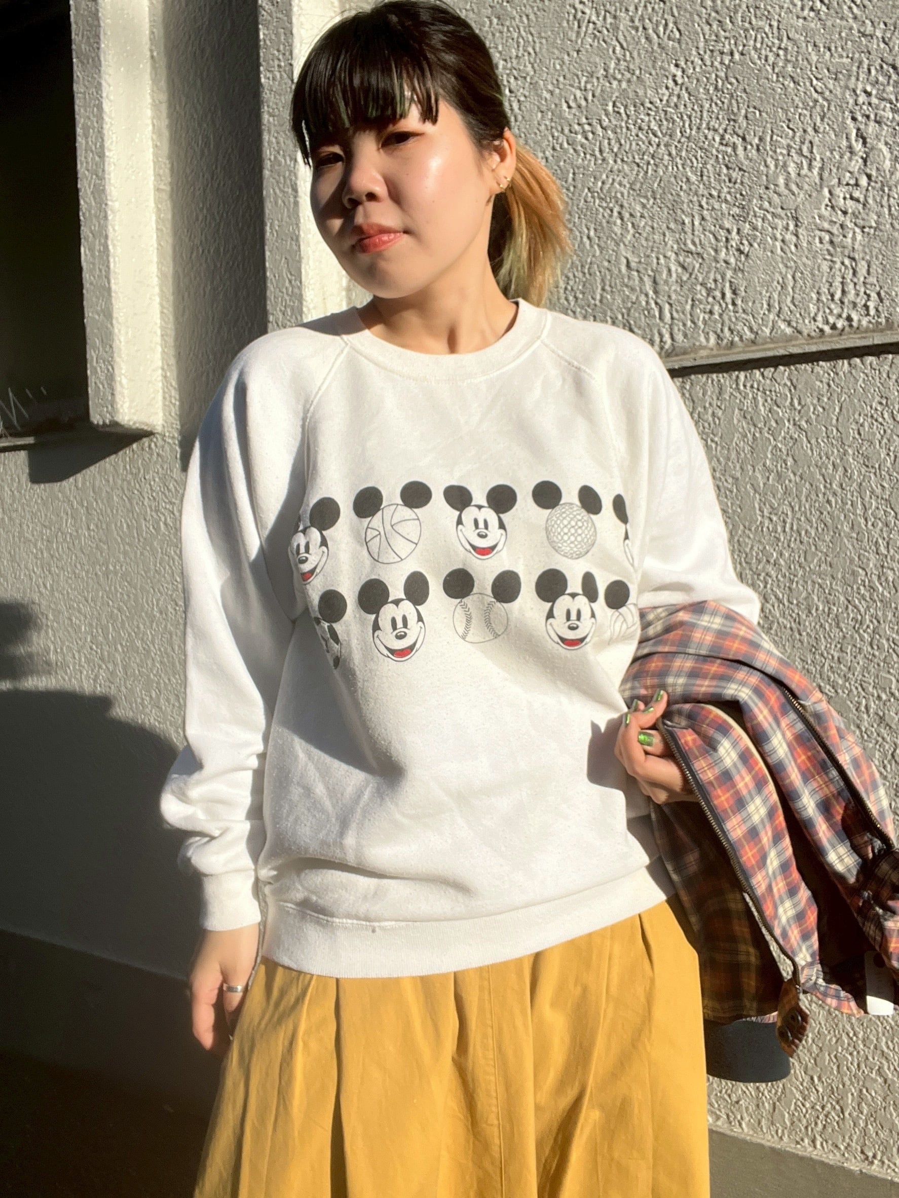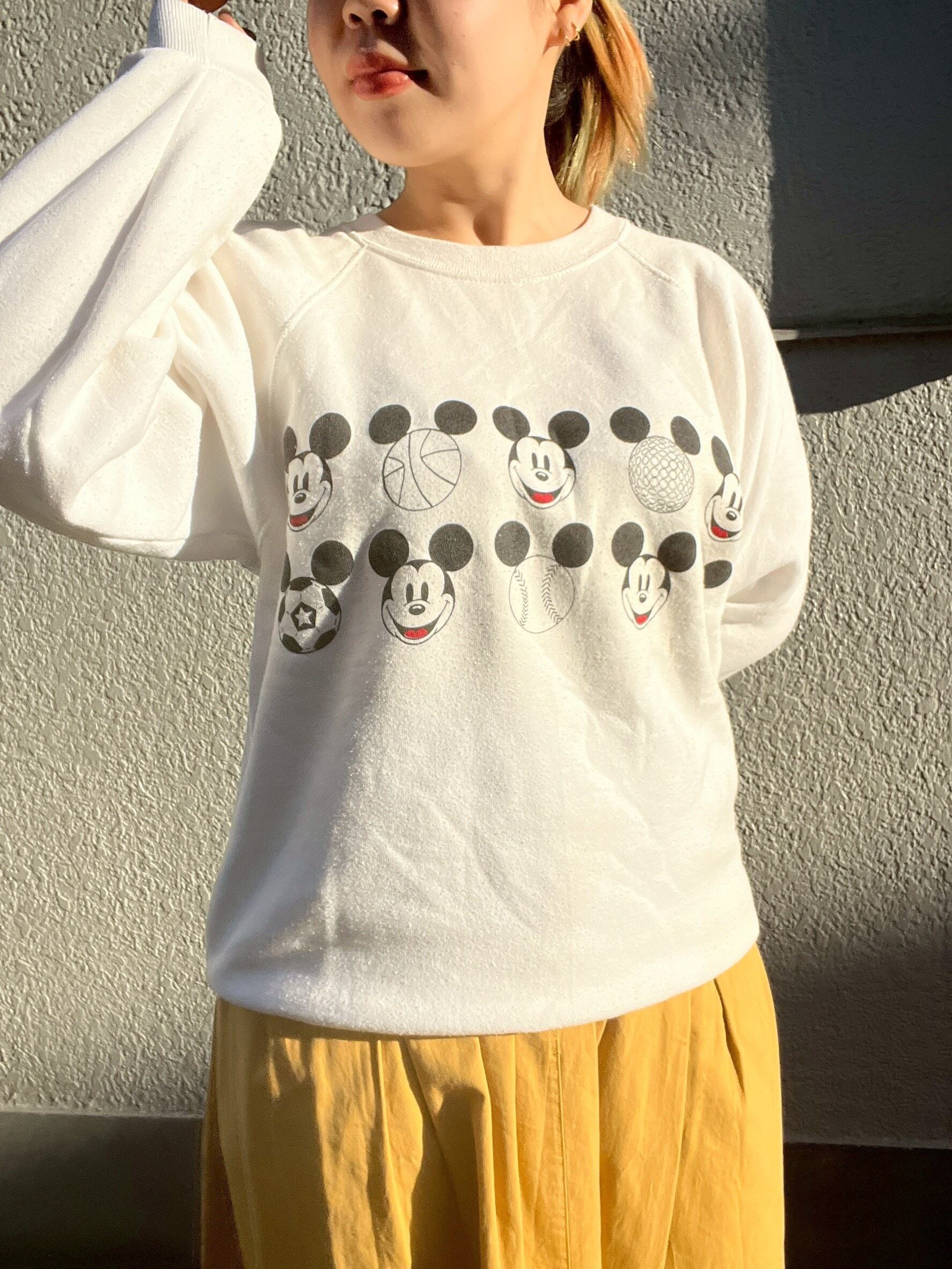 某夢の国のマスコットキャラクターの顔のシルエットを様々なスポーツボールに落とし込んだデザインスウェット。