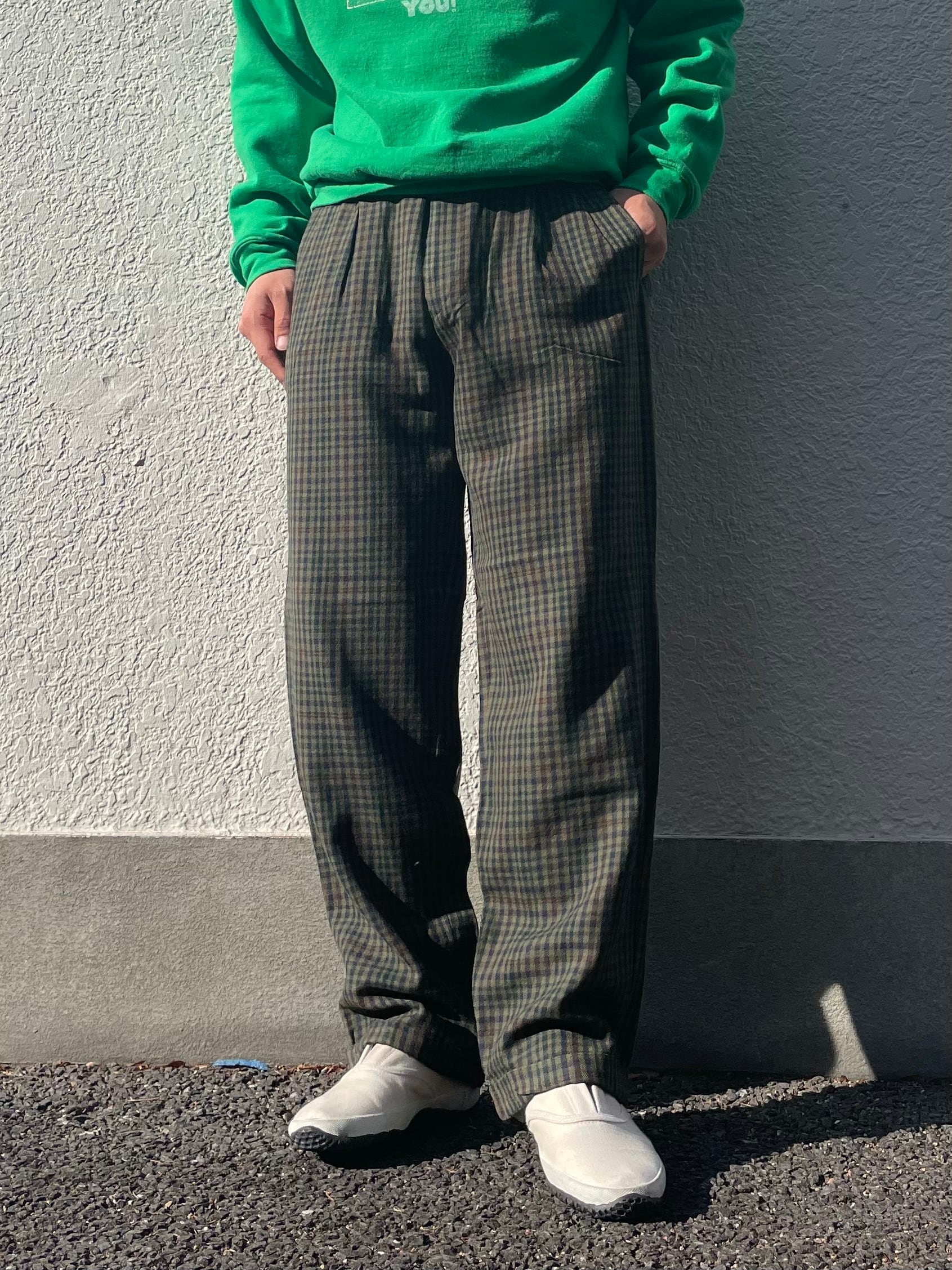 ユーロスラックス特有の、質実剛健さと優雅さが同居する独特の造形。腰回りから裾に向かって淀みなく流れ落ちる太めなシルエットです。