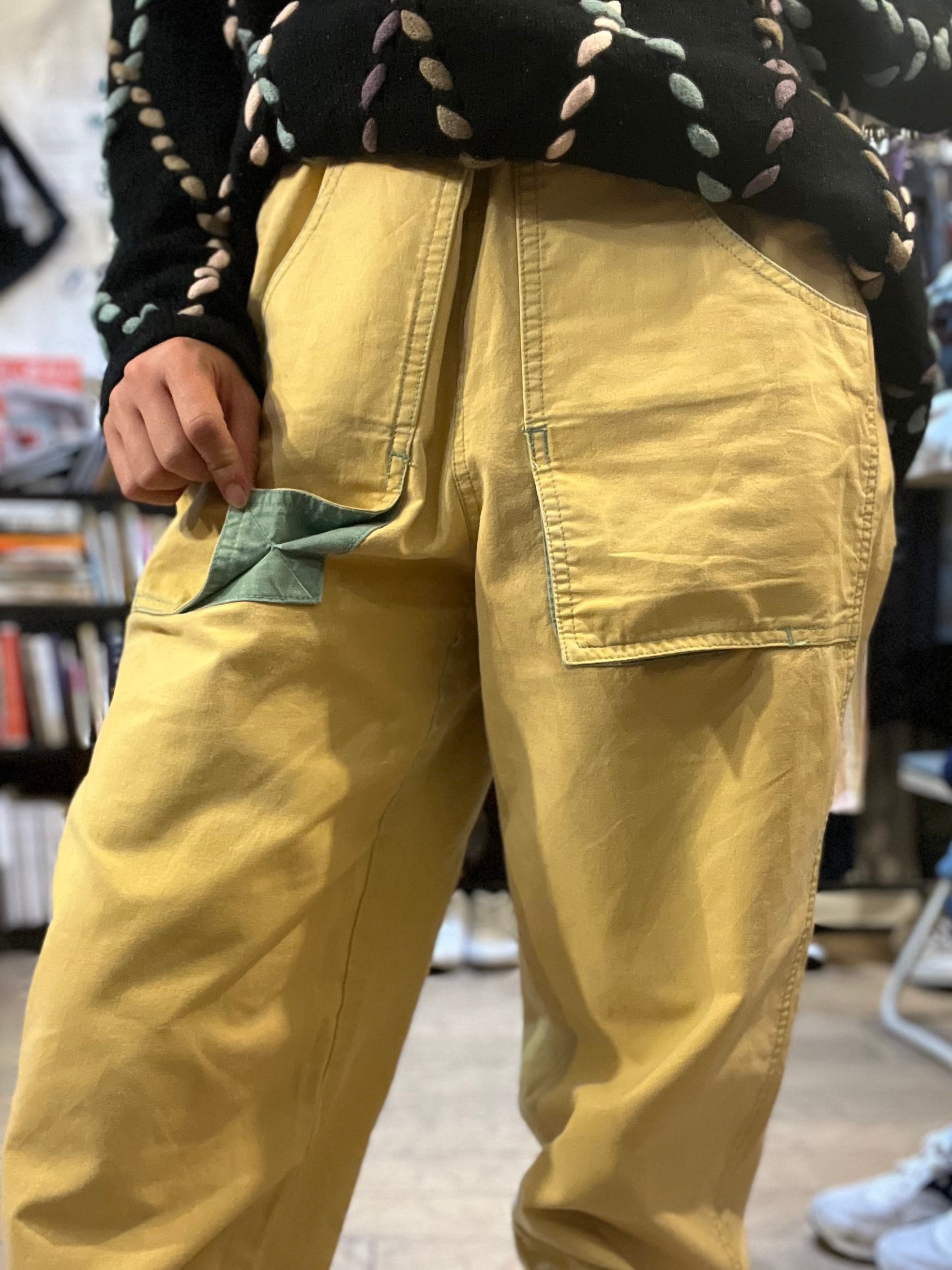 これを単なる「機能的なパンツ」として履きこなすのか。それとも、「黄色いノイズ」として身に纏うのか。理屈を介さず、この色彩の重圧をダイレクトに受け取ってください。