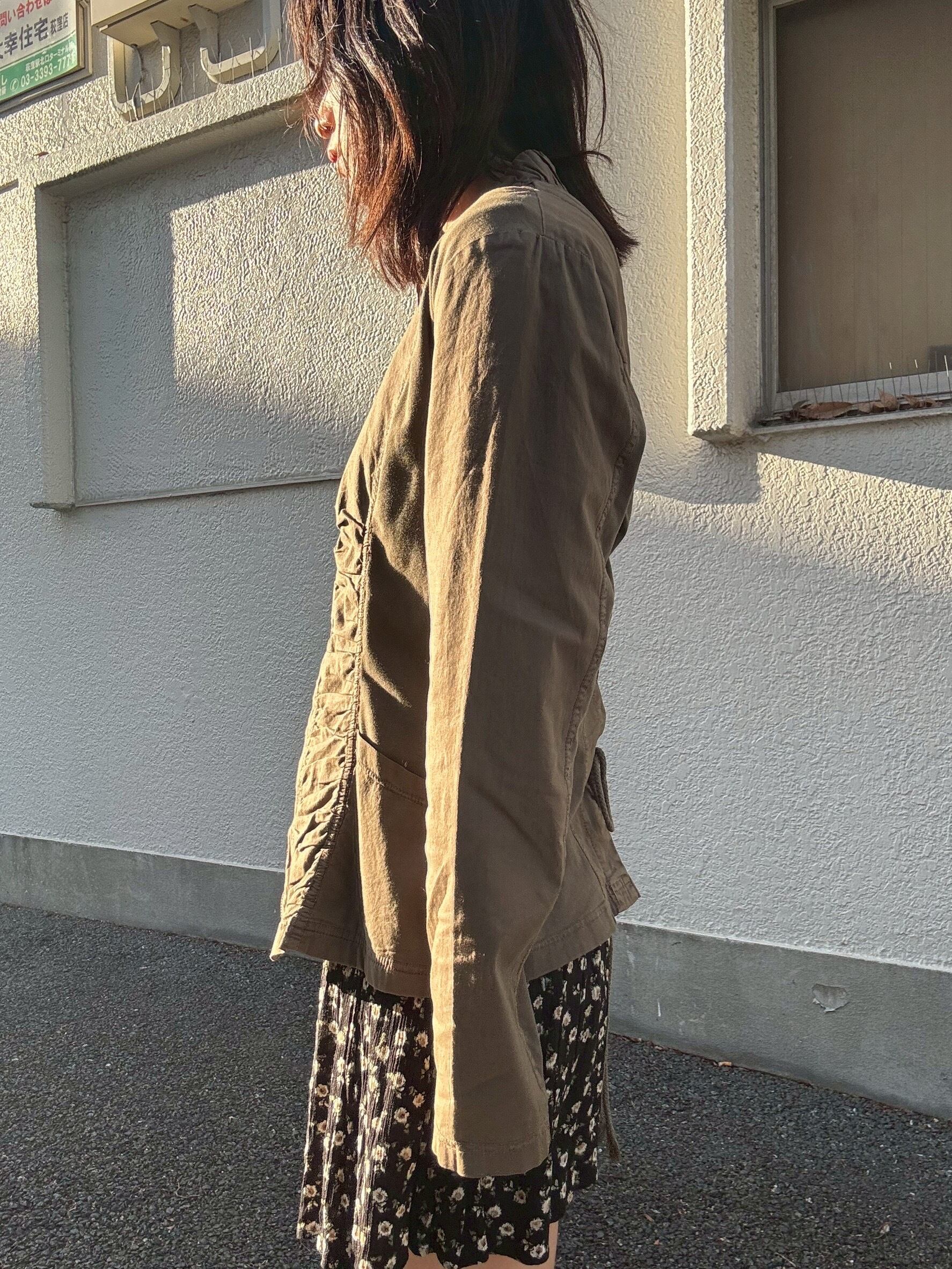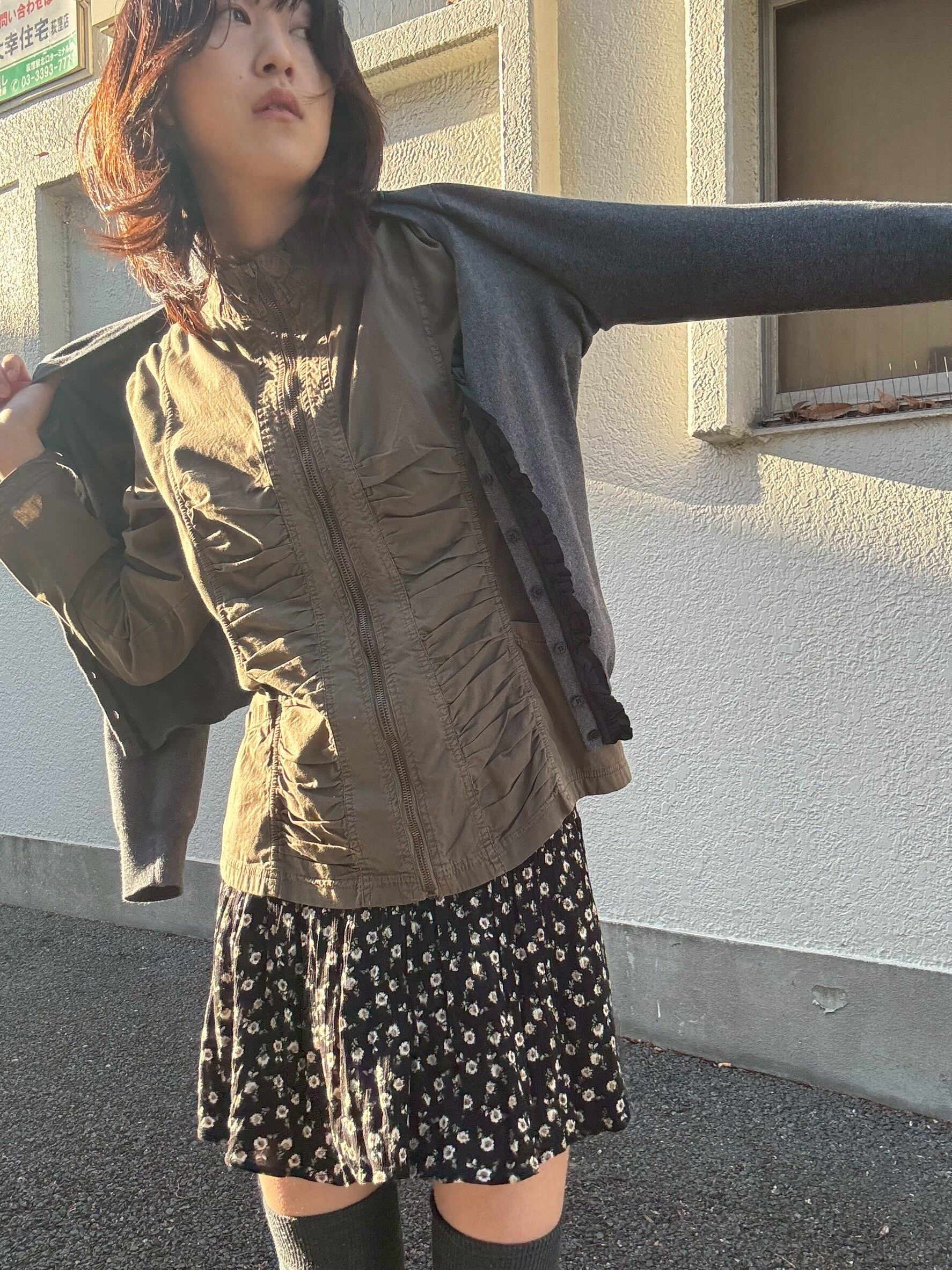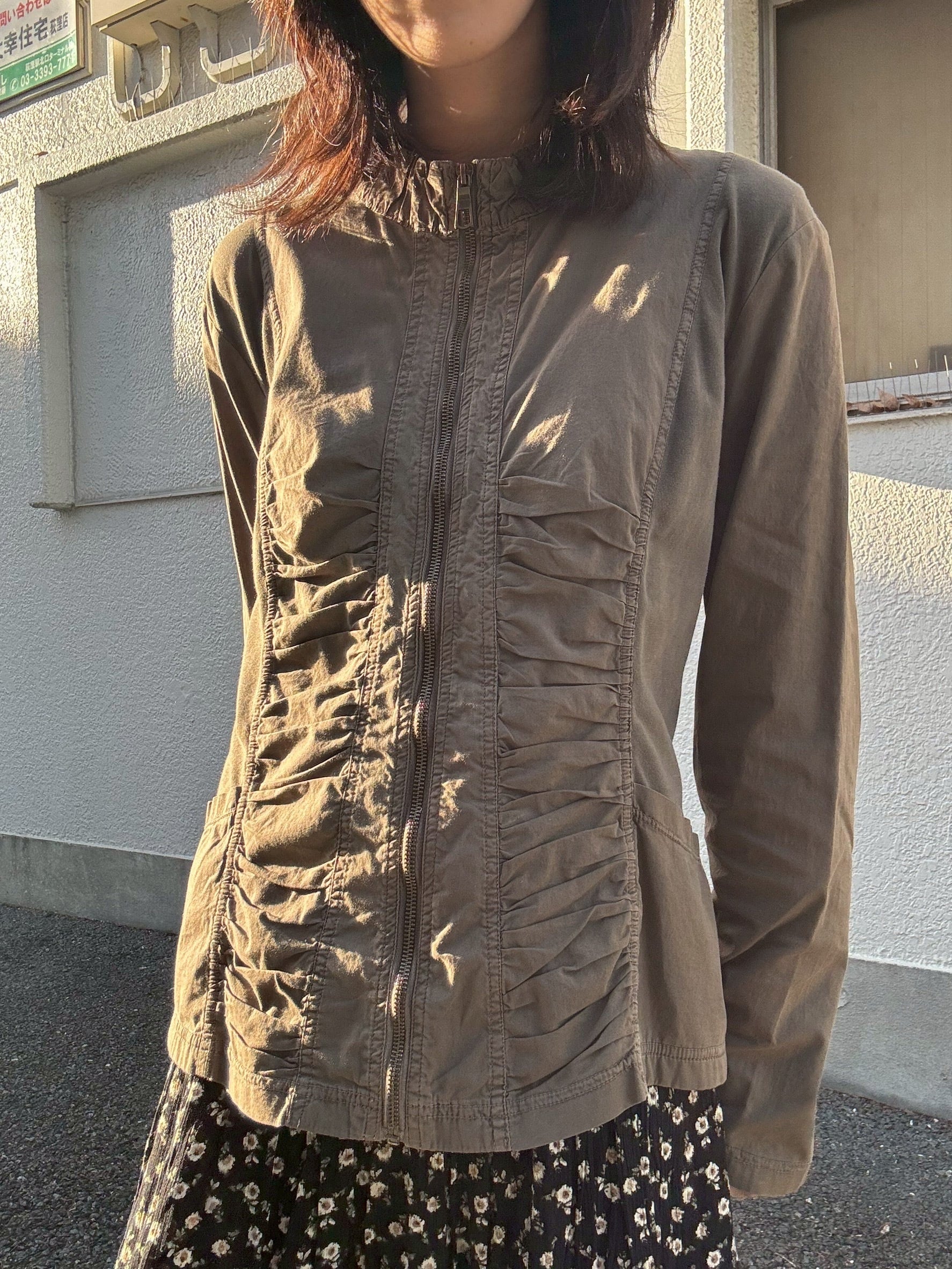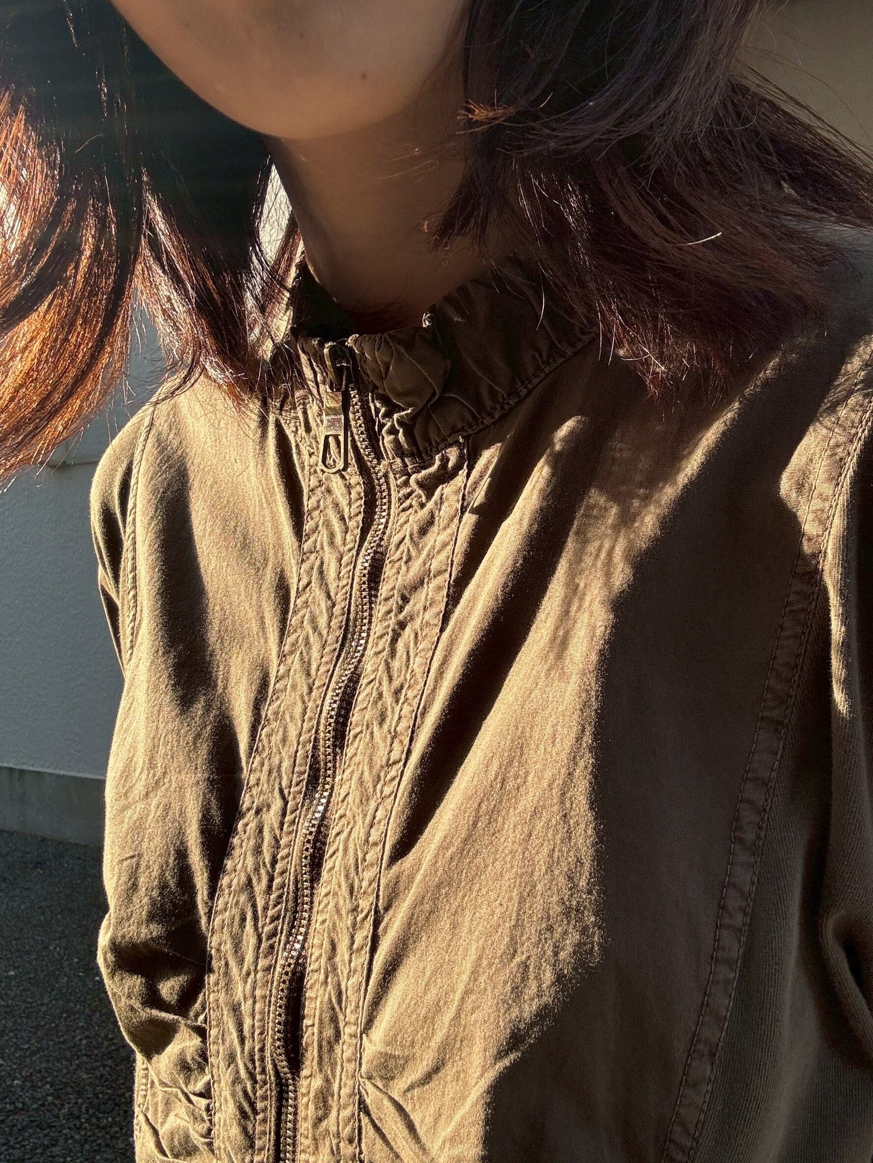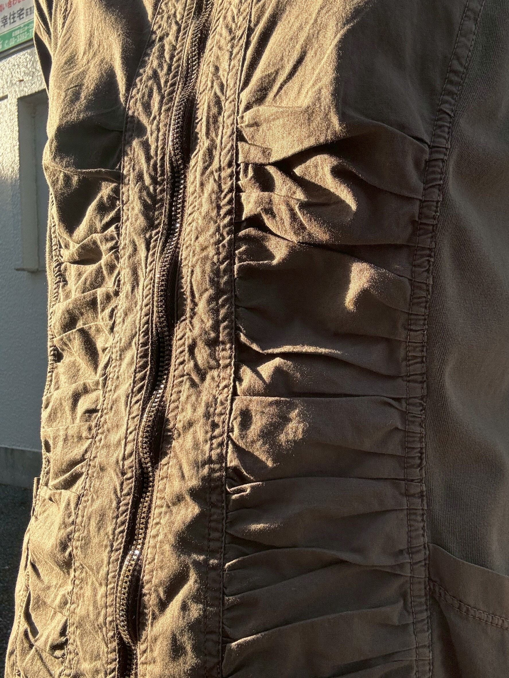ジップに沿って執拗に刻まれたシャーリングが目を惹くコットンジャケット。