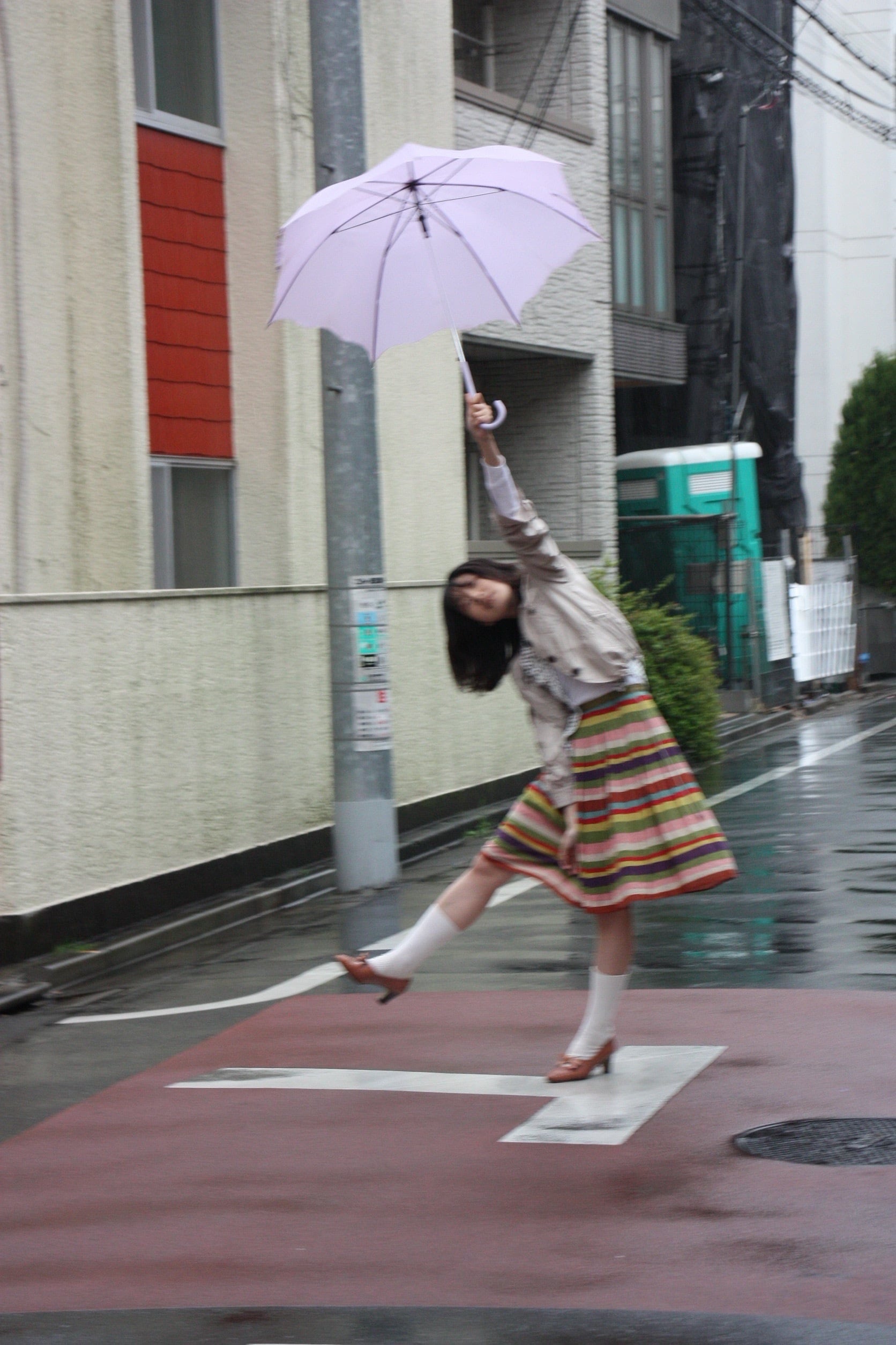 けれど、ひとたび歩き出せば、折り目の内側に隠された色が次々と顔を出す一着です。