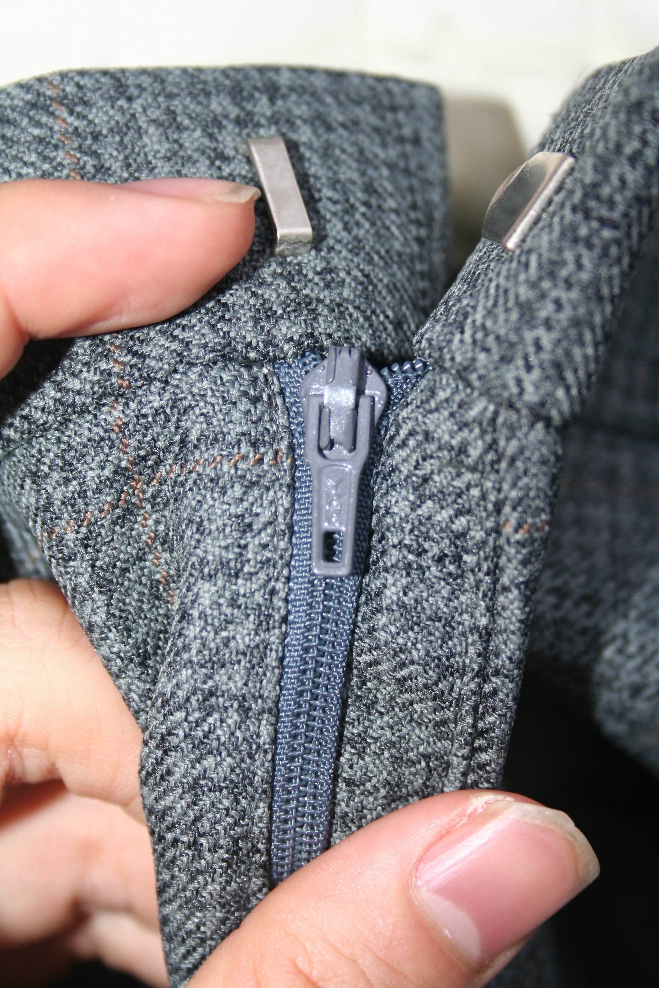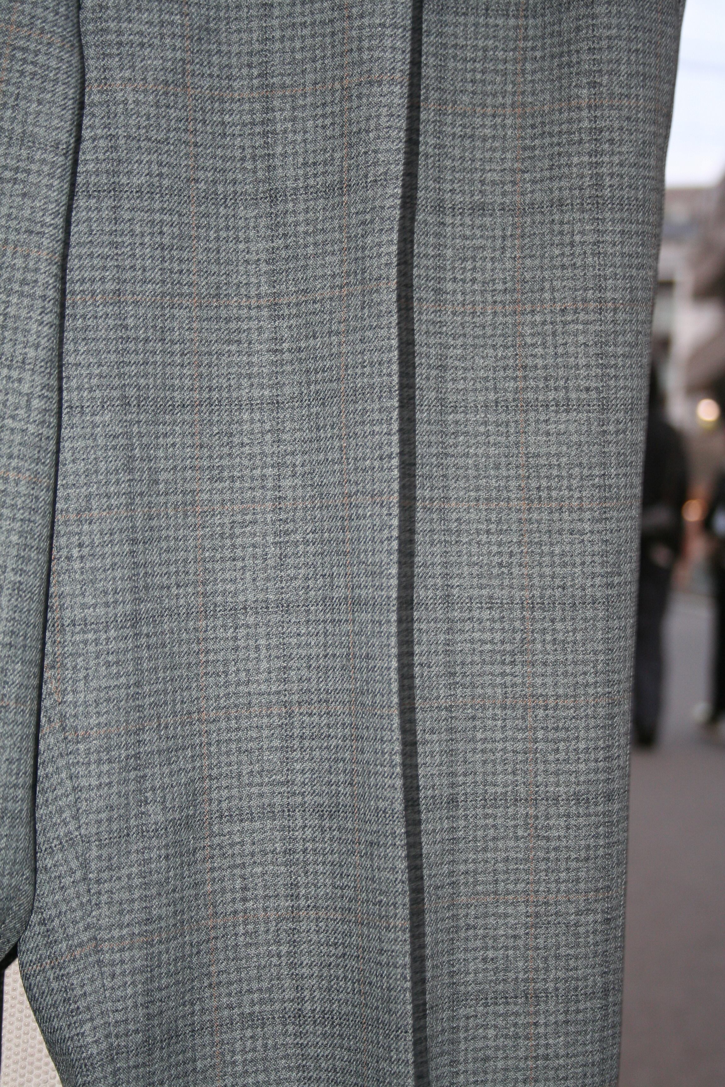 規則正しか並んだ綺麗なチェックパターンのスラックス。