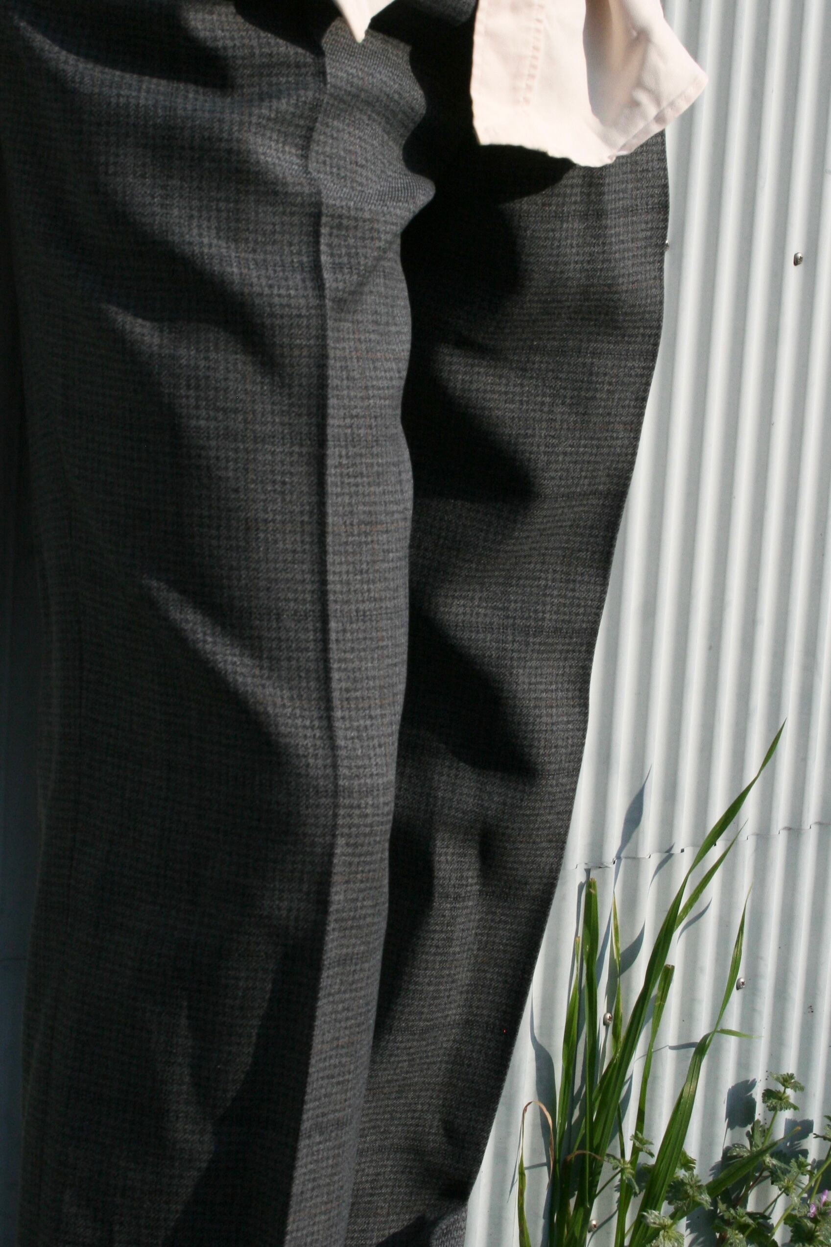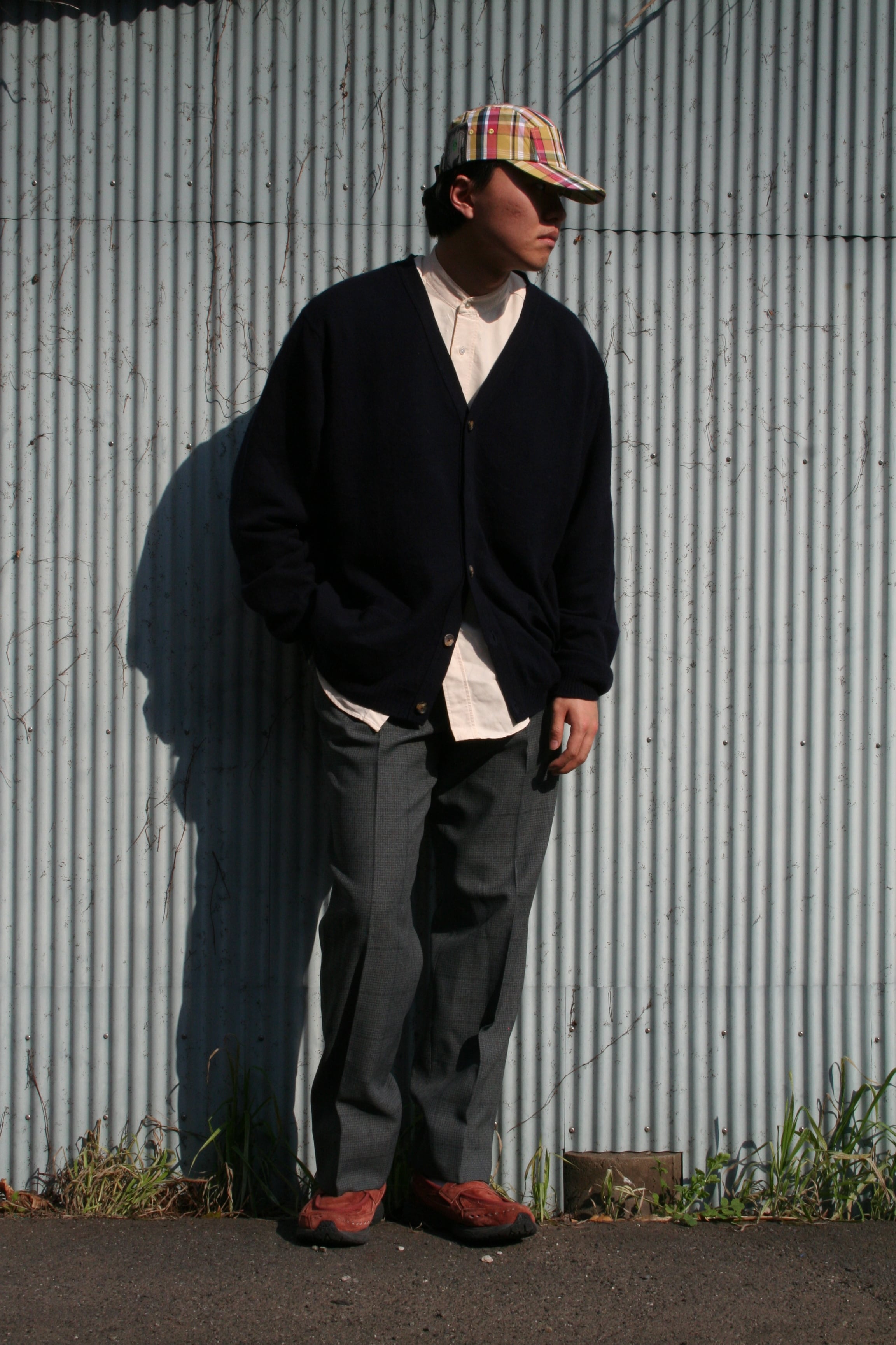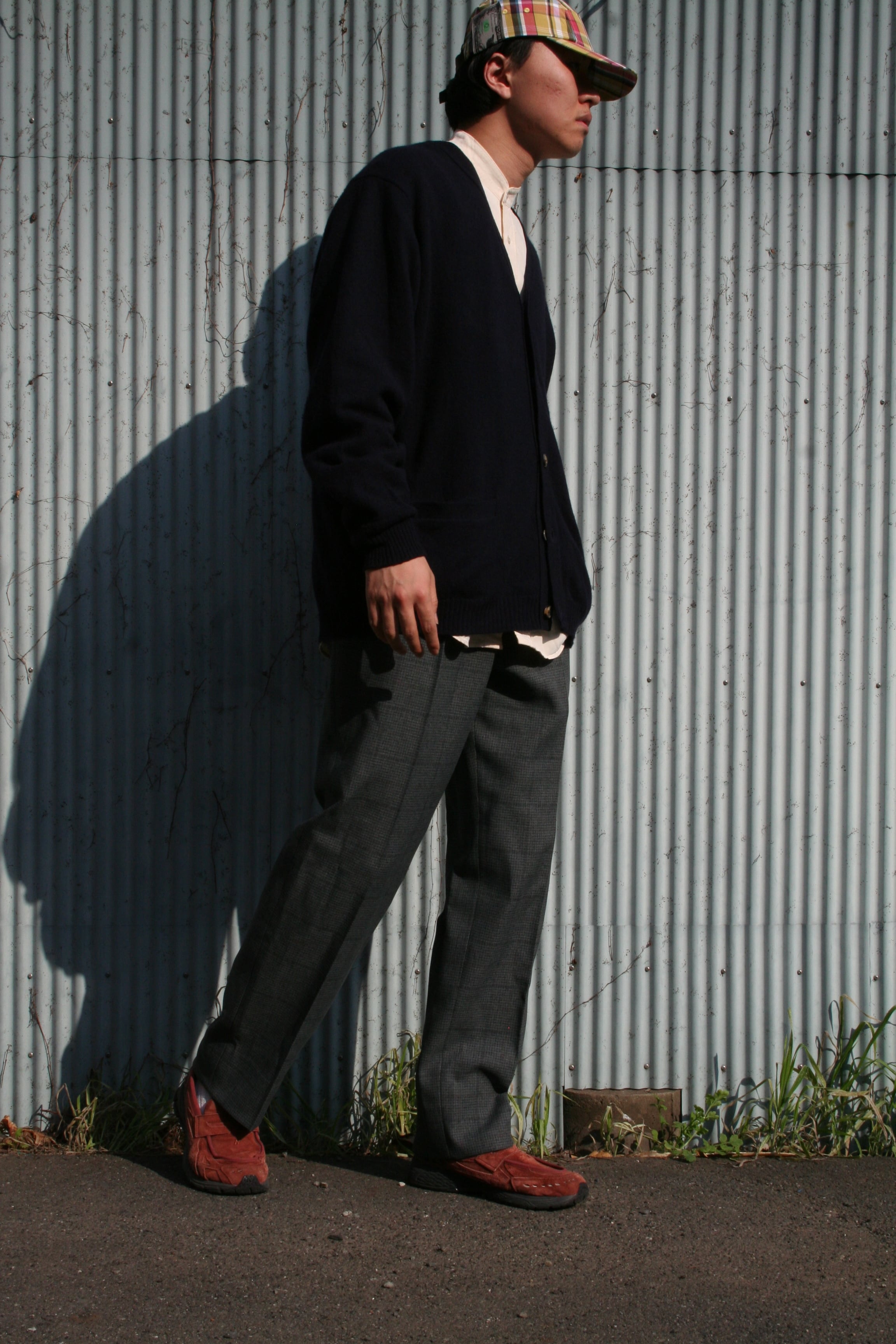 表記はないですが、恐らくウール混紡素材。この繊細なチェックパターンと、程よく使い込まれた生地の落ち感が、スラックスの堅苦しさを心地よい「抜け感」へと変えてくれます。