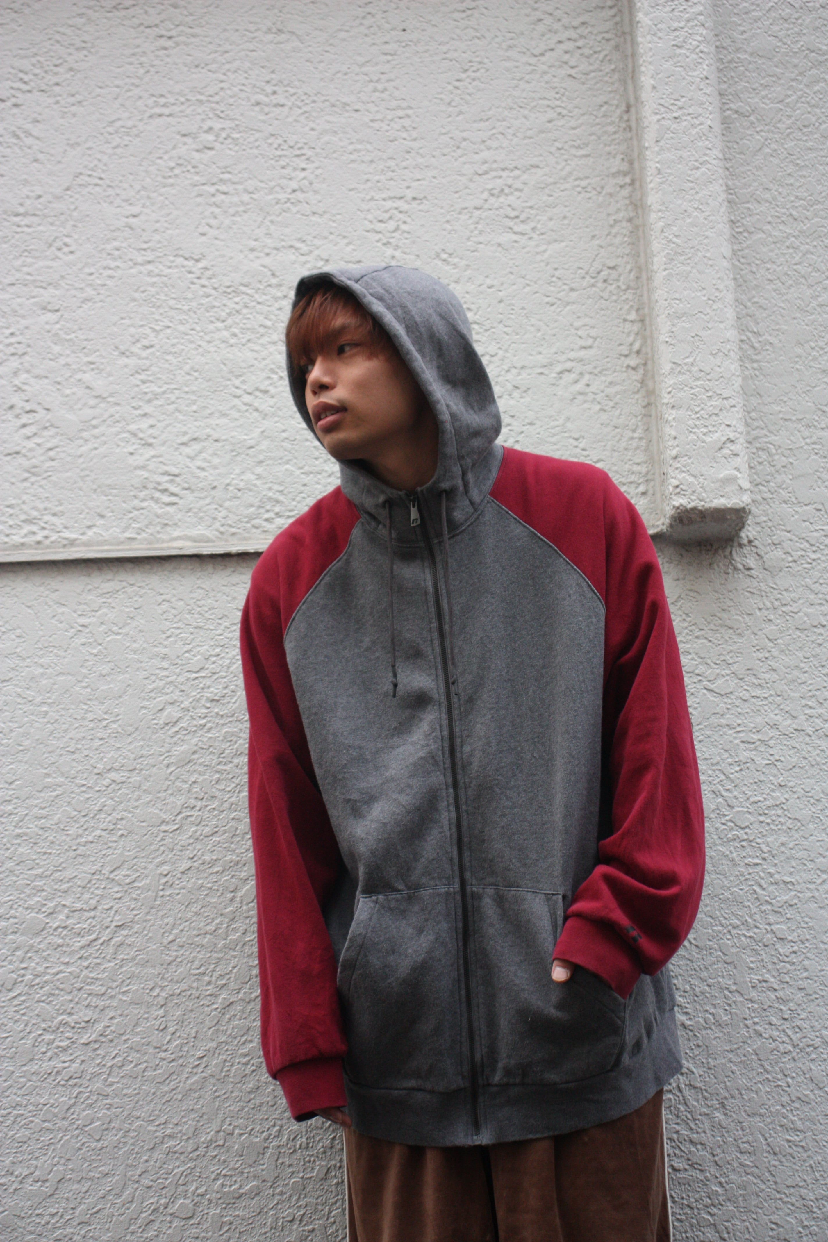"RUSSELL" 2tone Over Size Zip-up Hoodie