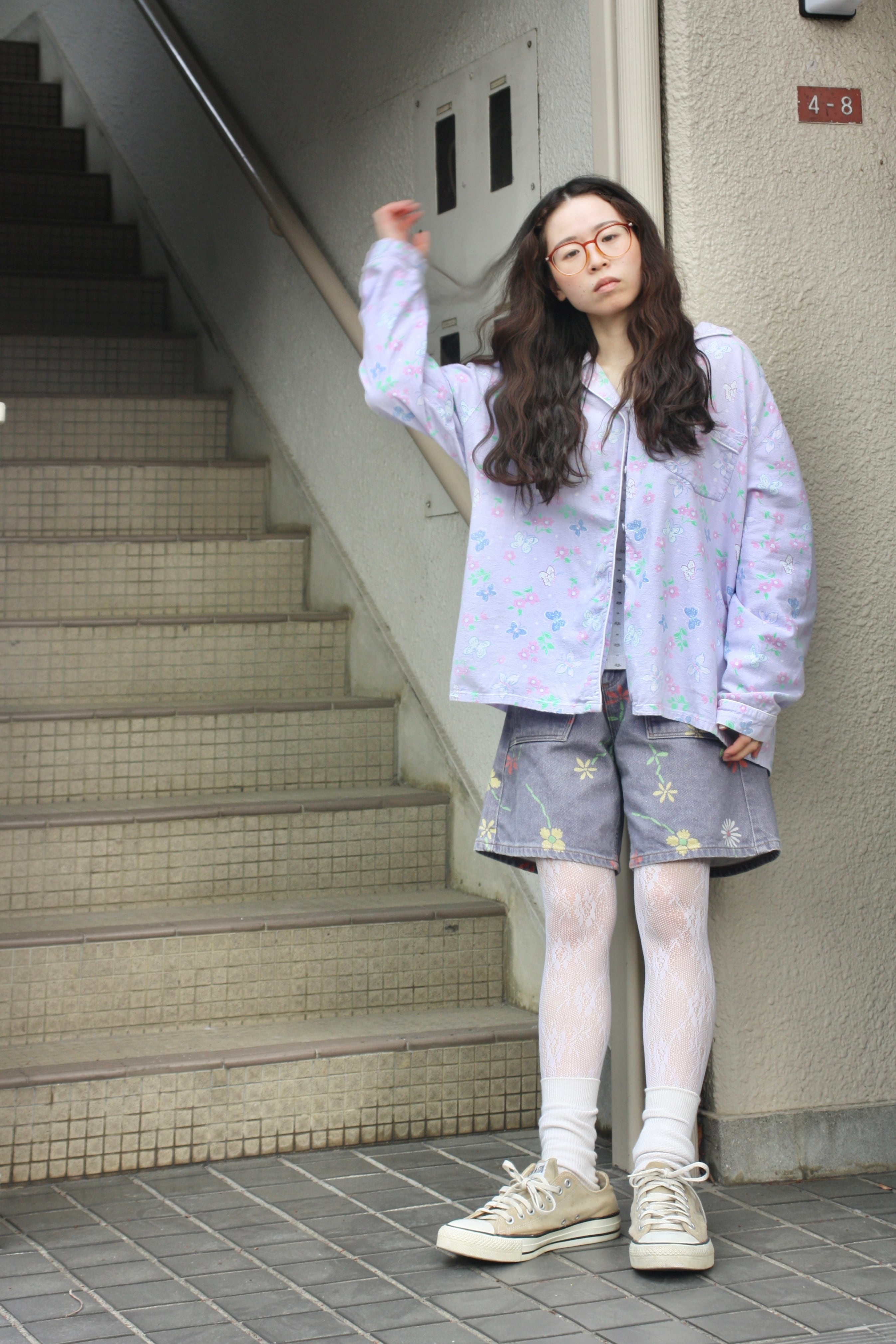 ノスタルジックな総柄とパジャマという緩い組み合わせ。何も考えずに羽織れば、みなさんの個性を引き立てるピースになります。