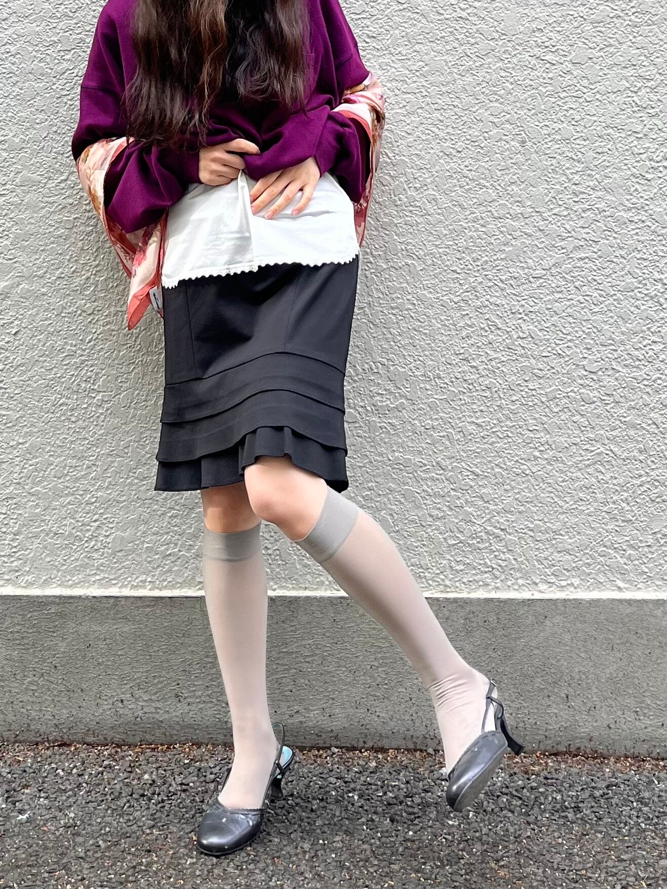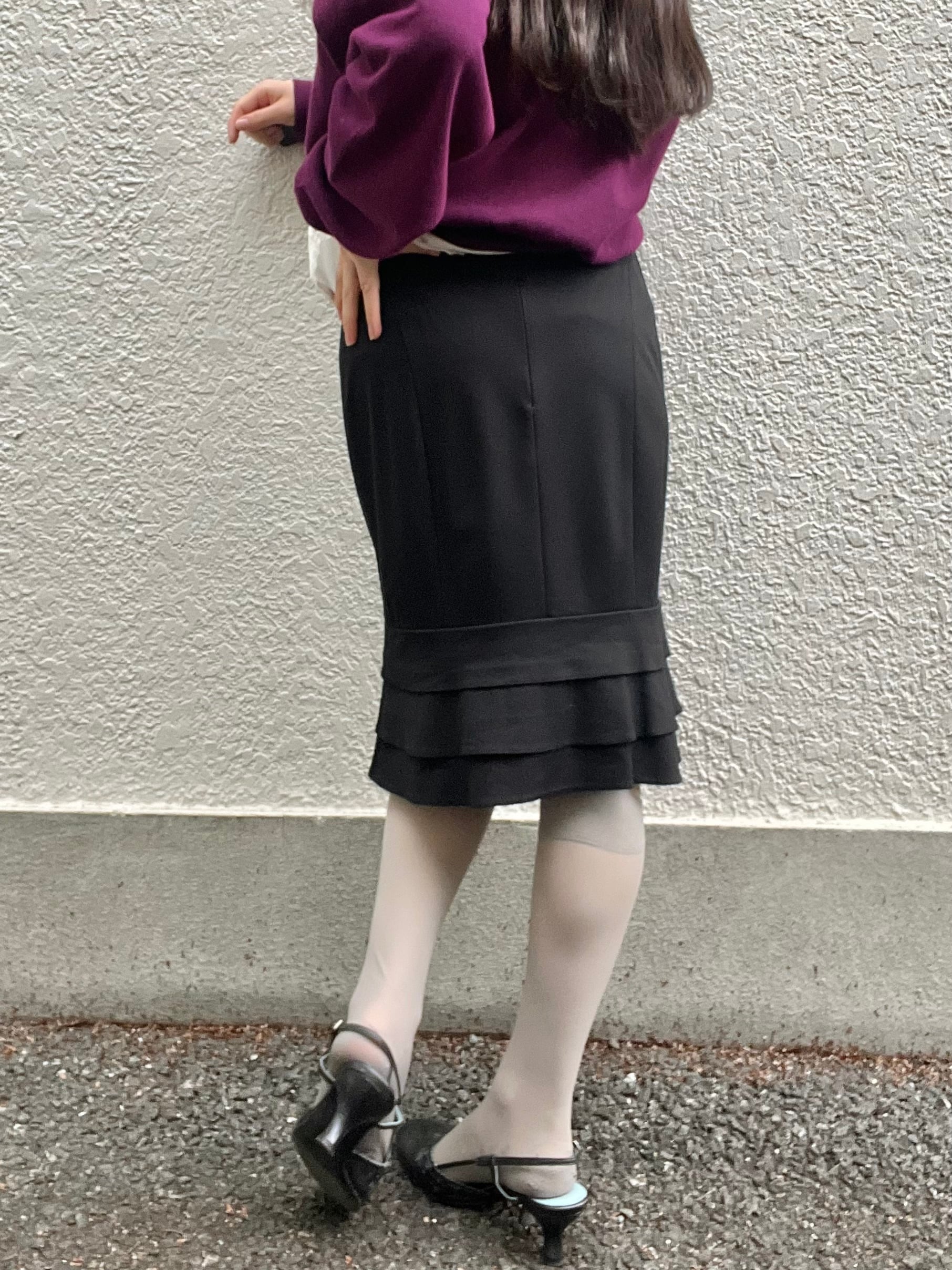 マットな質感の漆黒。ストイックなタイトスカート。