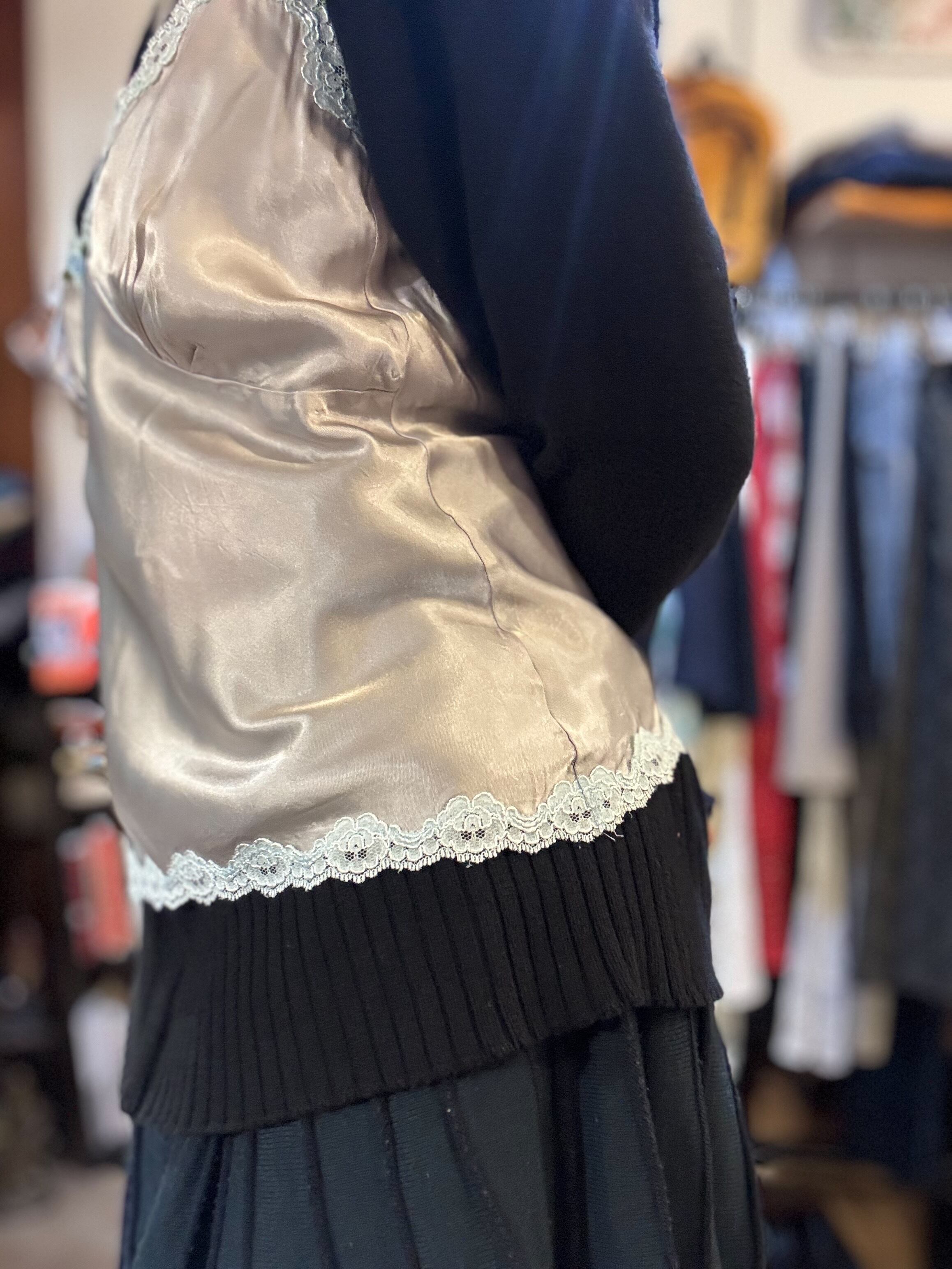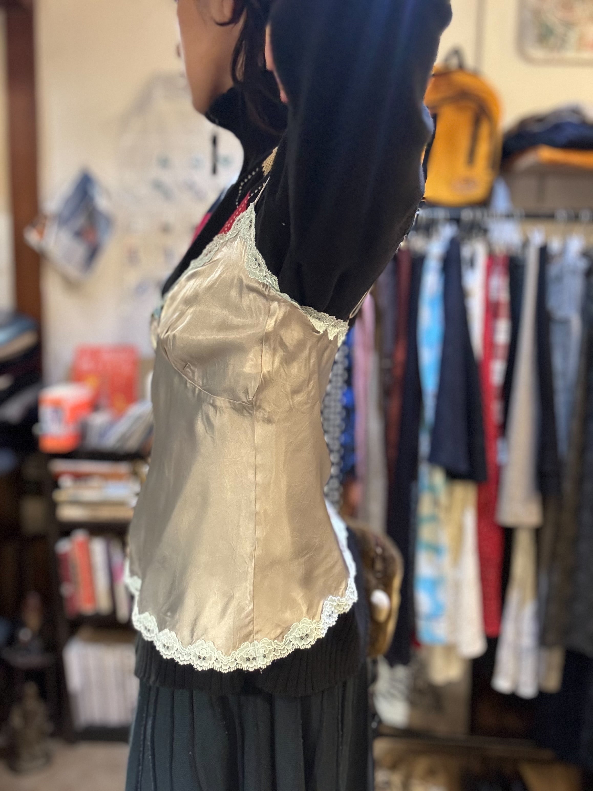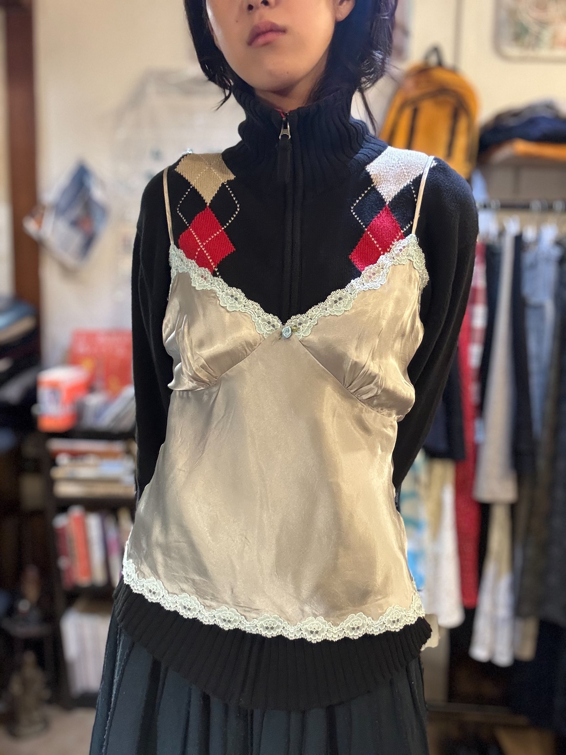 しなやかなサテンの光沢を縁取るキャミソール。