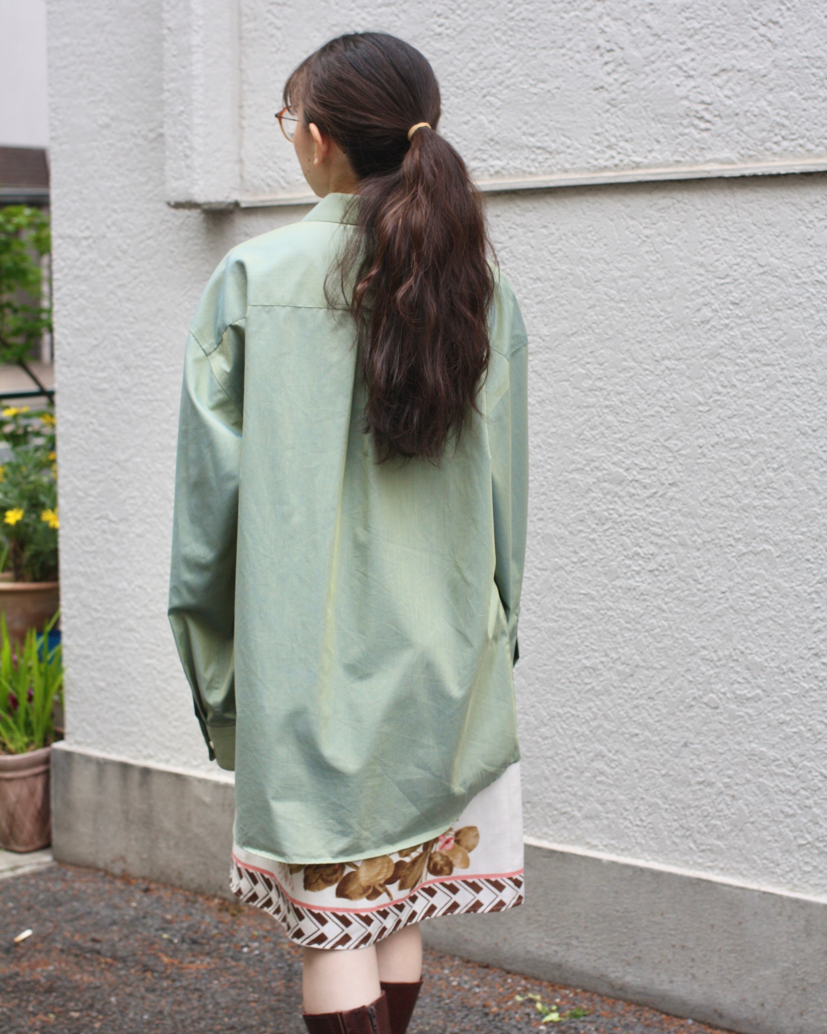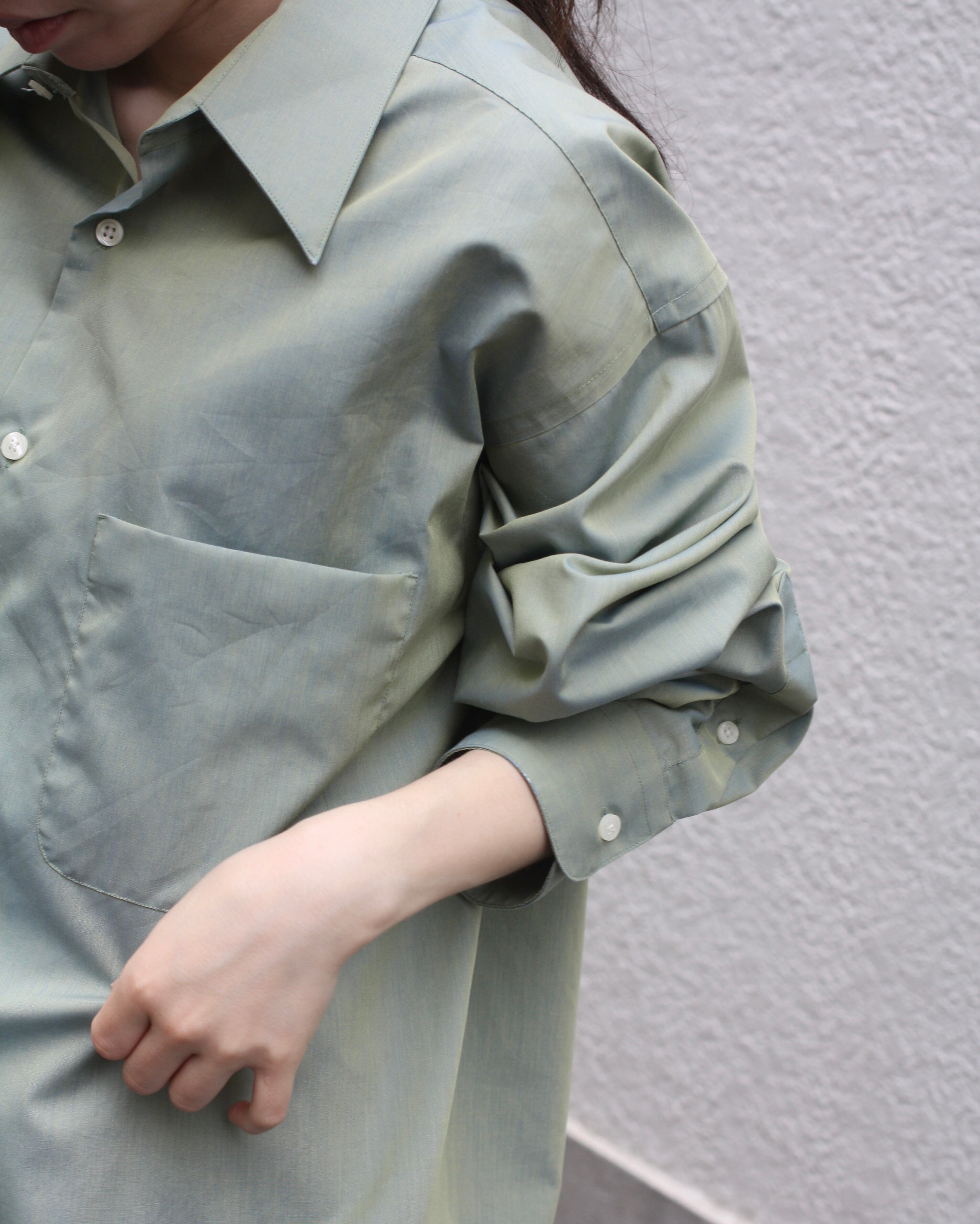 綺麗なセージグリーンが目を惹くコットンシャツ。