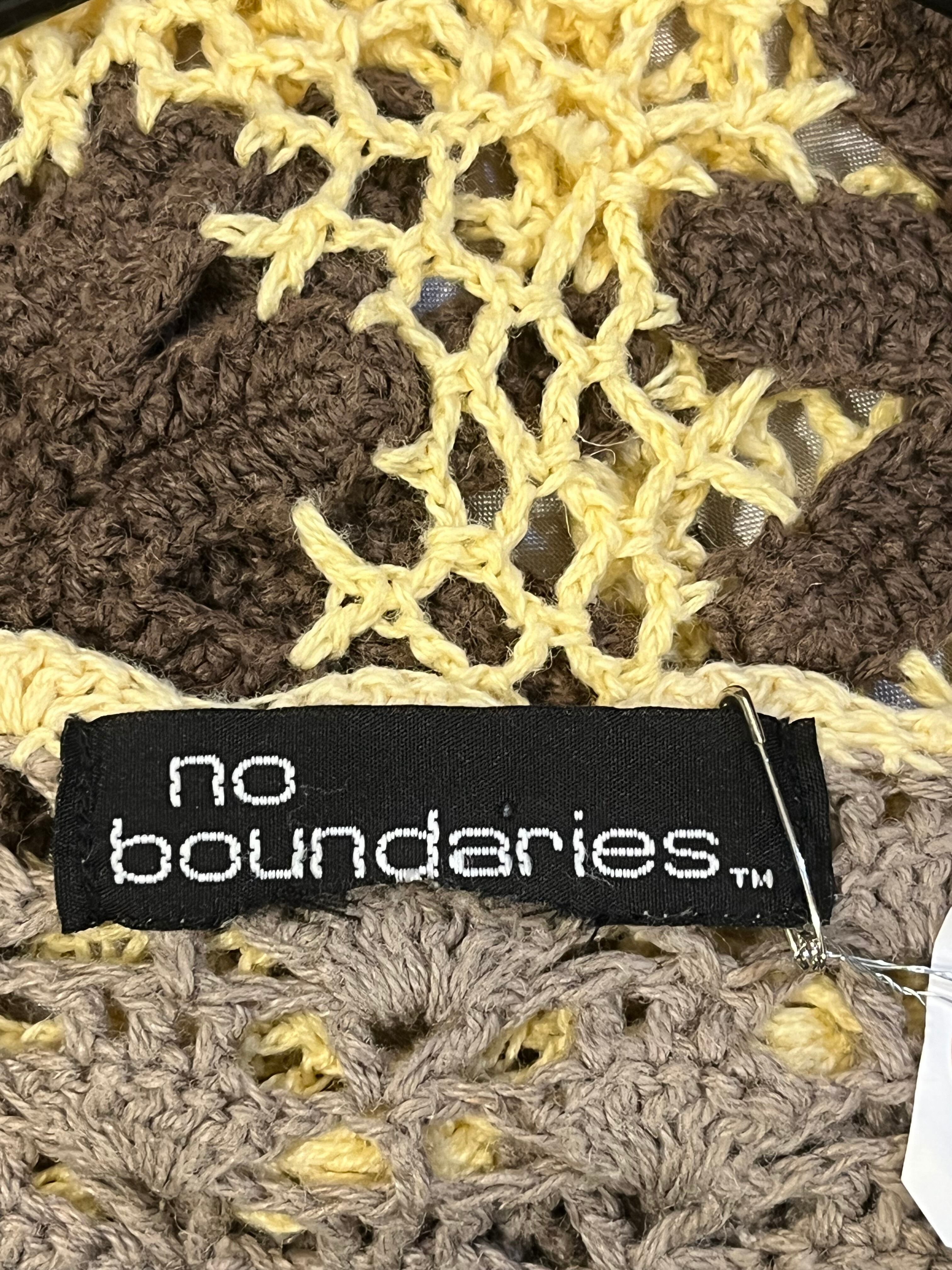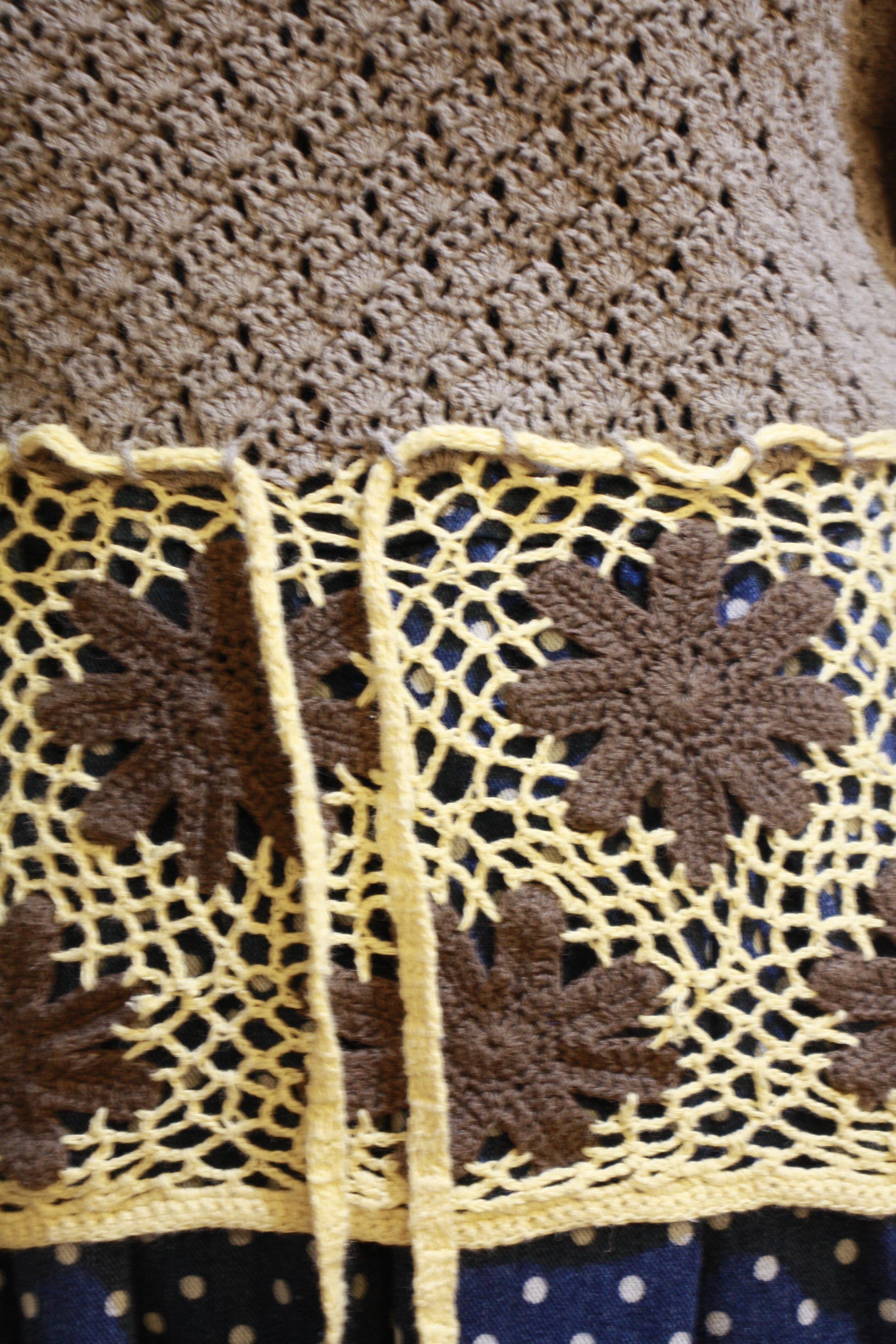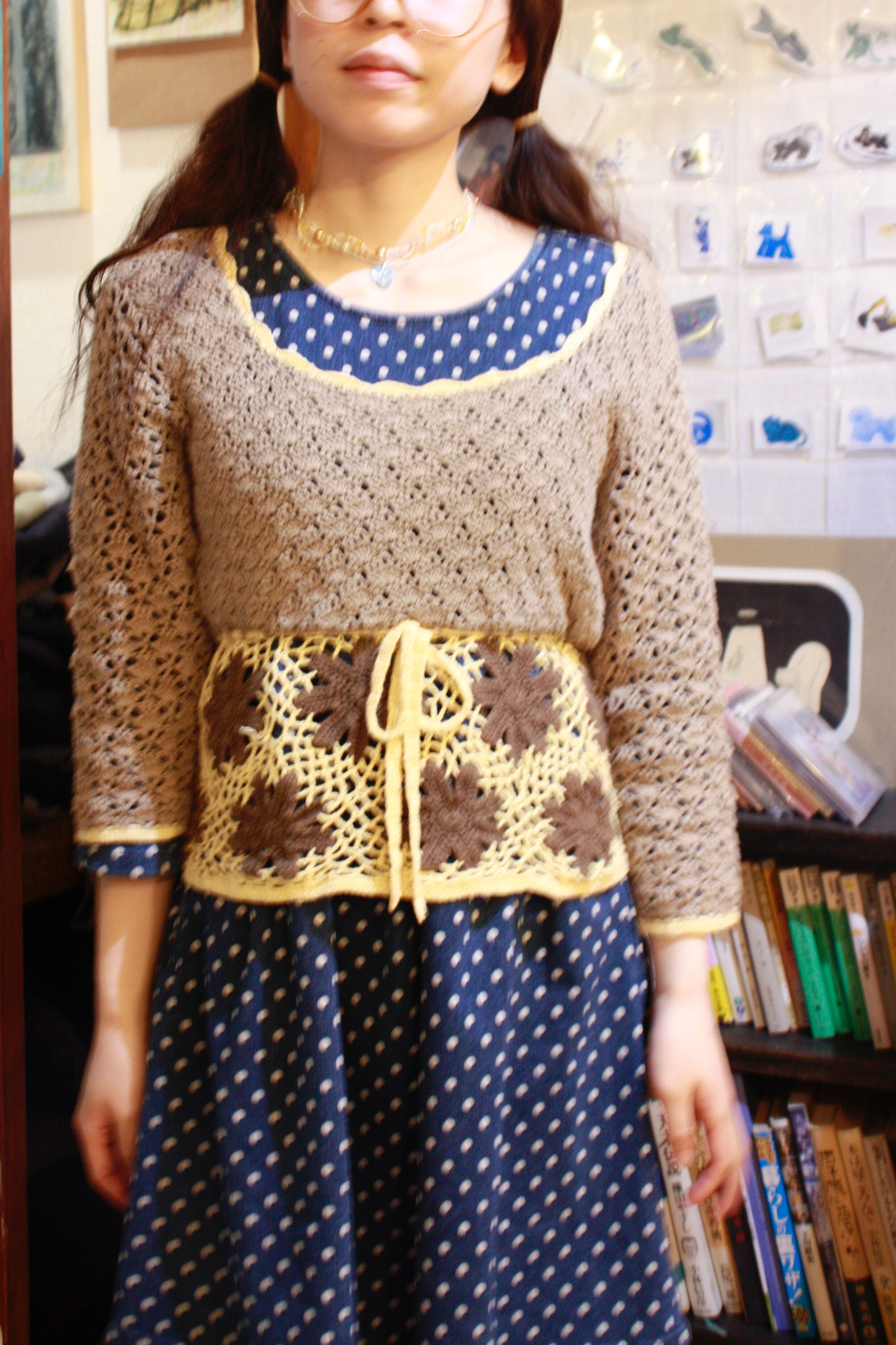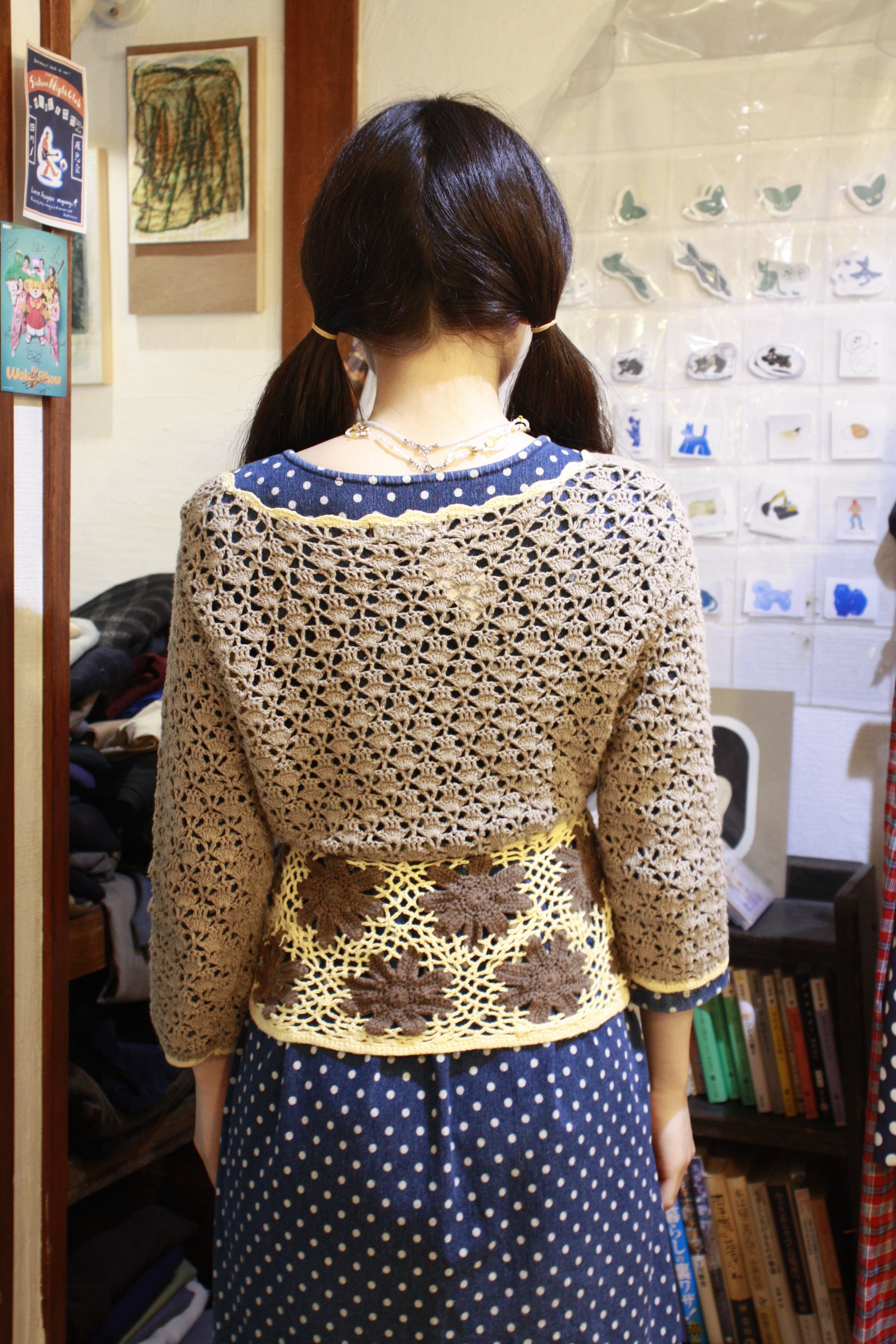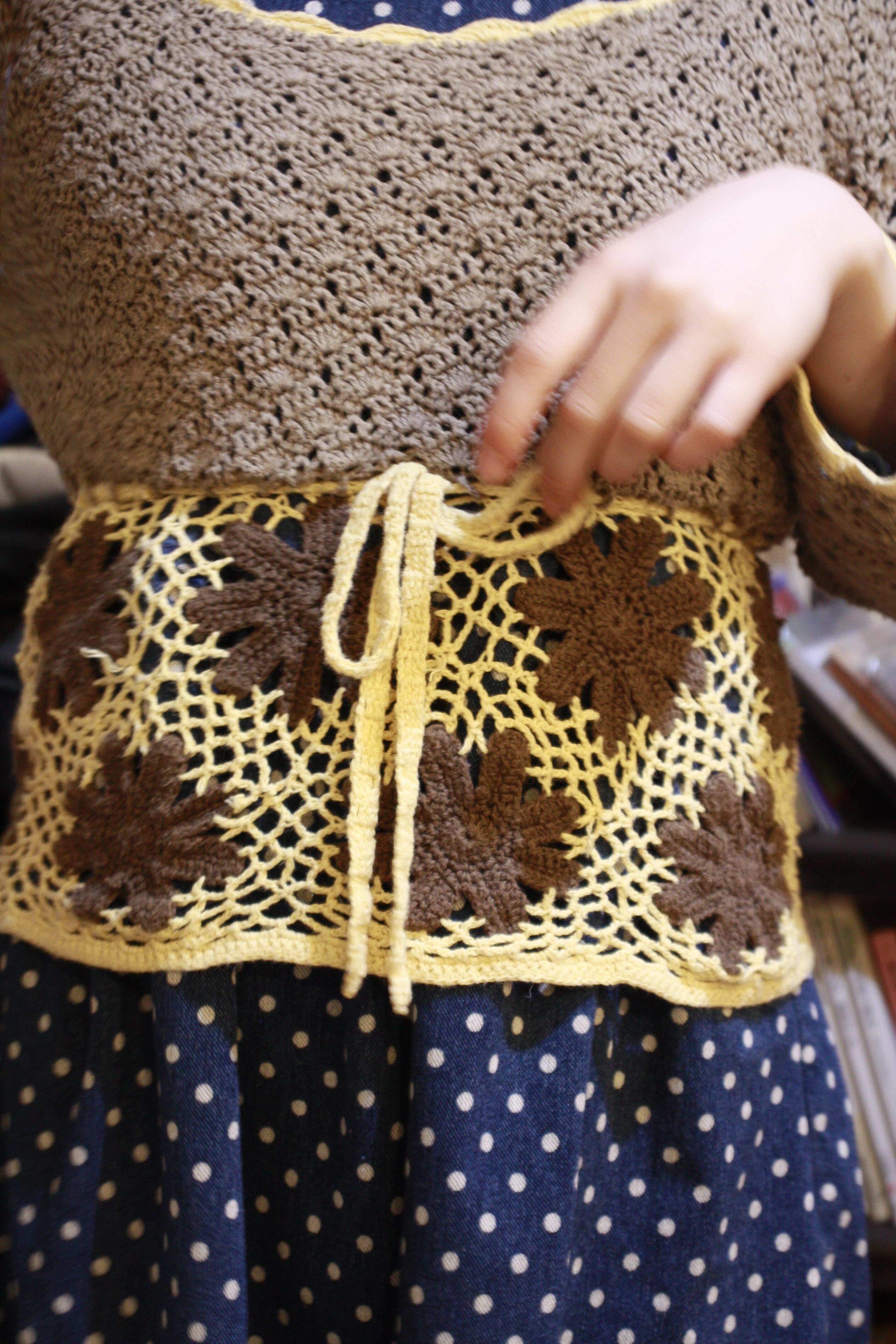 温度を感じさせるブラウンの複雑な編み目のクロシェニット。