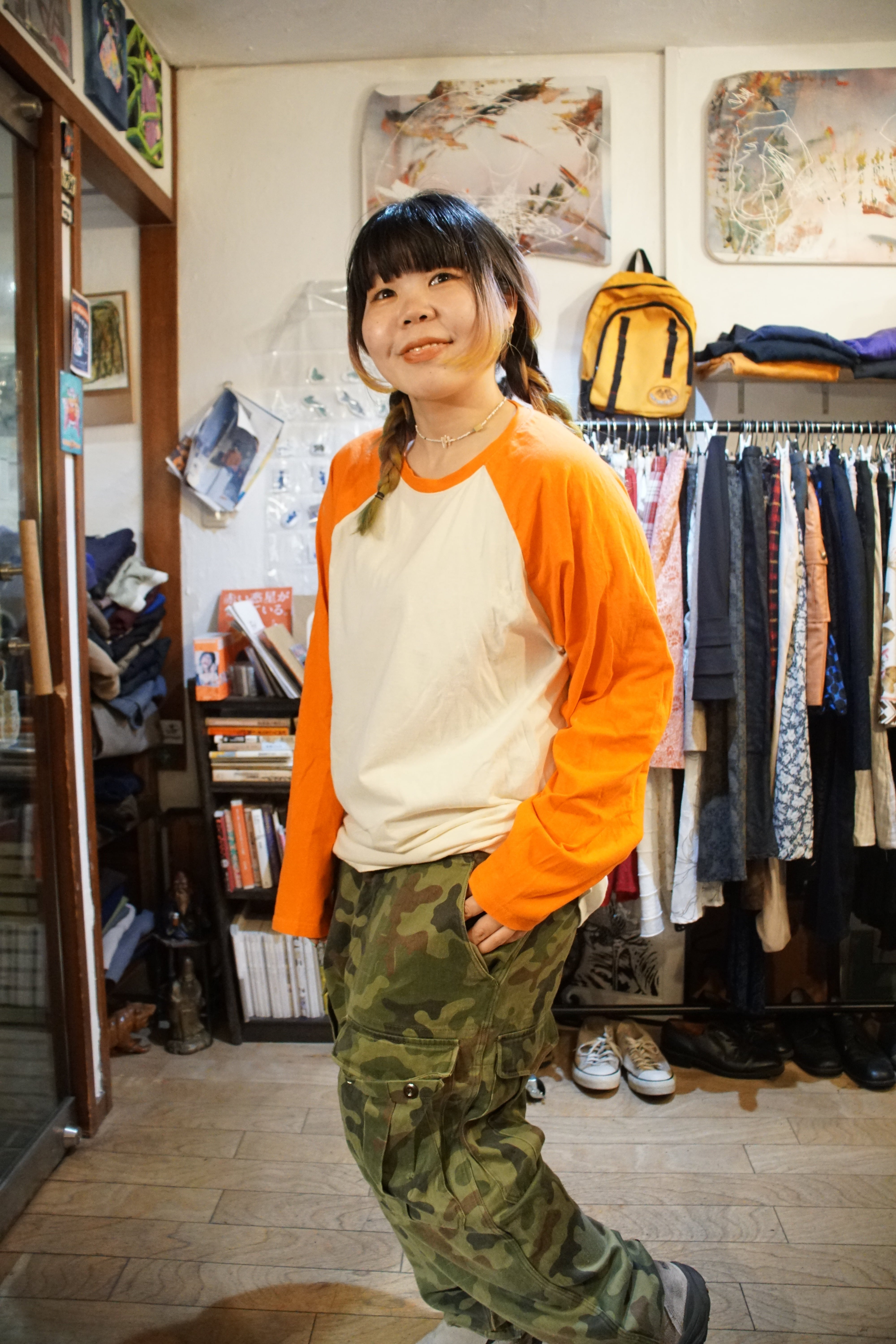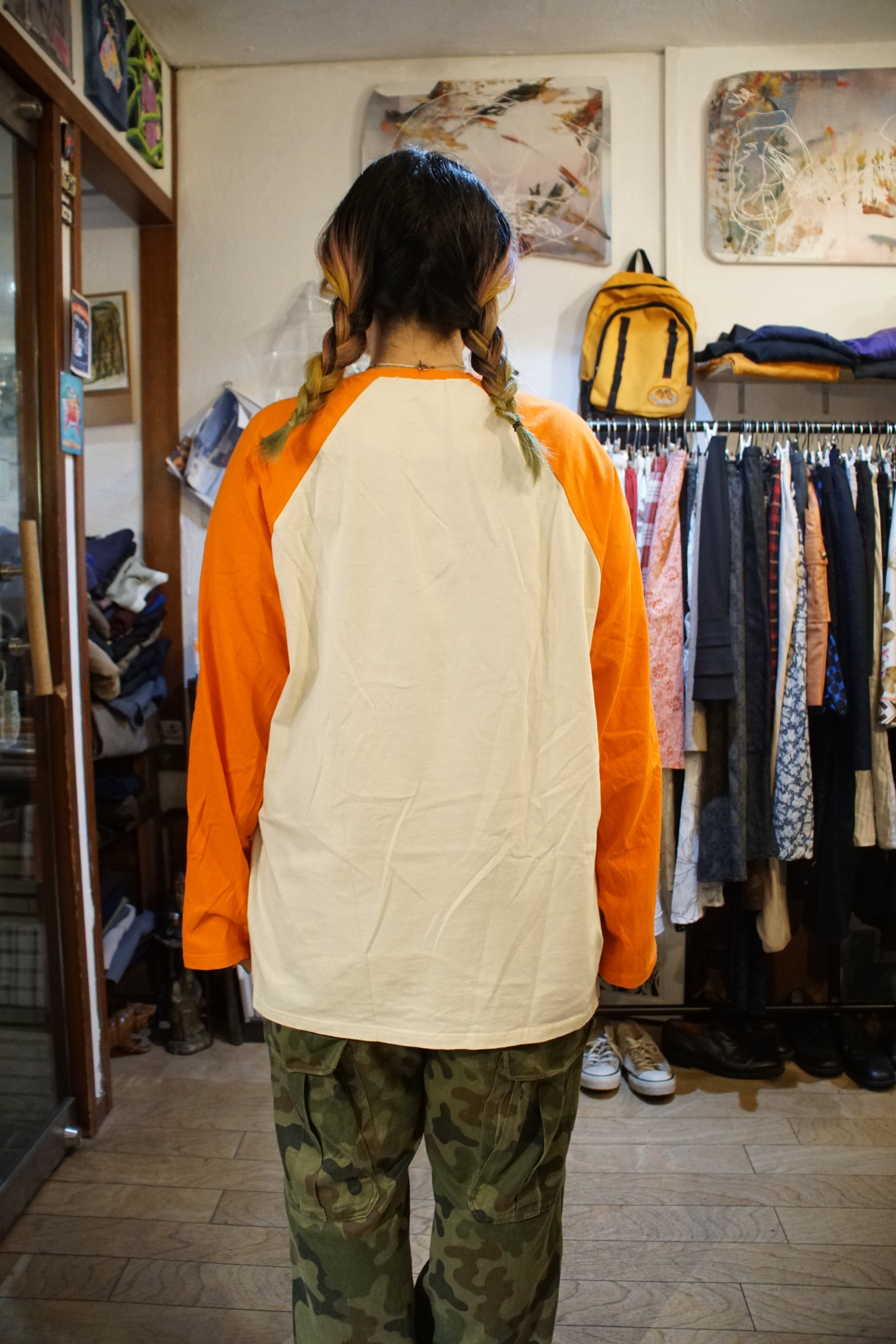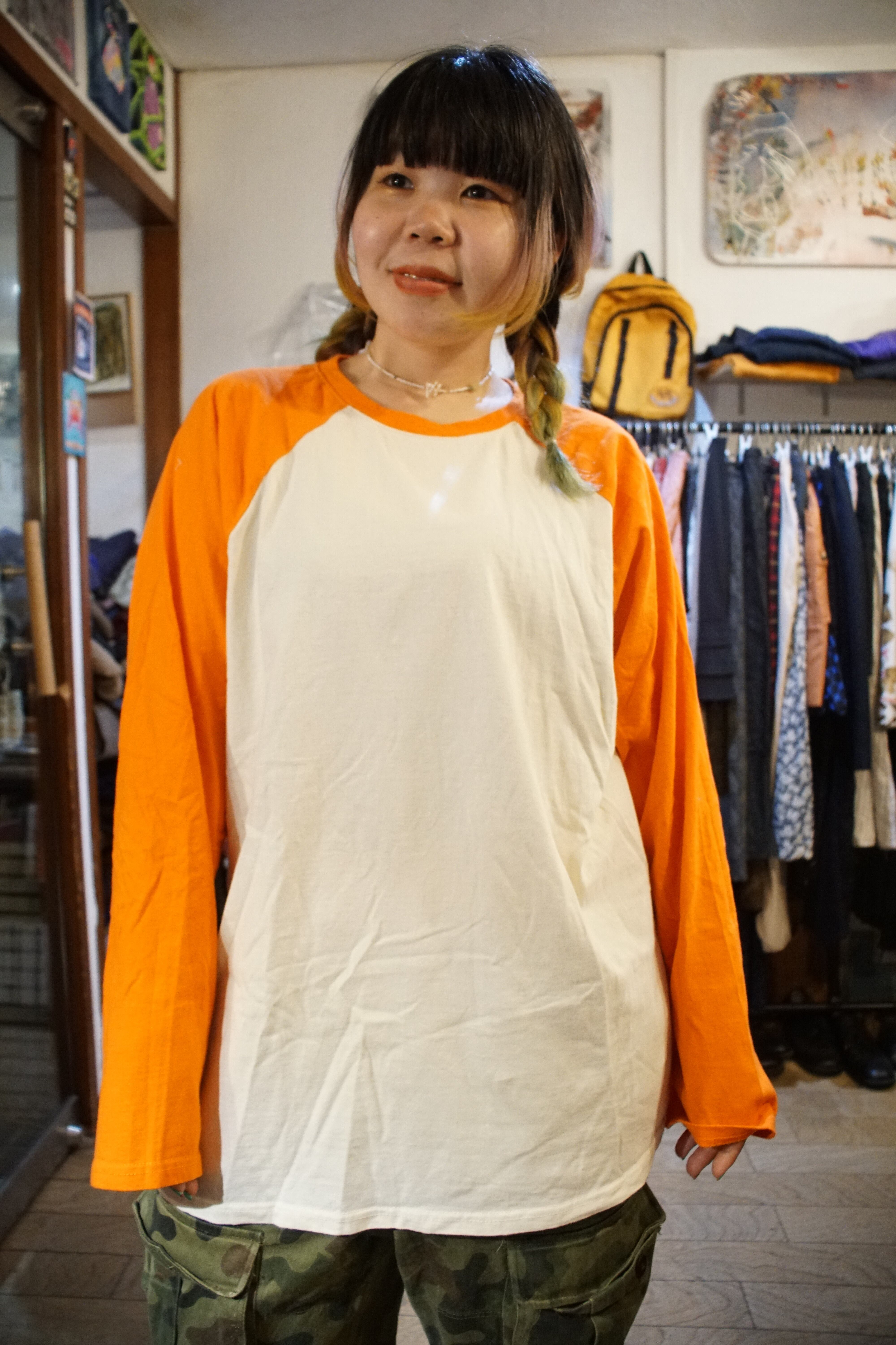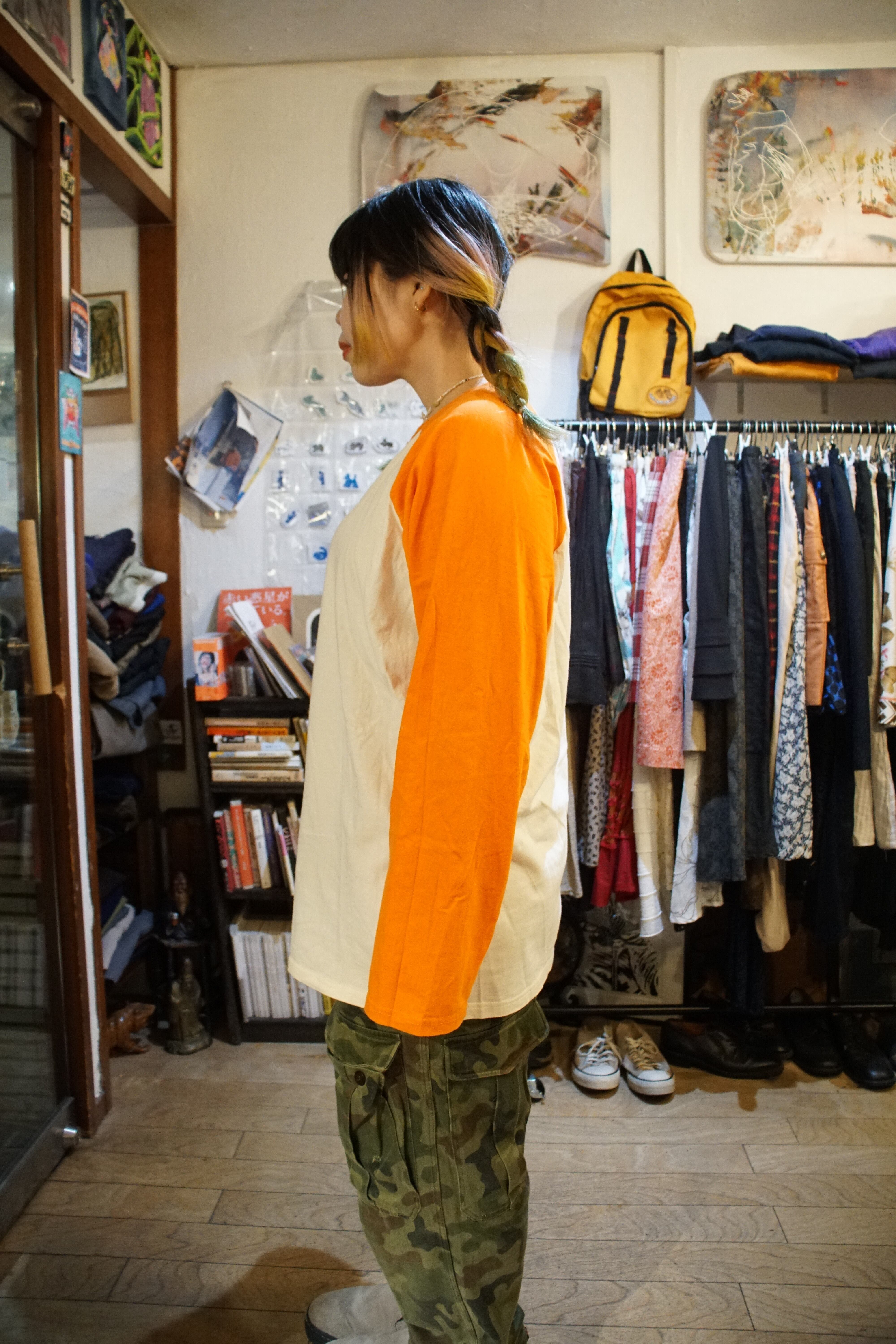 視界に飛び込む、覚醒を促すような鮮烈なオレンジのラグランT。