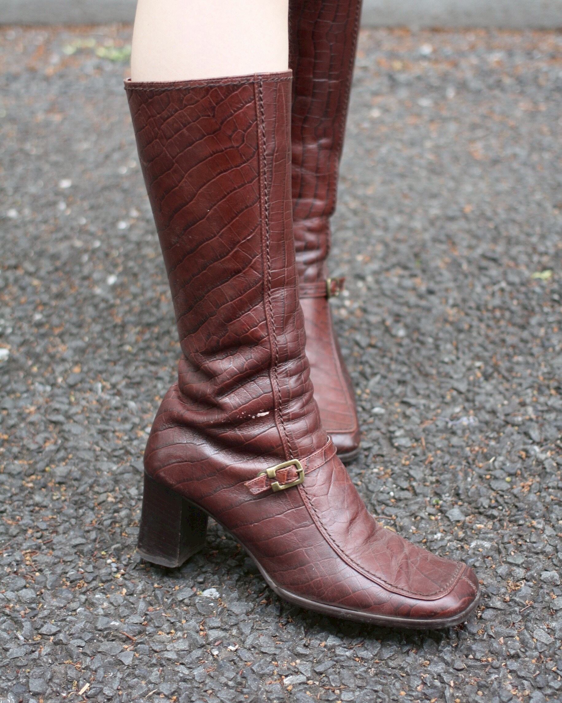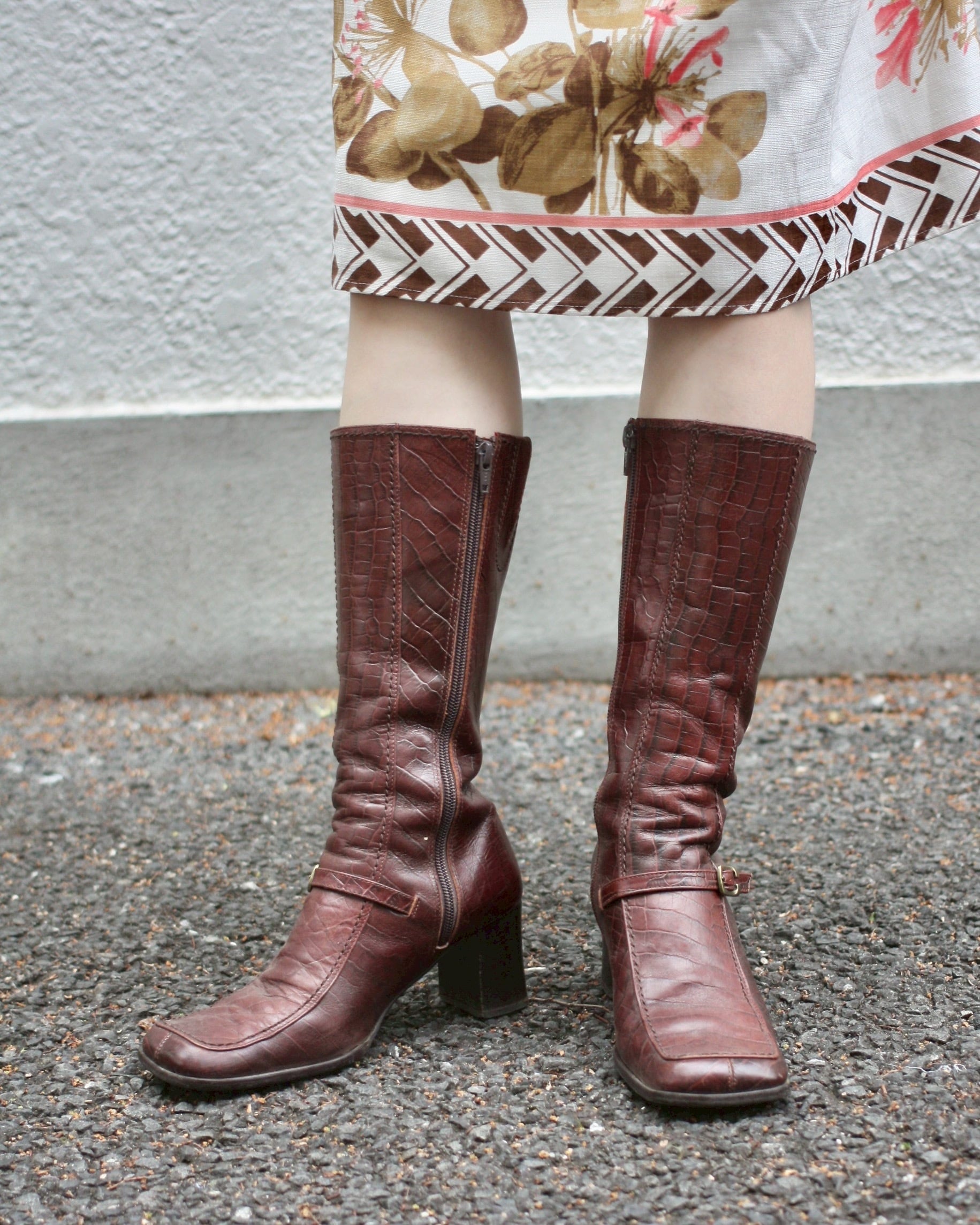 90年代の空気感を纏った端正なスクエアトゥ。直線のラインが、足元に「確かな意志」を宿らせる力強いデザインの革質が目を惹きます。