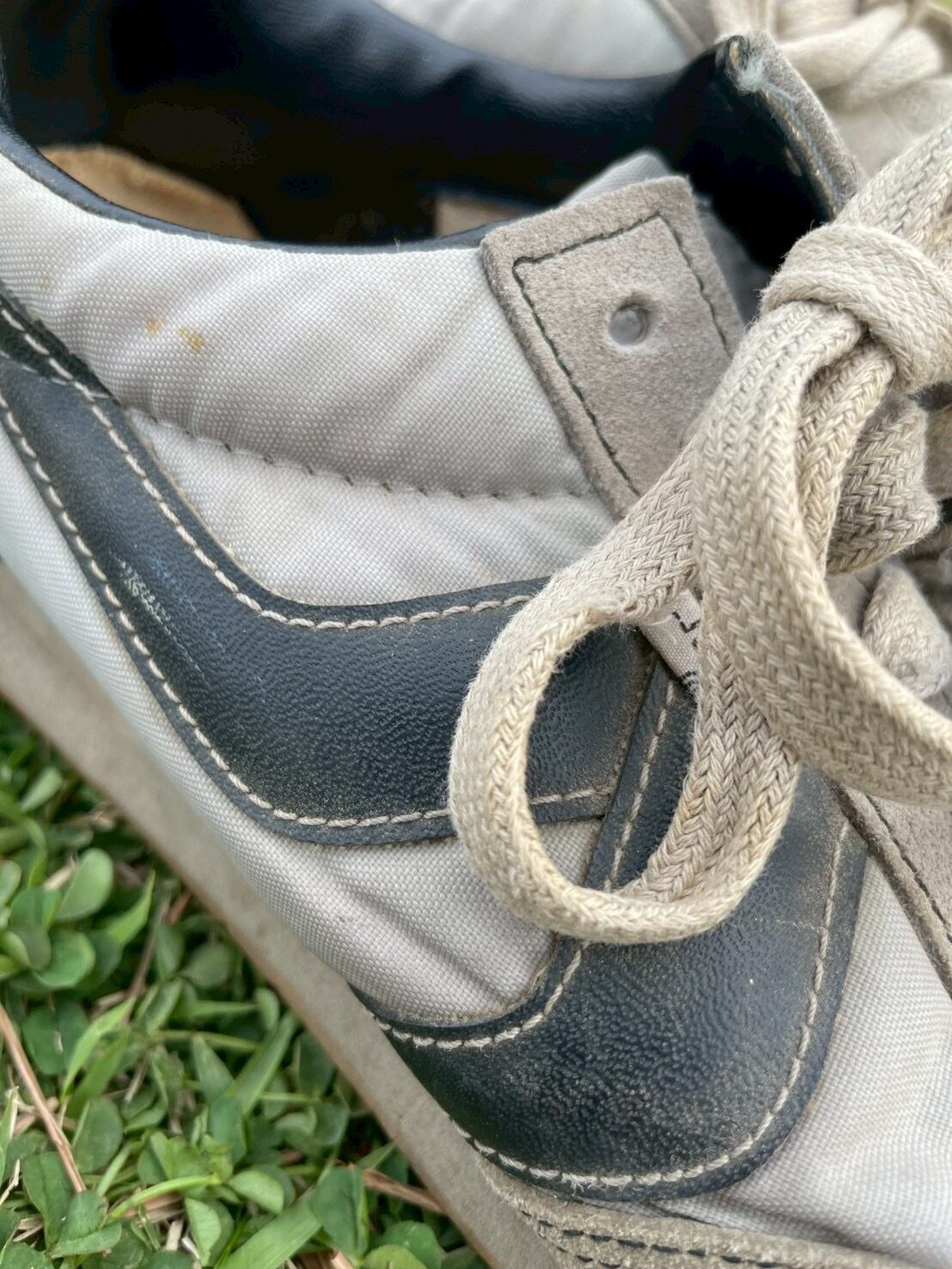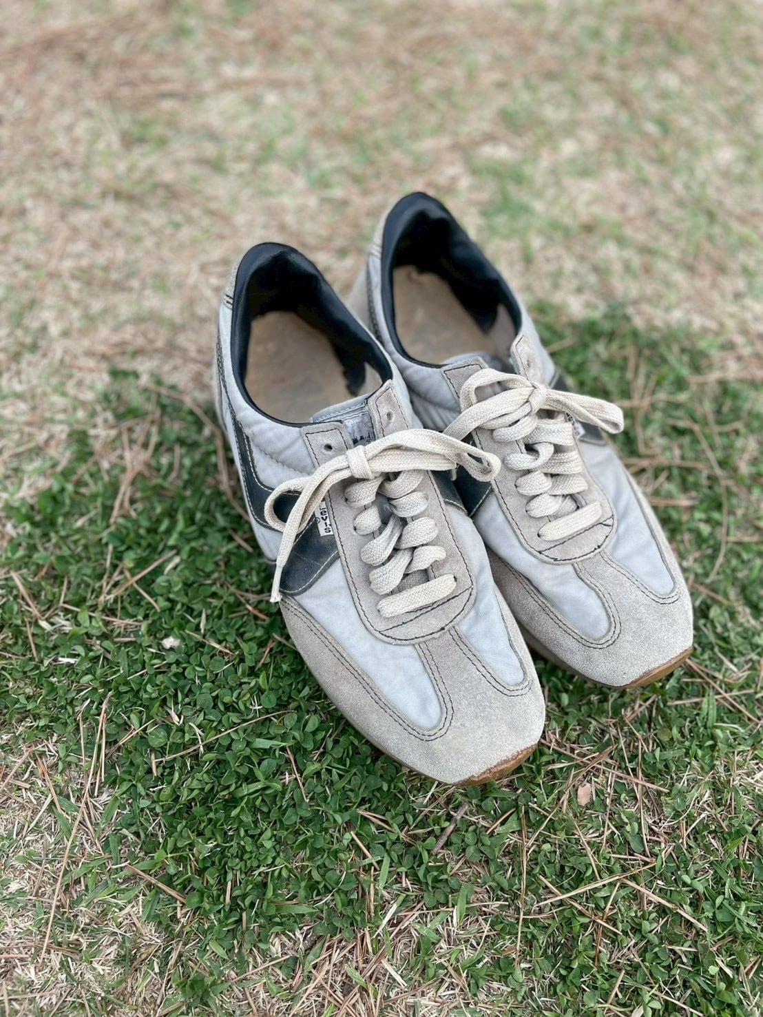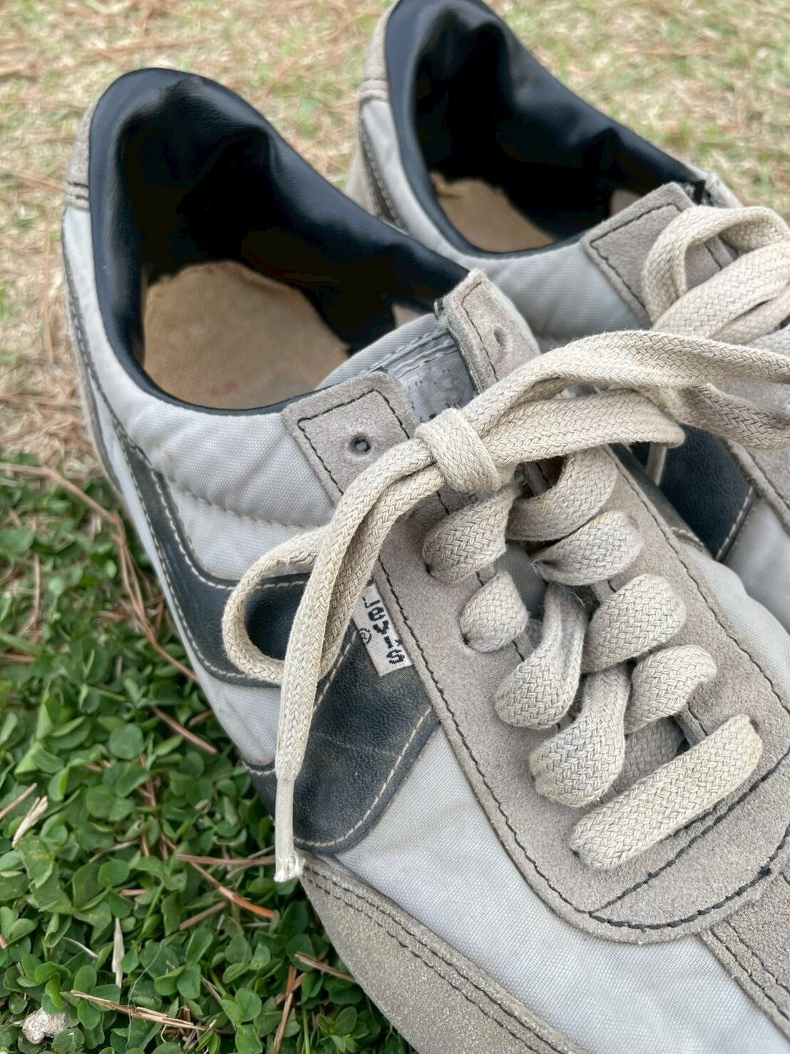 サイドの濃紺のラインと、そこにぽつりと灯されたホワイトタブ。普遍的なランニングシューズという形式に、二度と再現できない一点の「情緒」を宿らせています。