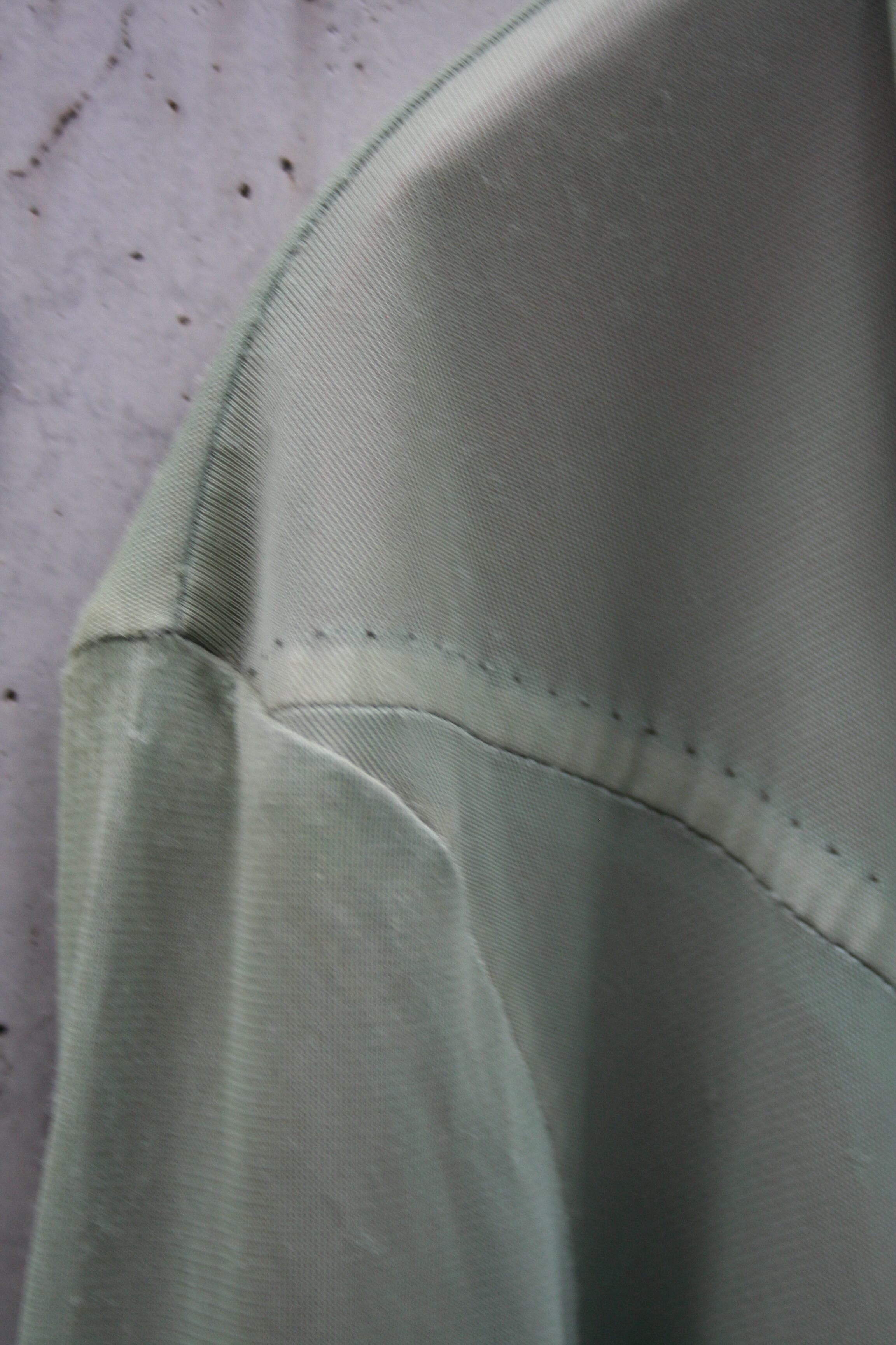表生地のグリーンはシースルーになっており、鮮やかな裏地のブロンズカラーの色味がプラスされることで柔らかなオリーブカラーに。