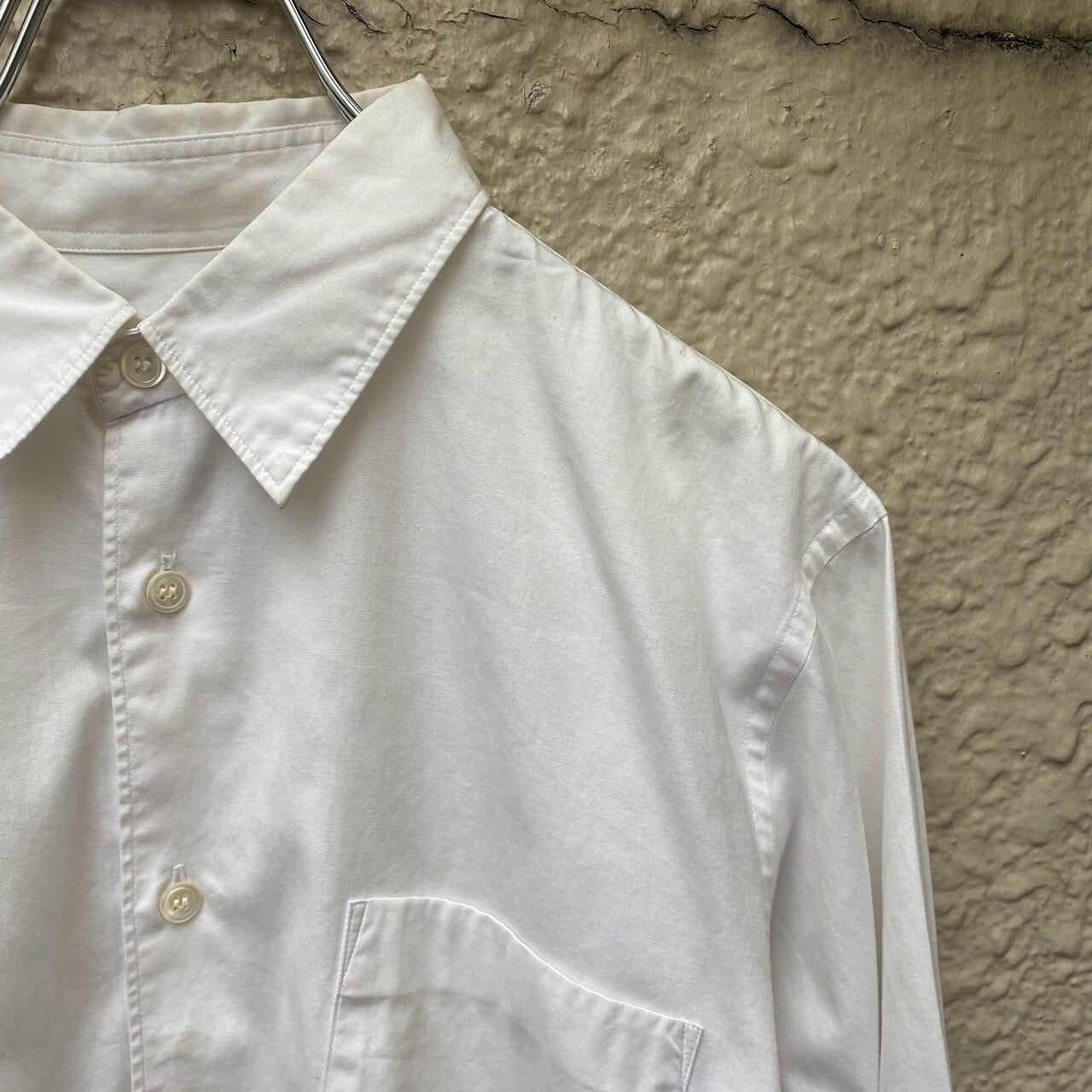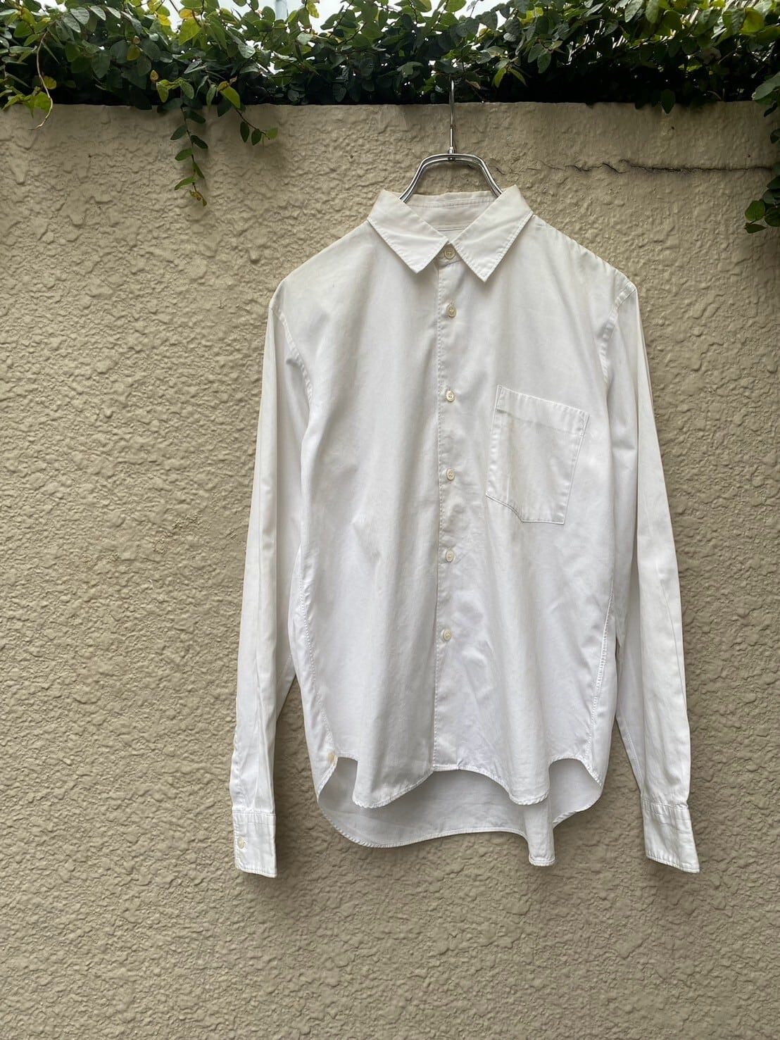 プレーンなシャツに見えますが、6つボタンの配置や下寄りに着いたポケット、きめ細やかで妖艶な光沢を魅せるコットン生地など凄まじいこだわりを感じる1着。