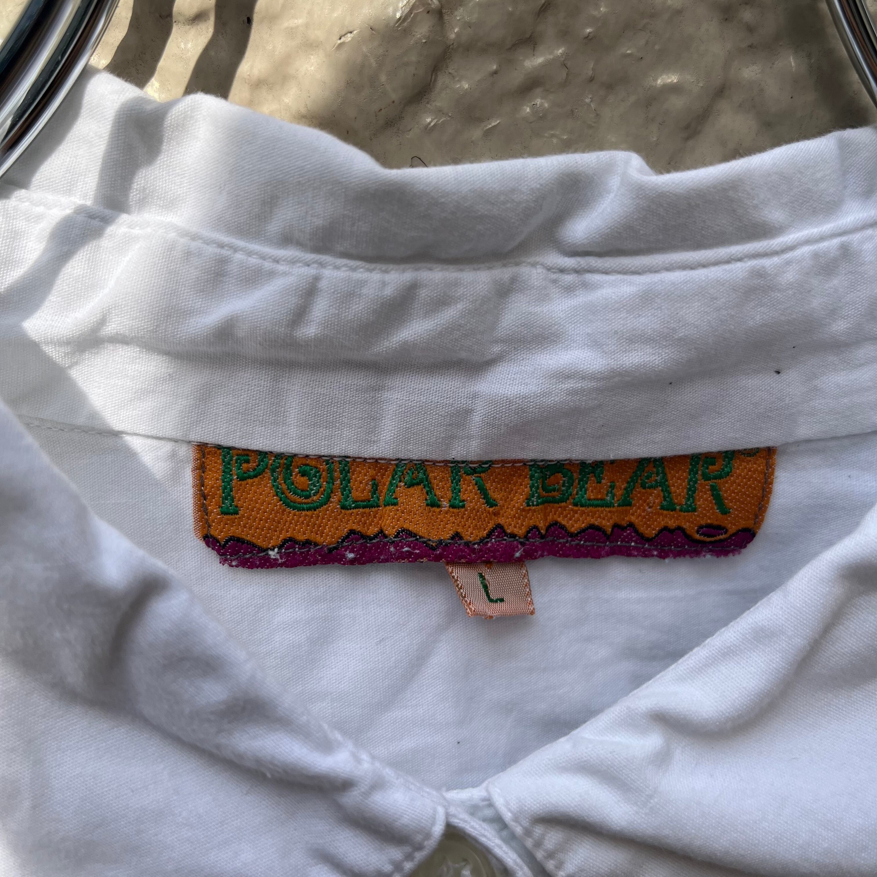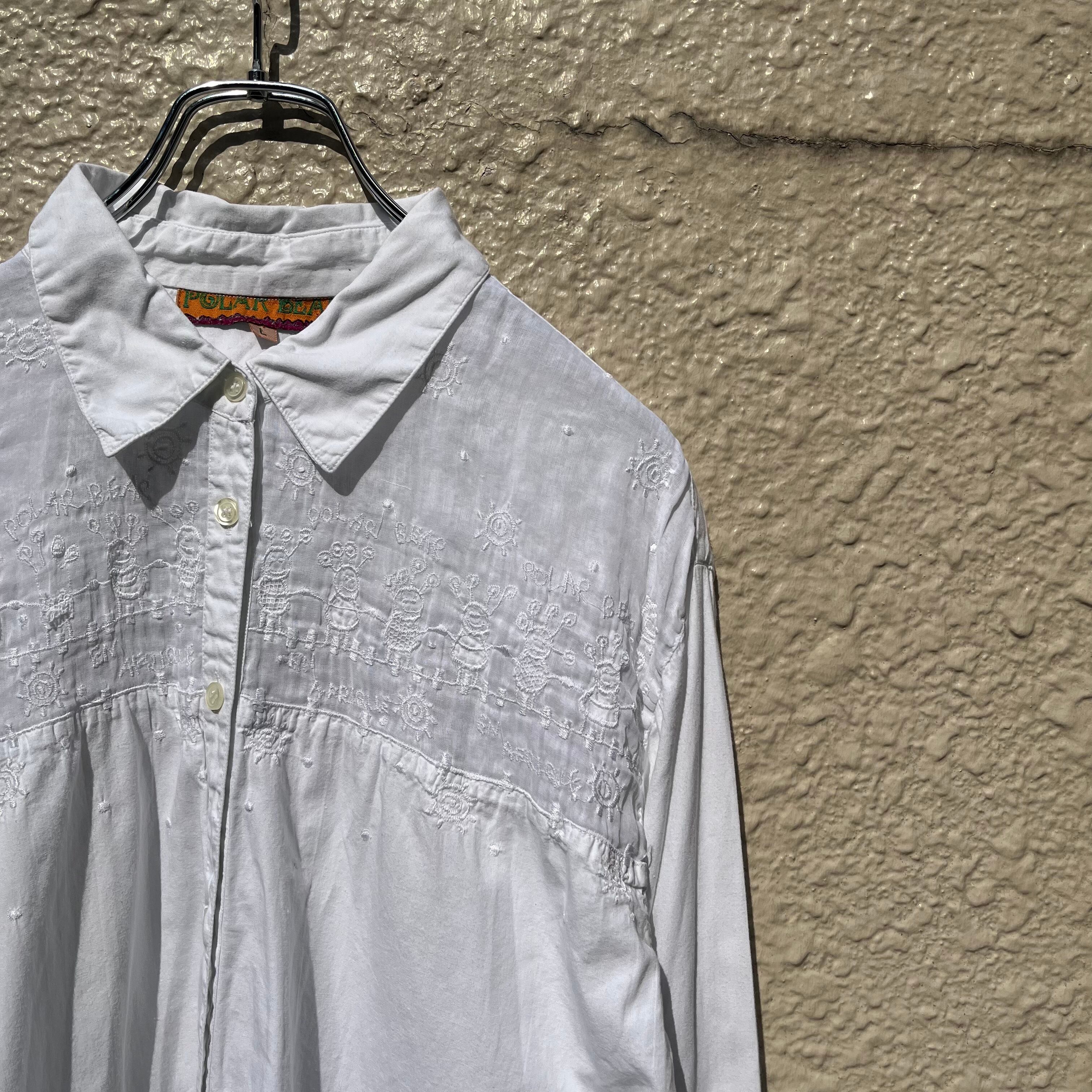 不思議な生物が刺繍によって表現されたデザインシャツ。