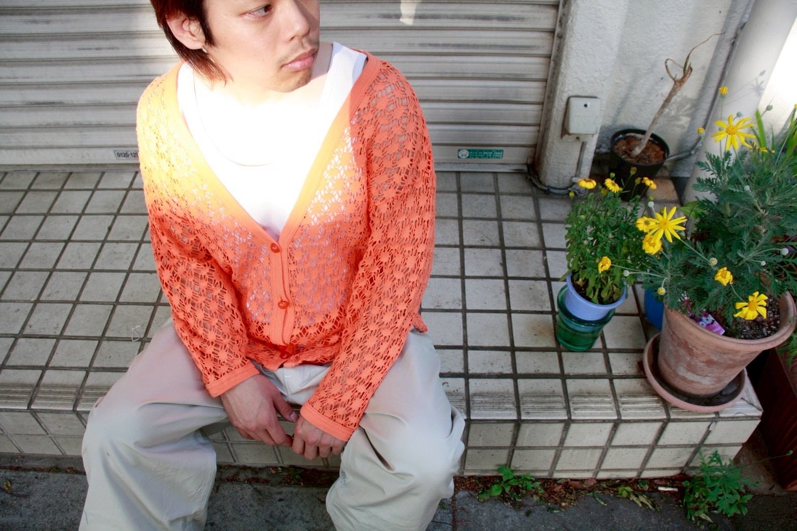 80s"AREO SPORT" Sheer Cotton Cardigan