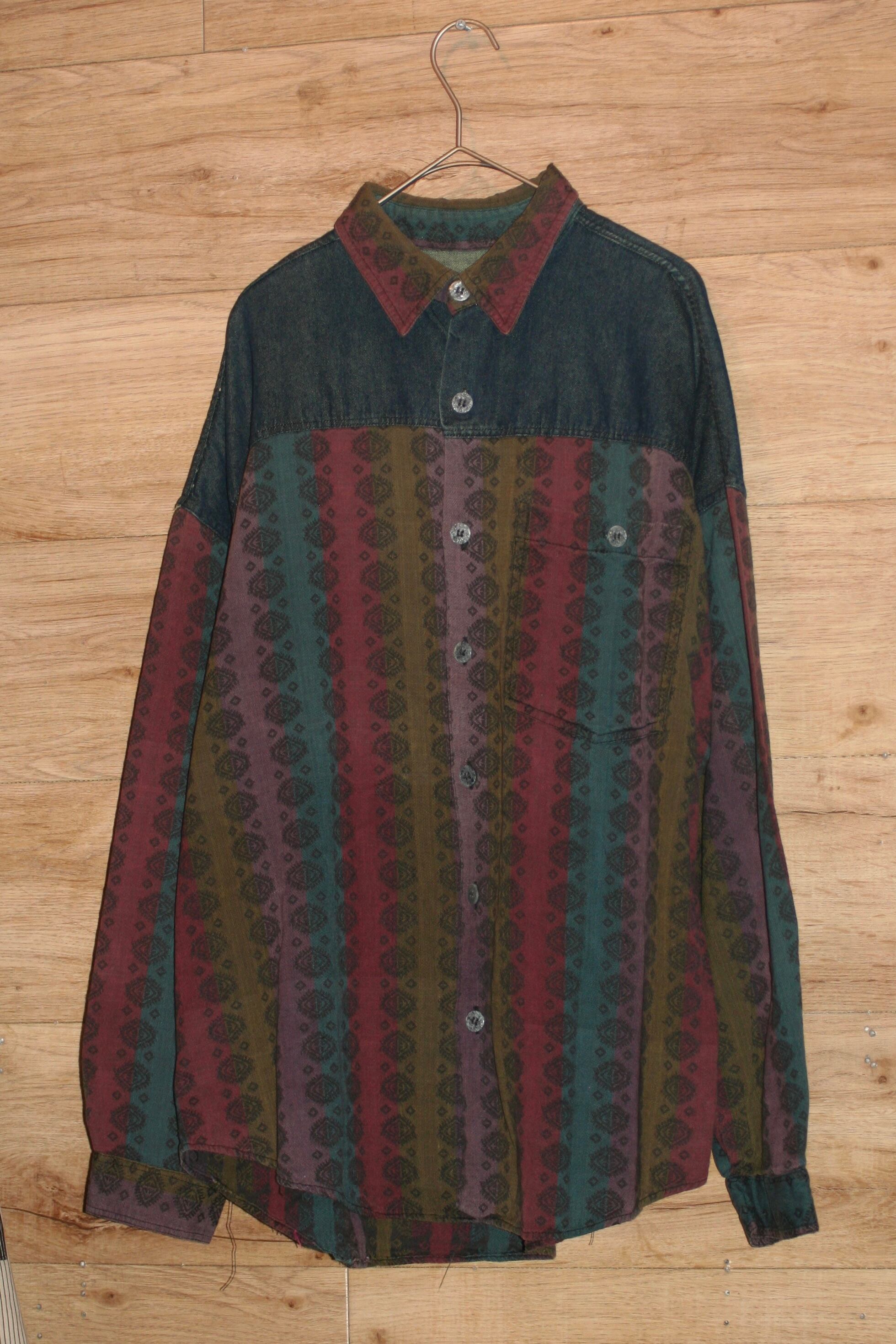 程よい厚みのデニムシャツに紋章柄の柄が組み合わさったデザインシャツ。