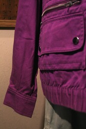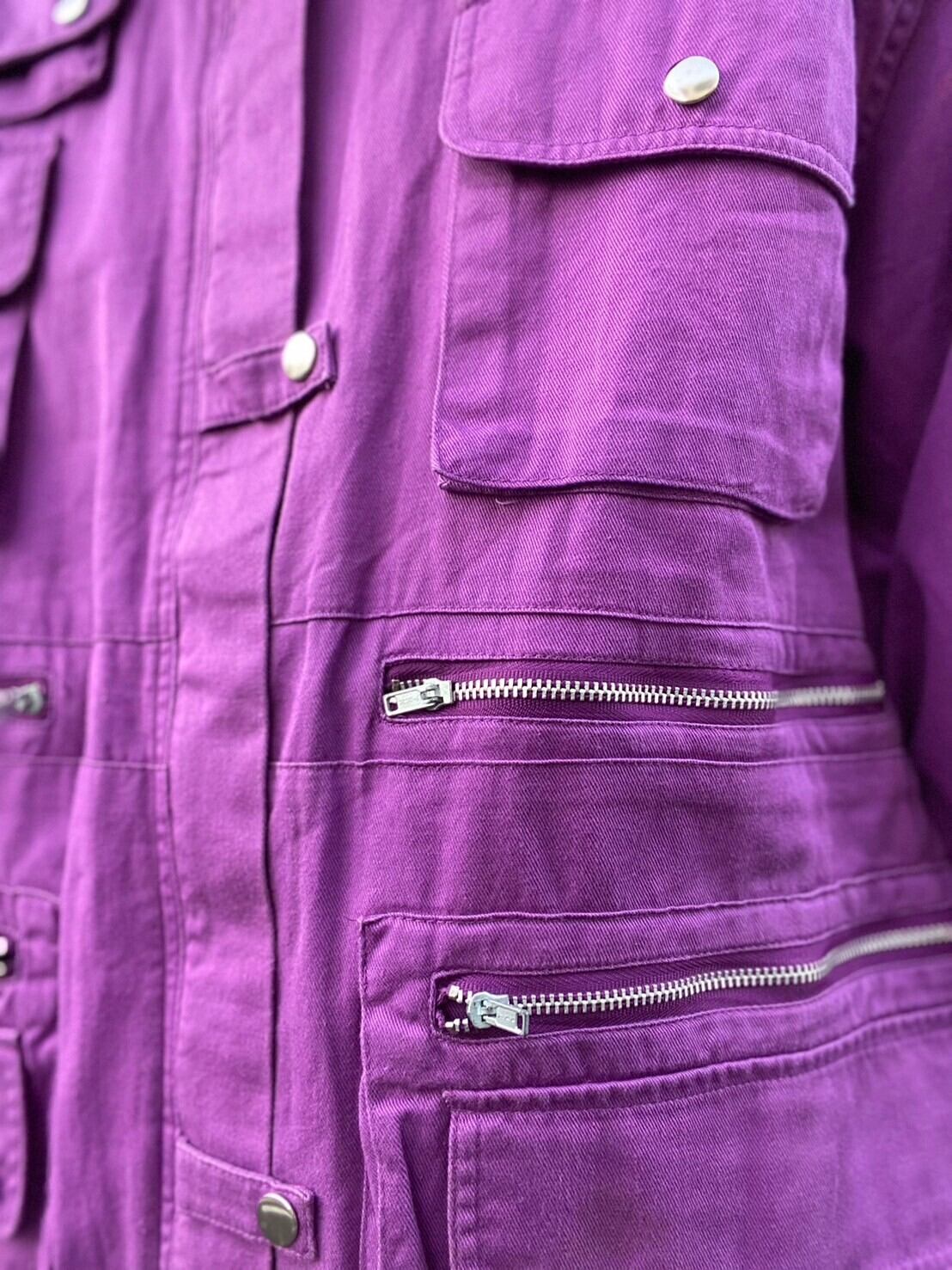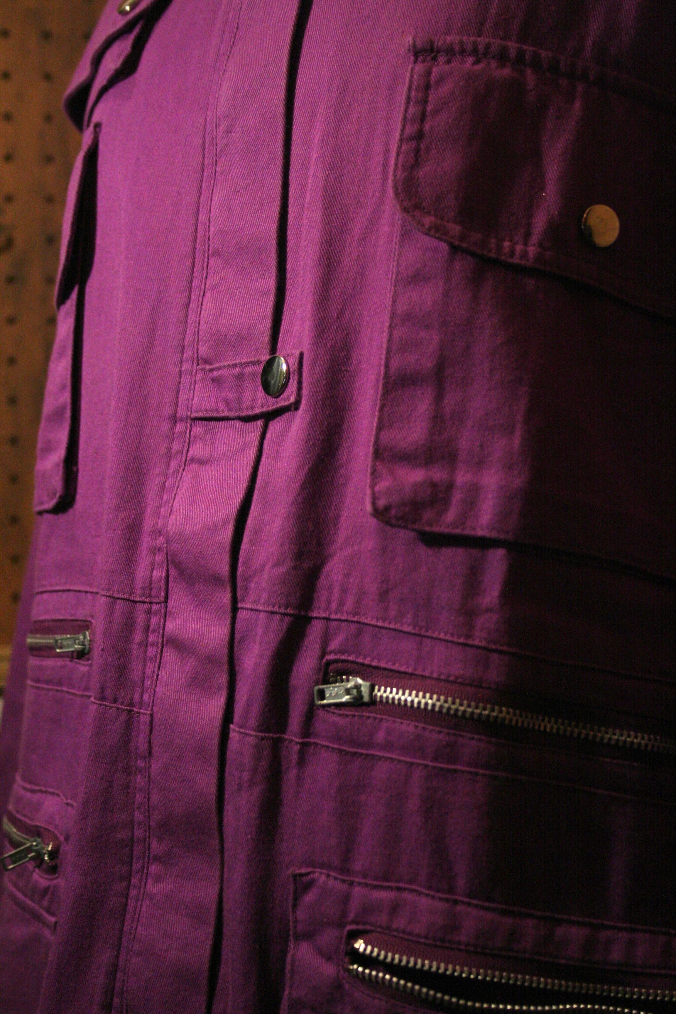 多数のポケットディテールに霞んだシルバージップ、アースカラーではなく紫を採用する点がイタリアらしいですね。
