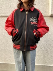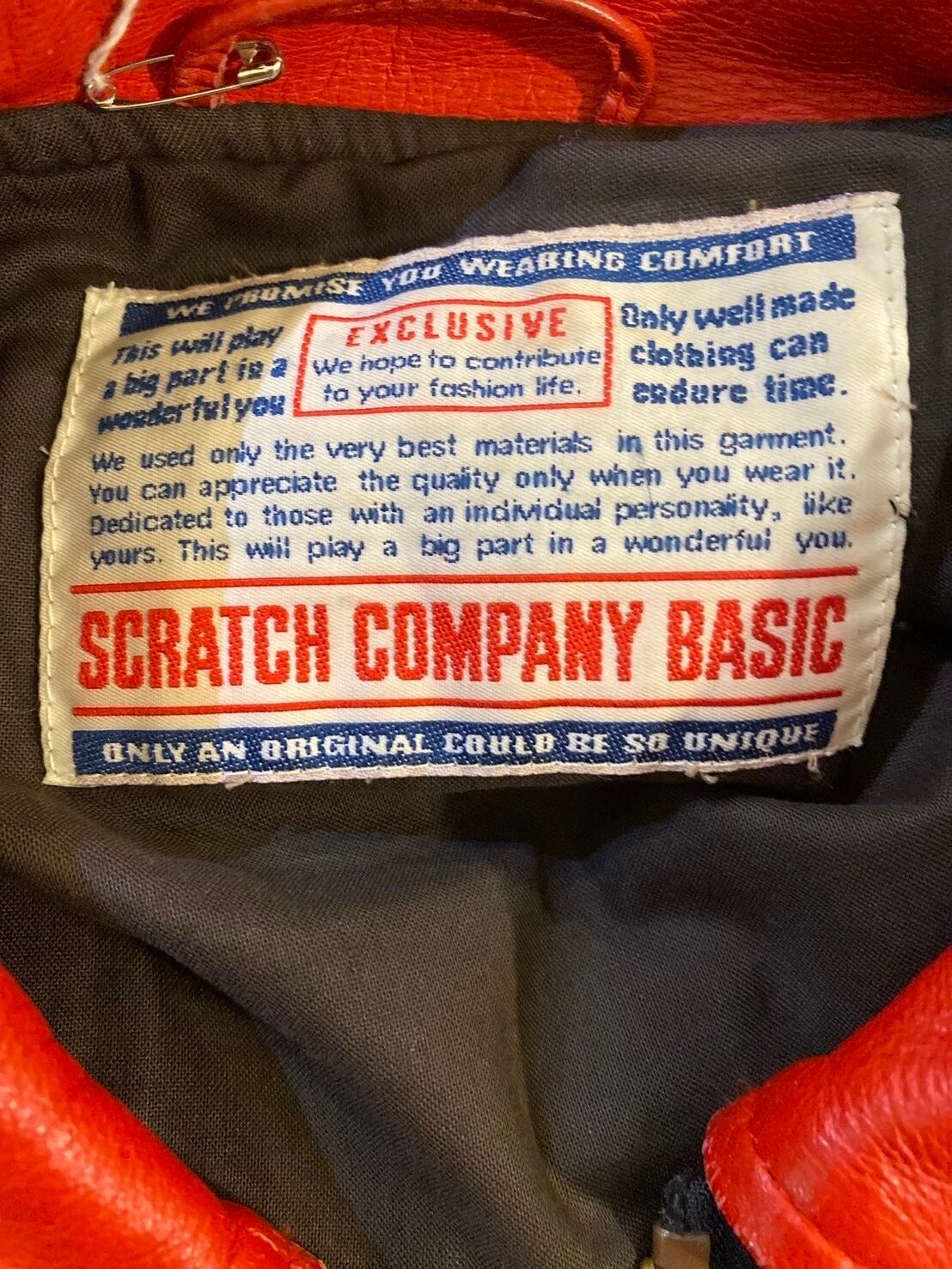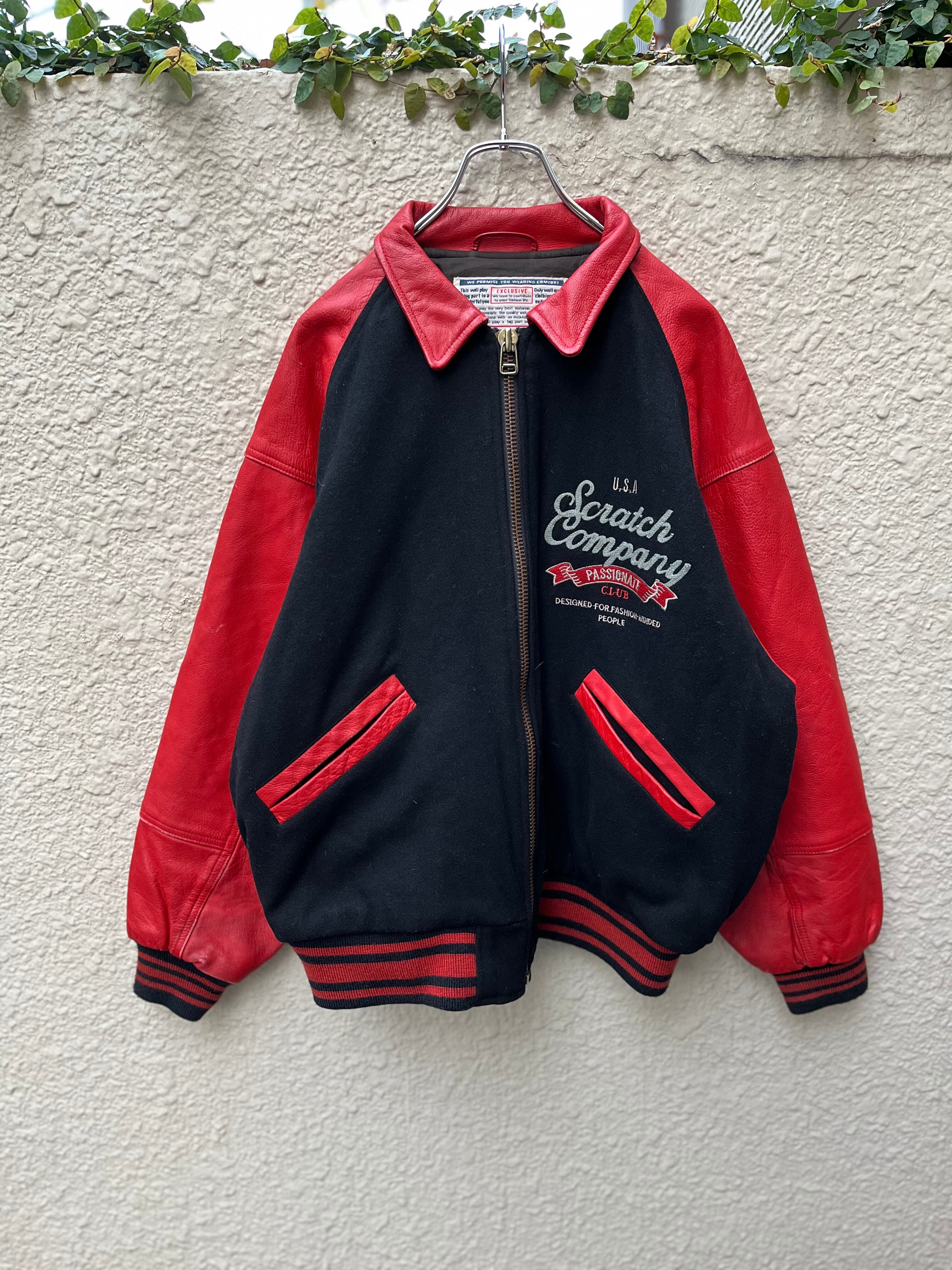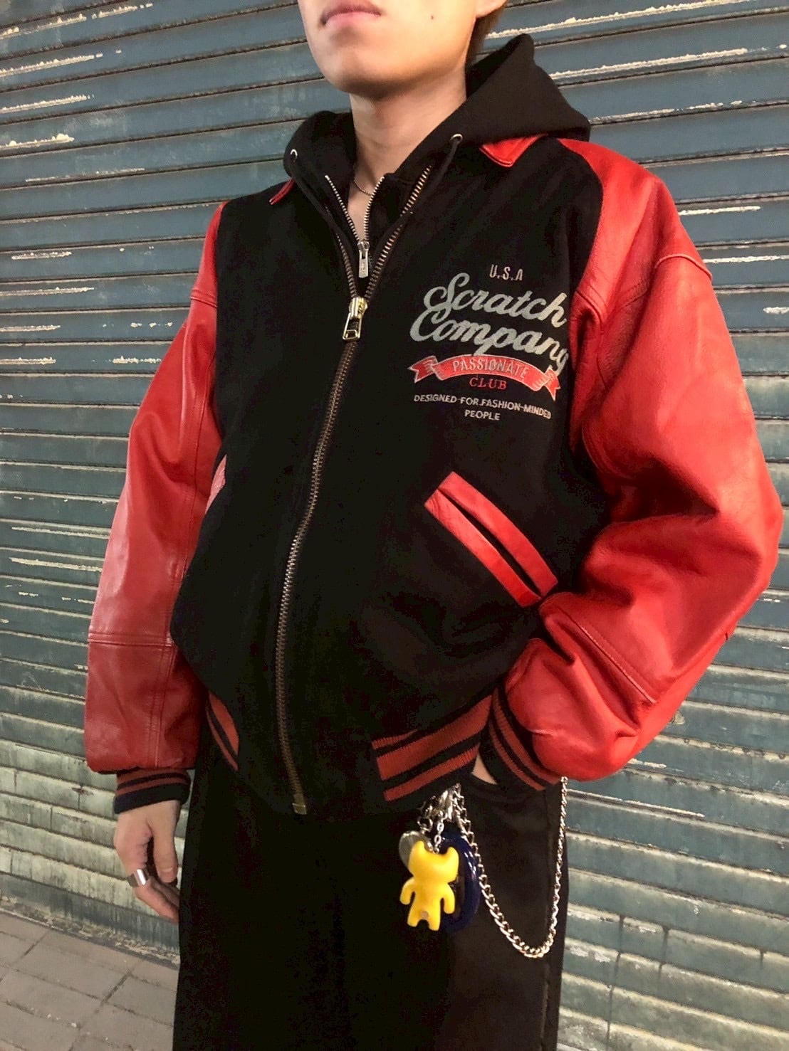 赤レザーにデカめの刺繍デザインな特徴的なスタジャン。