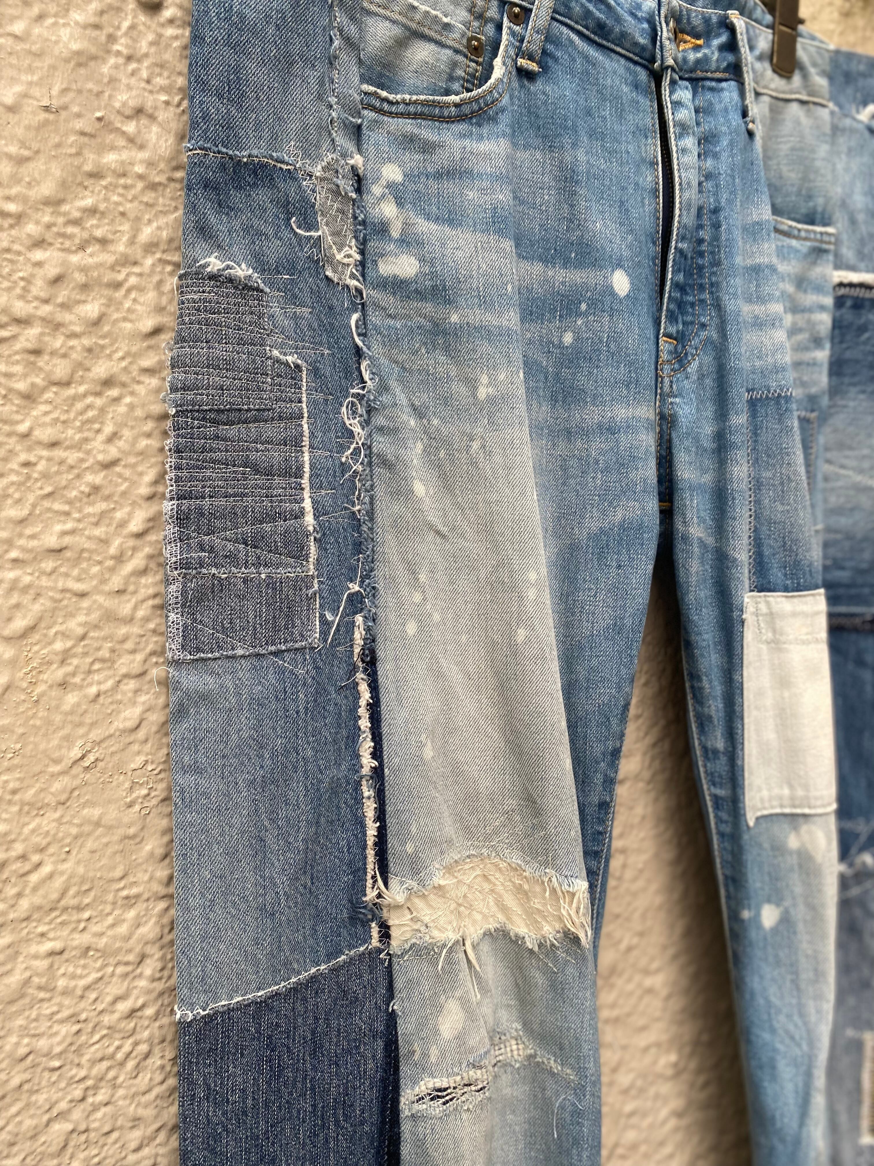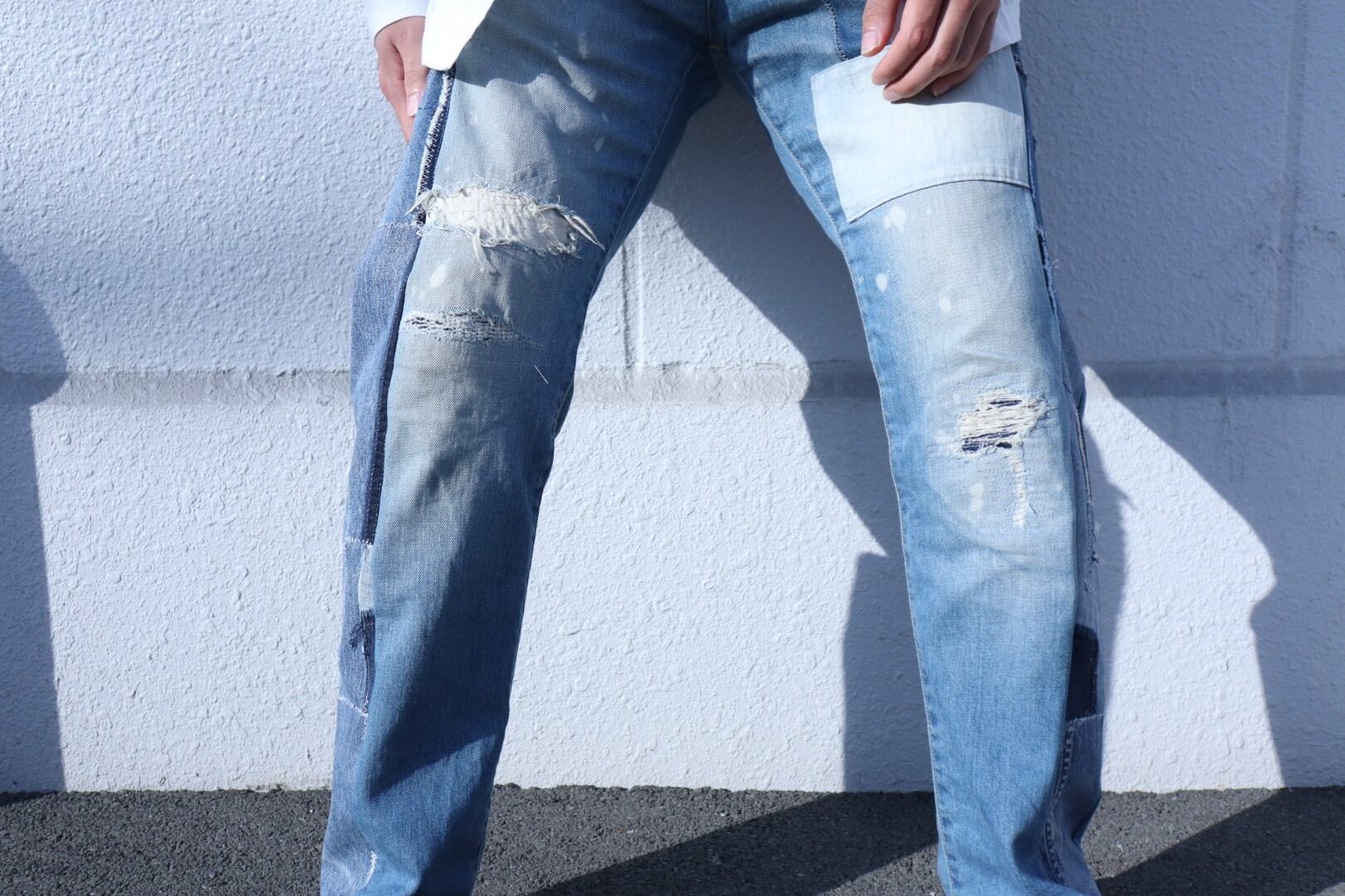 当店スタッフ@remake_kaito によるオリジナルのデニムパンツ。ハンドメイドによる一点物になります。