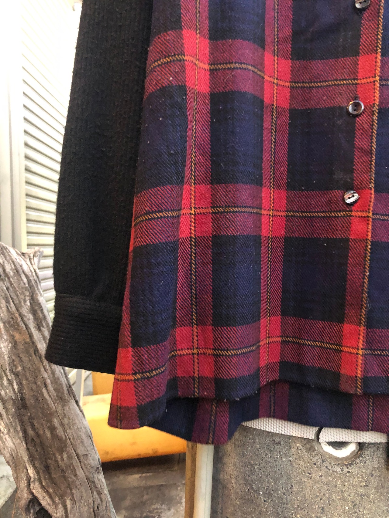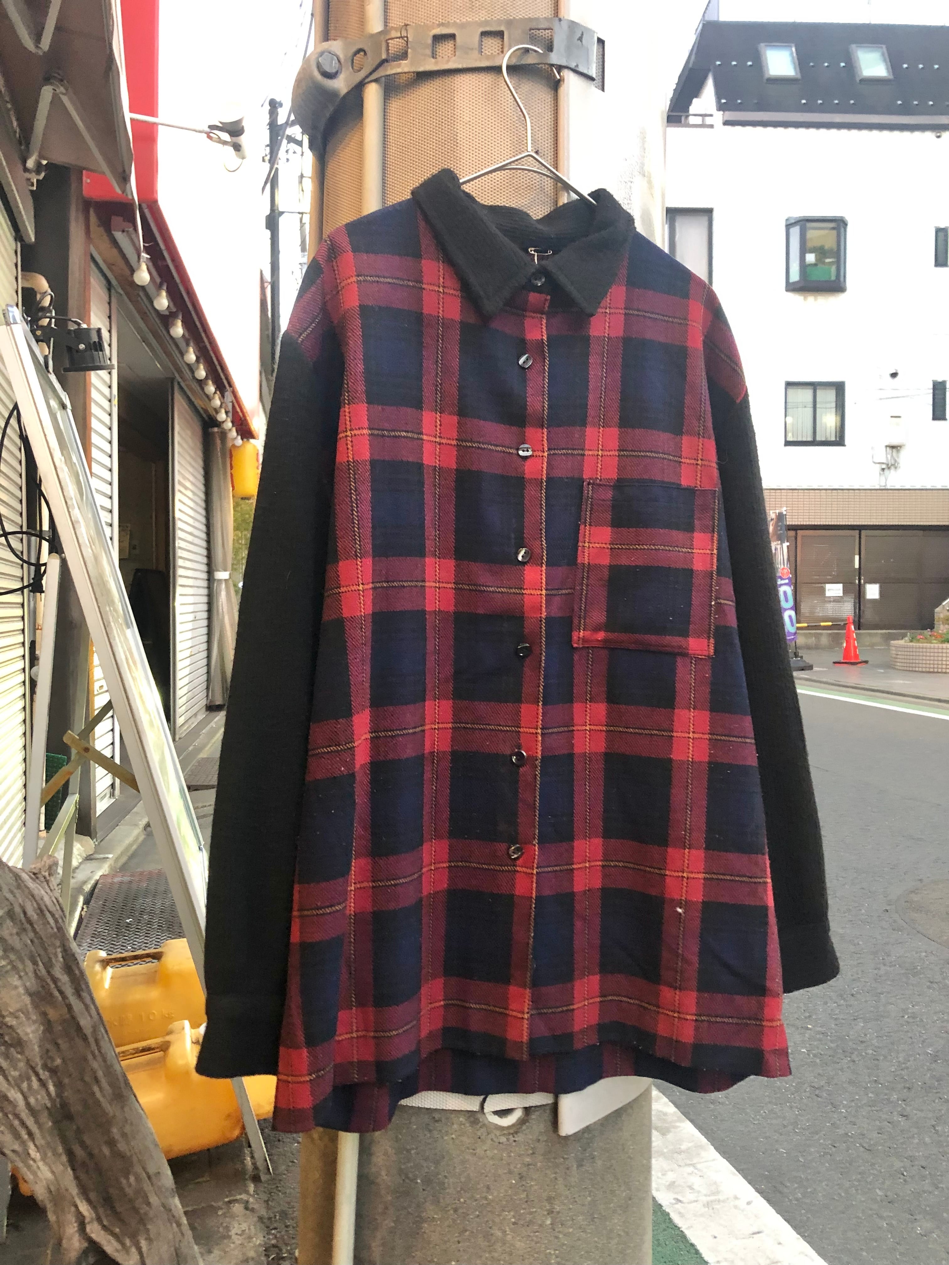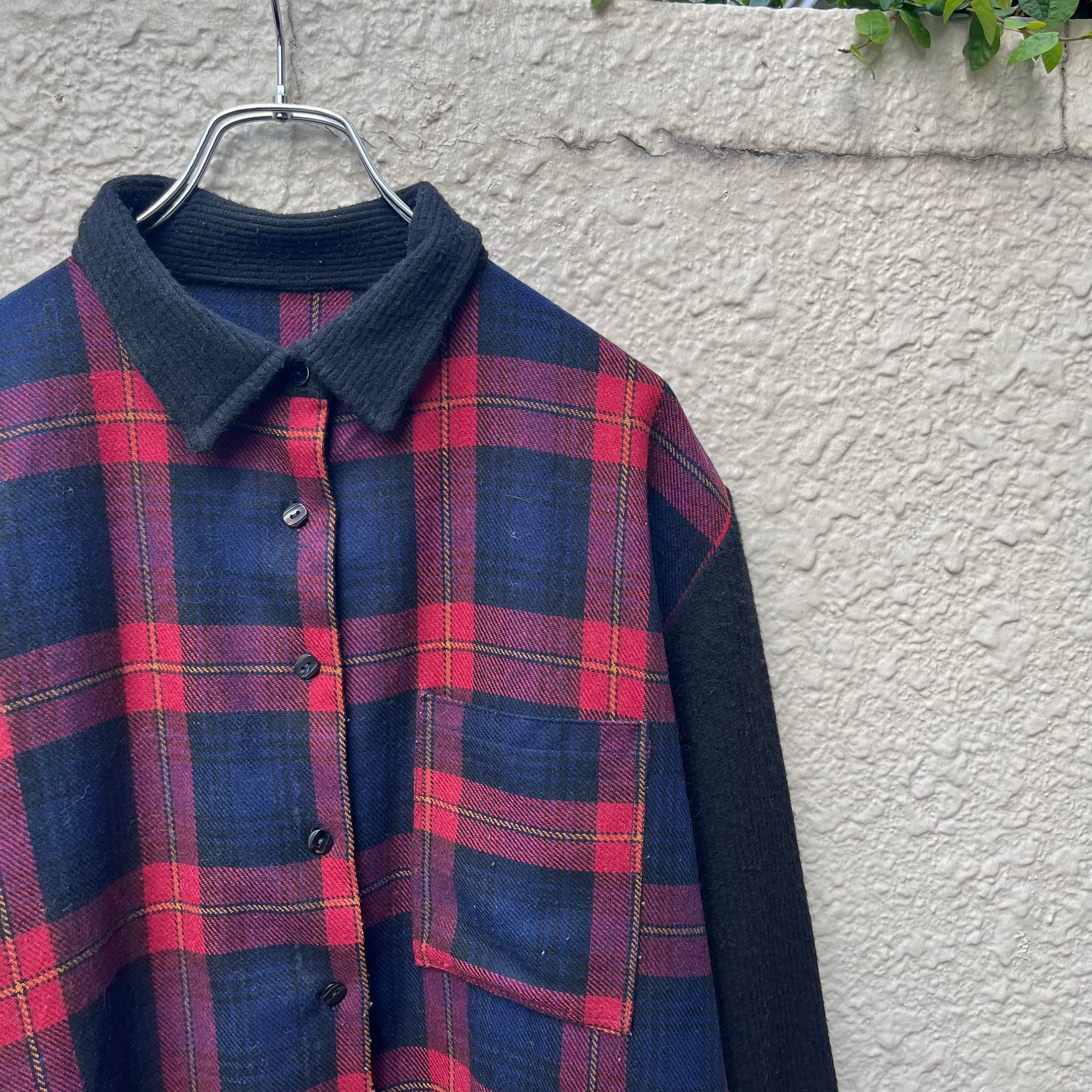 80s〜"Knit Fabric" Euro Plaid Shirt
