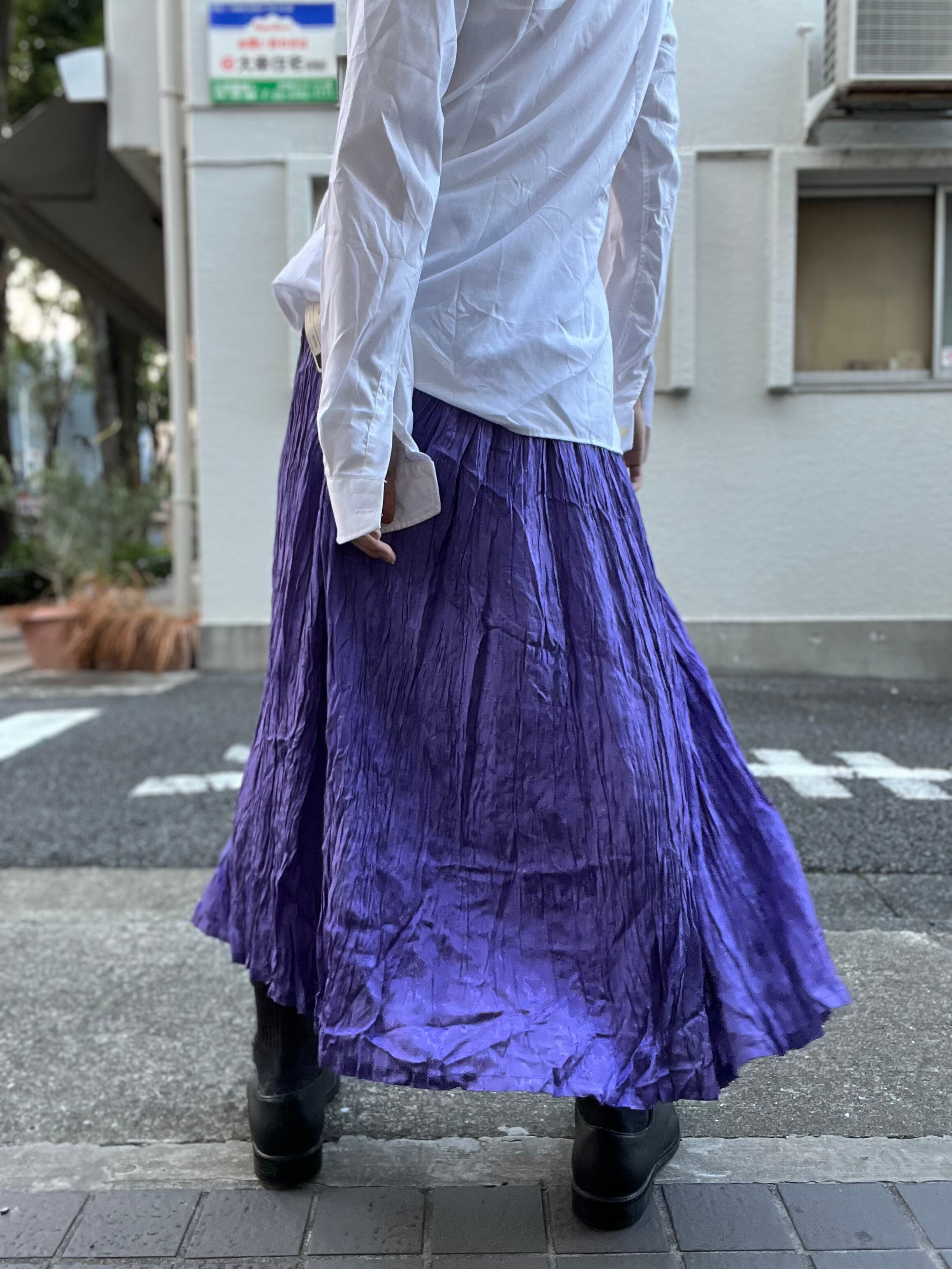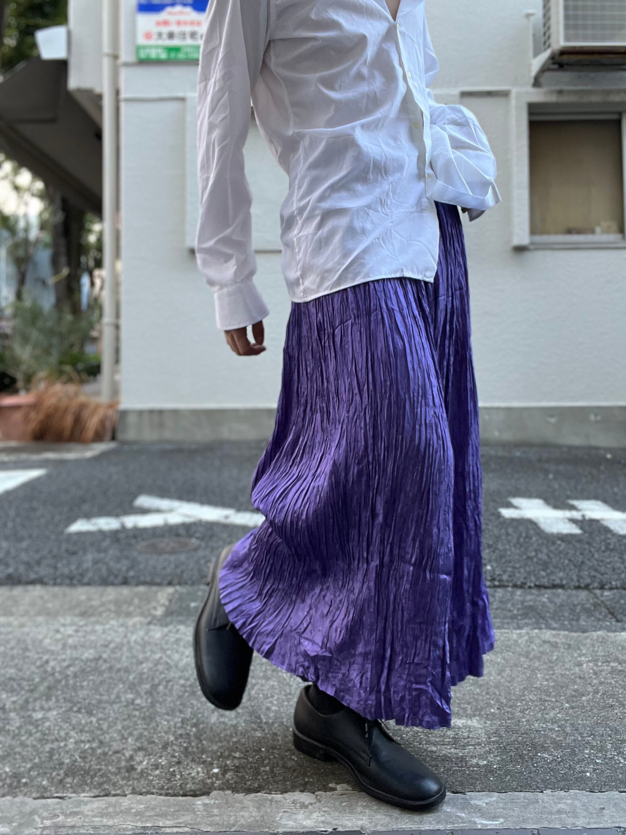 光沢感のあるシワ加工がドレッシーでありながら抜け感を忘れない独特な雰囲気に。