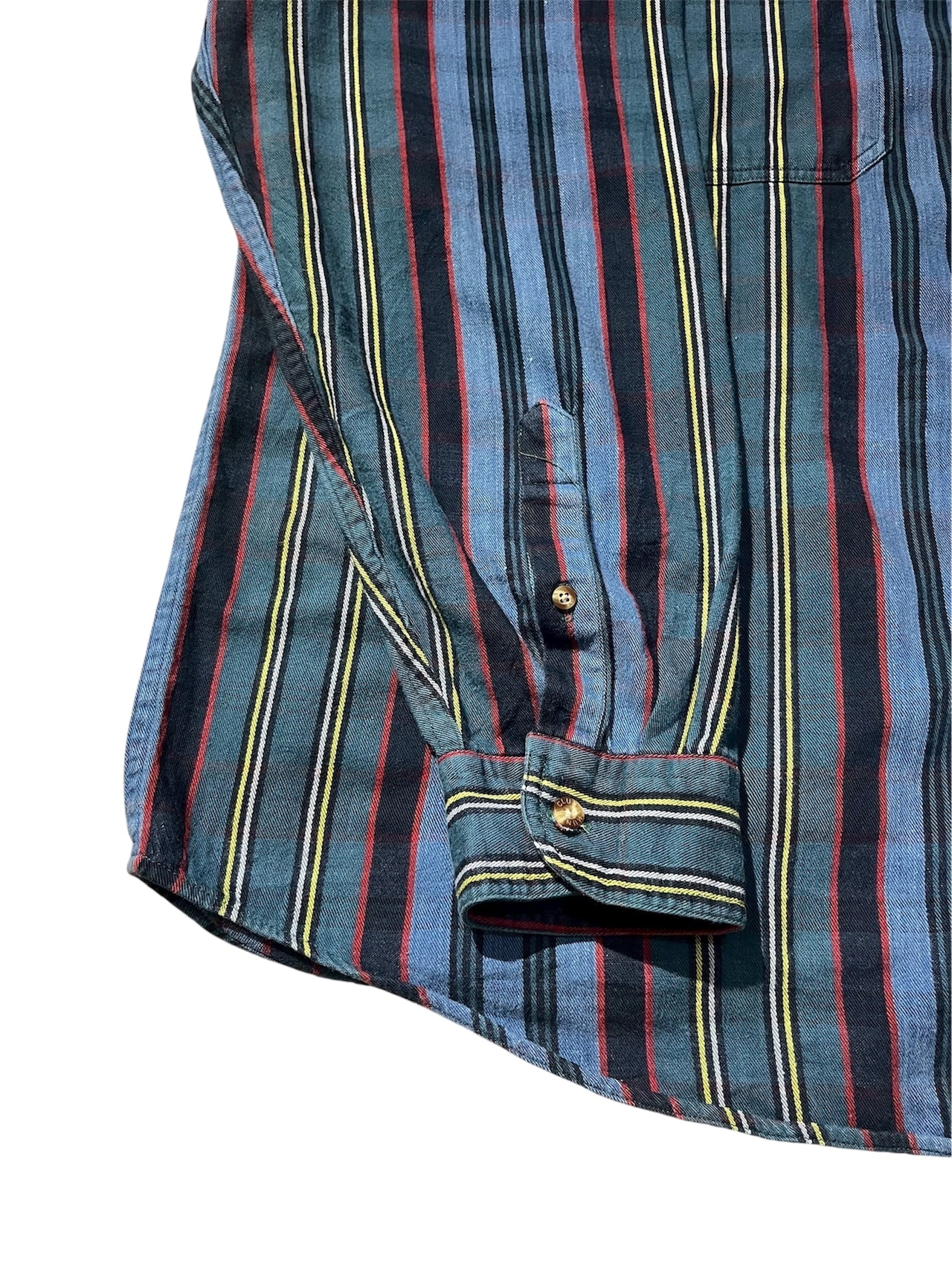 昭和レトロな雰囲気を感じるストライプシャツ。