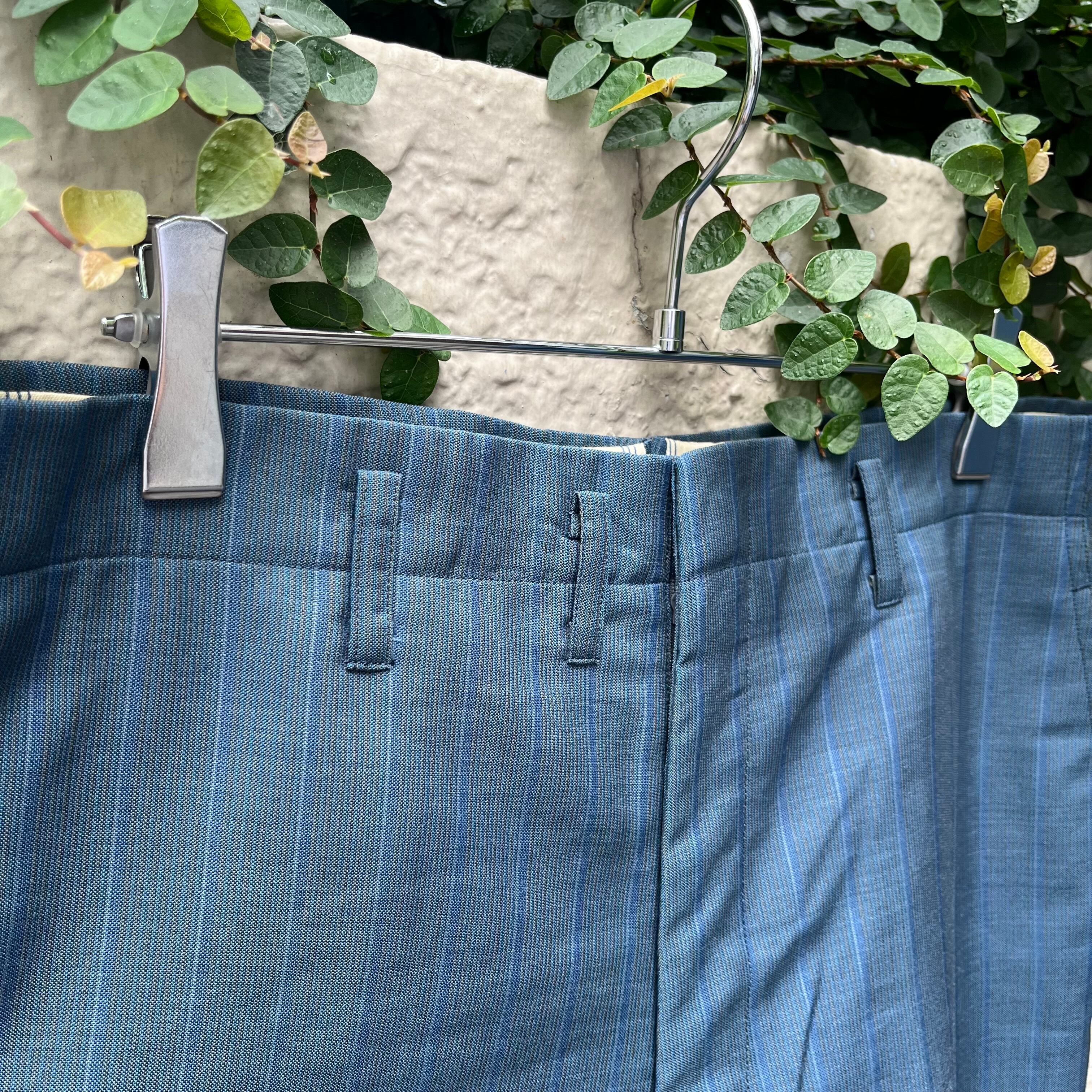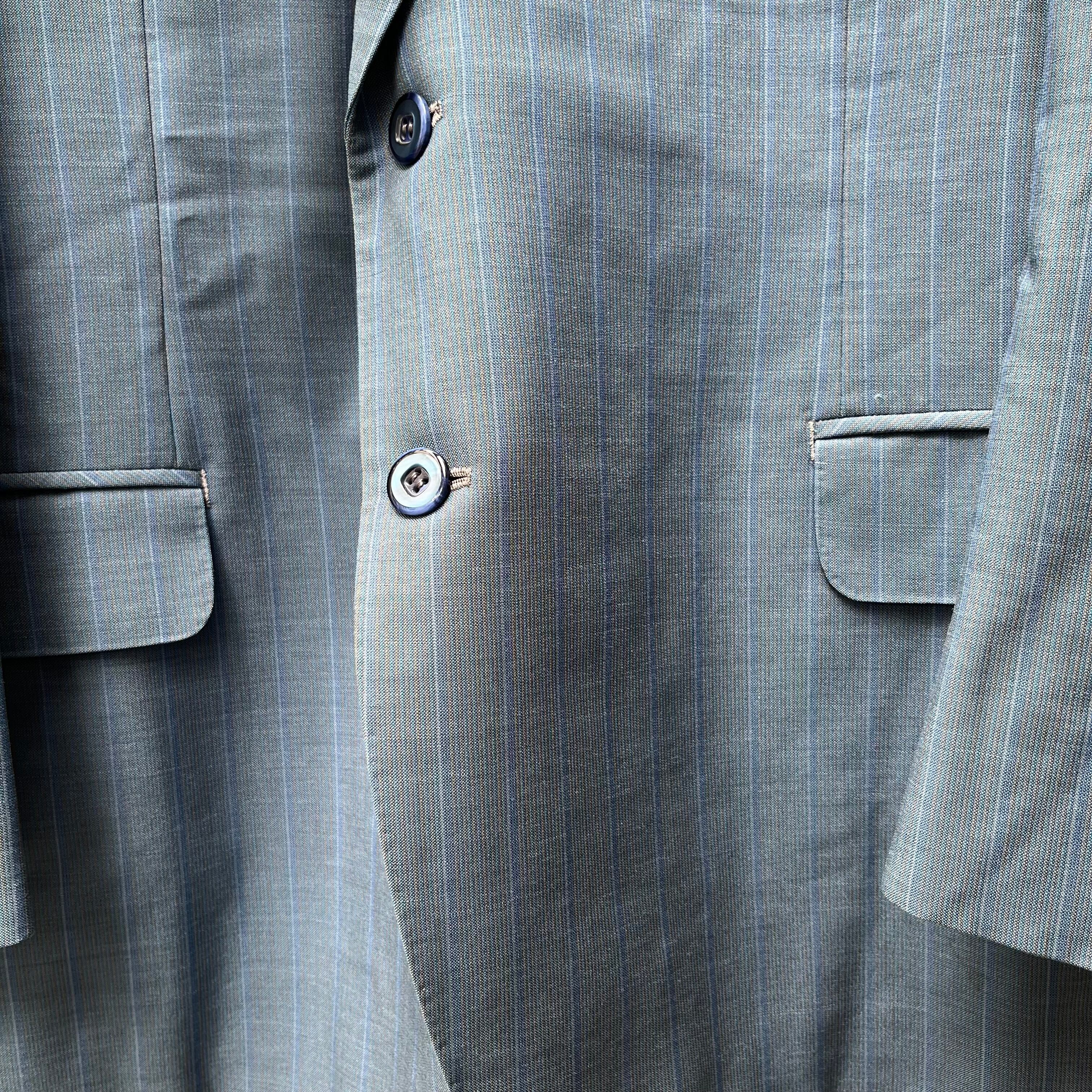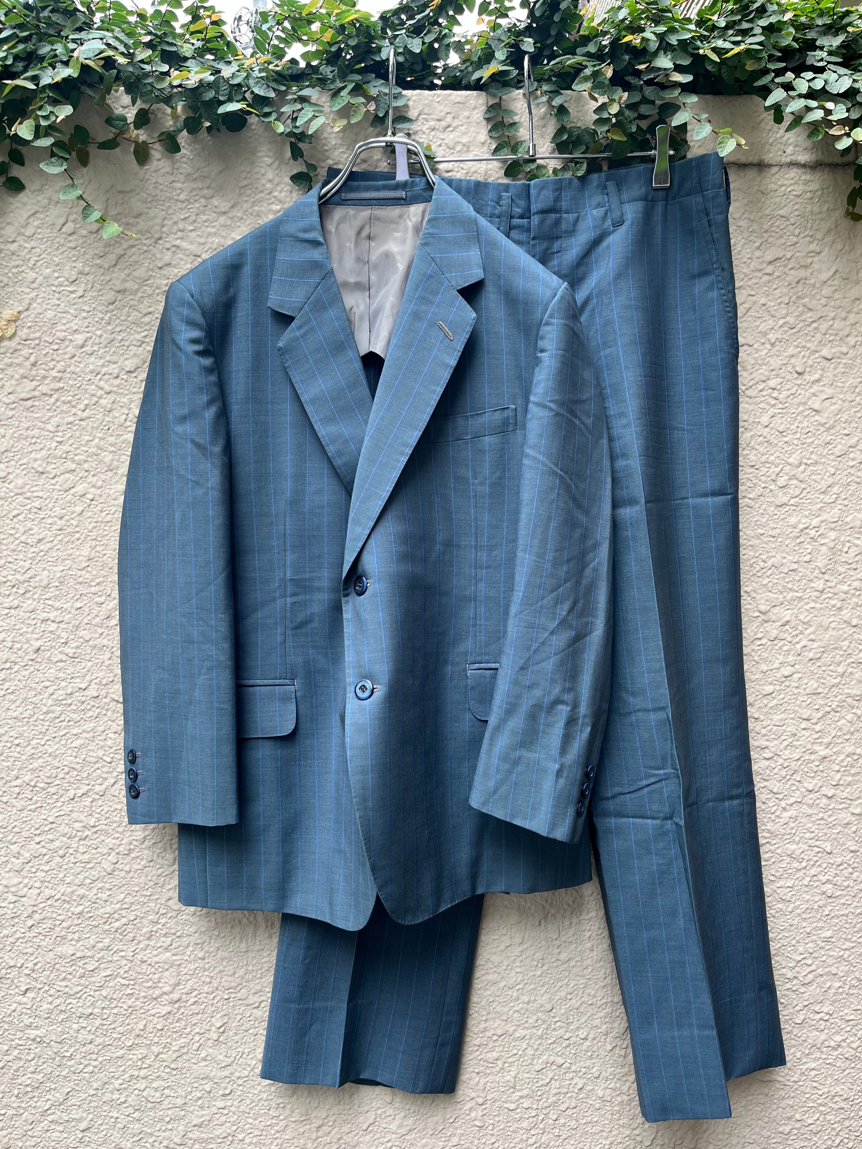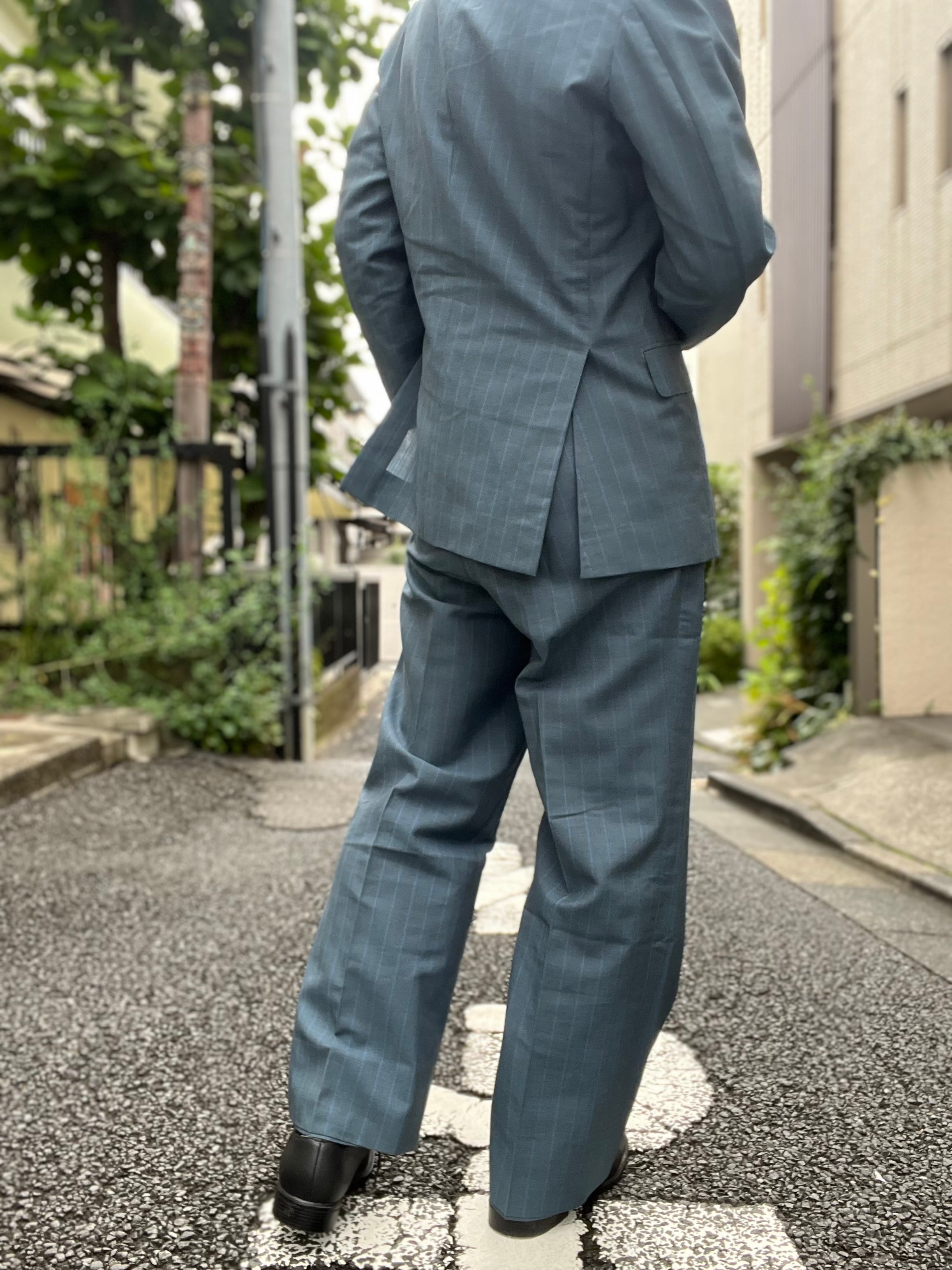 爽やかな中にクラッシックさも香るサックスブルーのセットアップ。