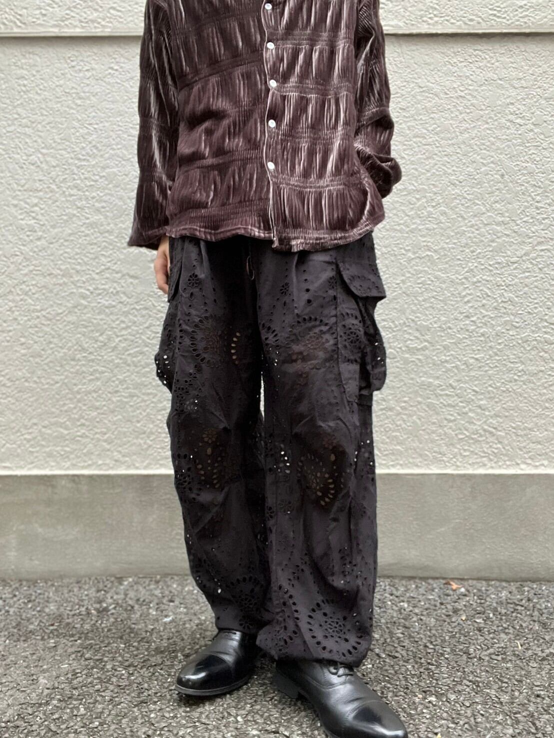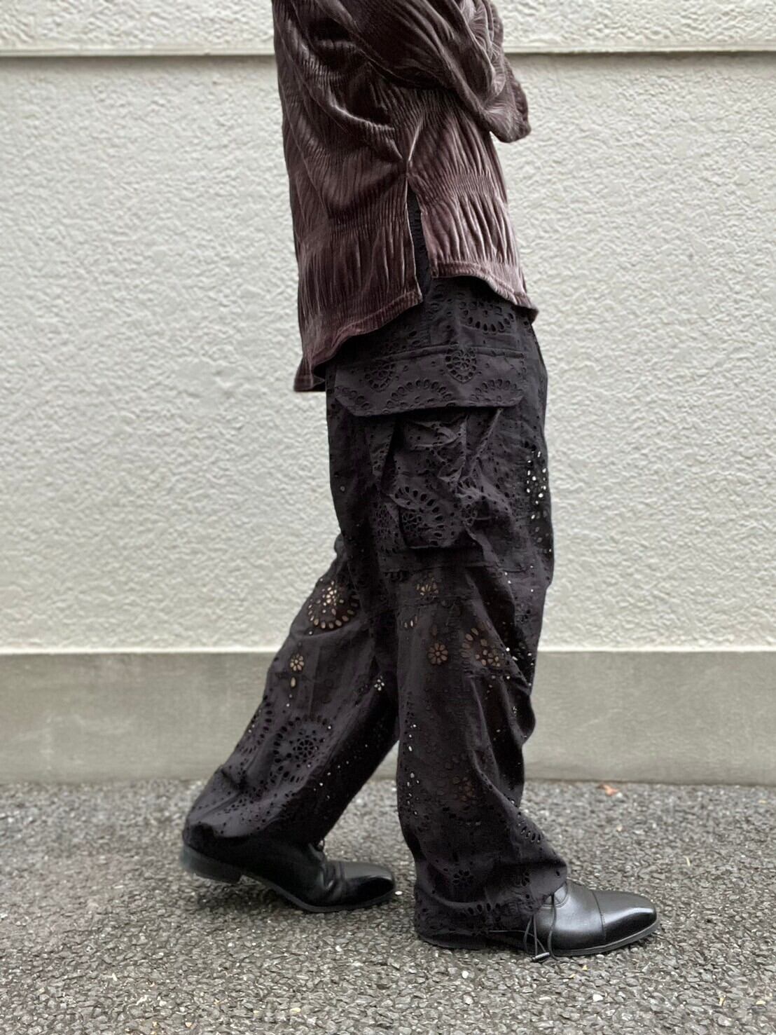 無骨なディテールはそのままに、花柄シアーのフェミニンな要素をプラス。