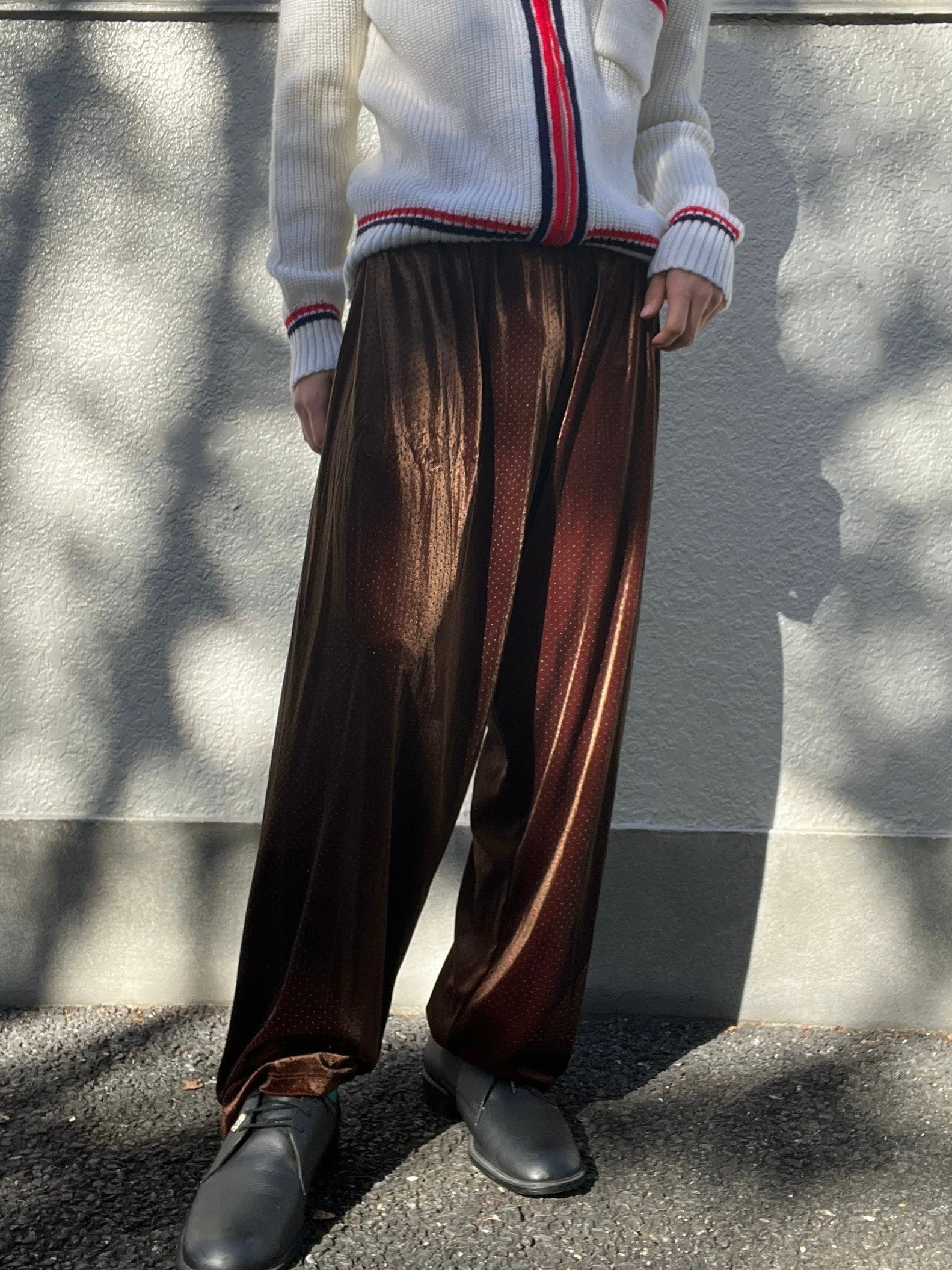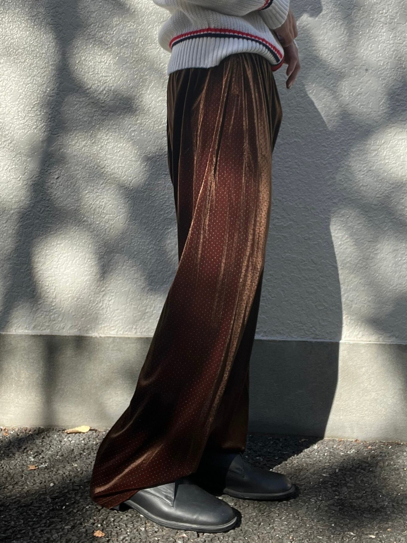 玉虫色のような光沢感も相まってモードに着こなせます。