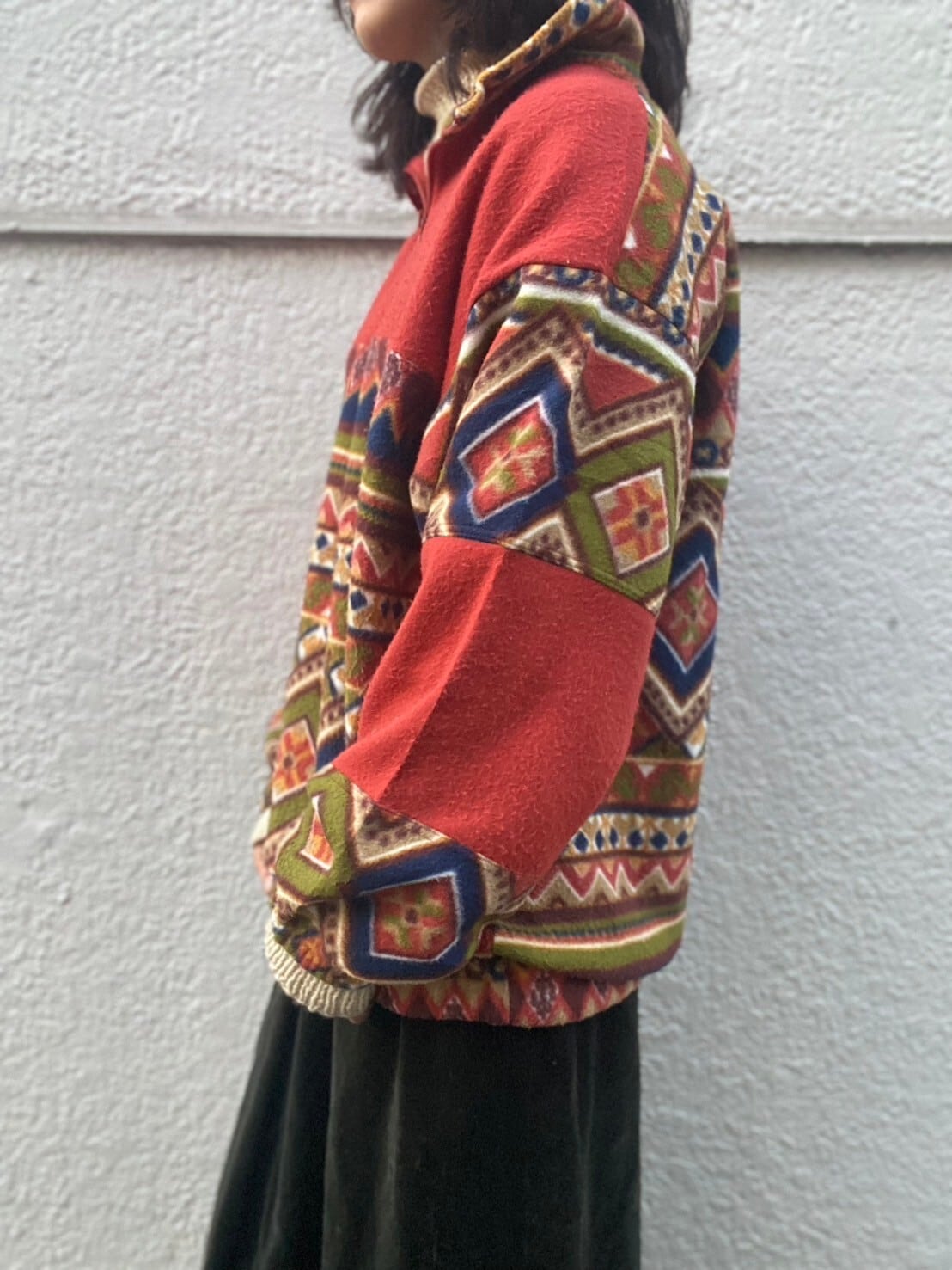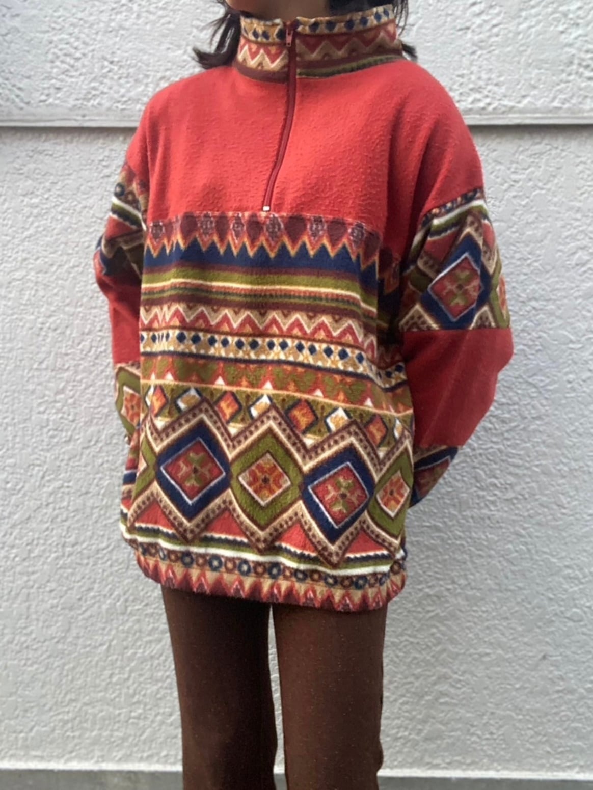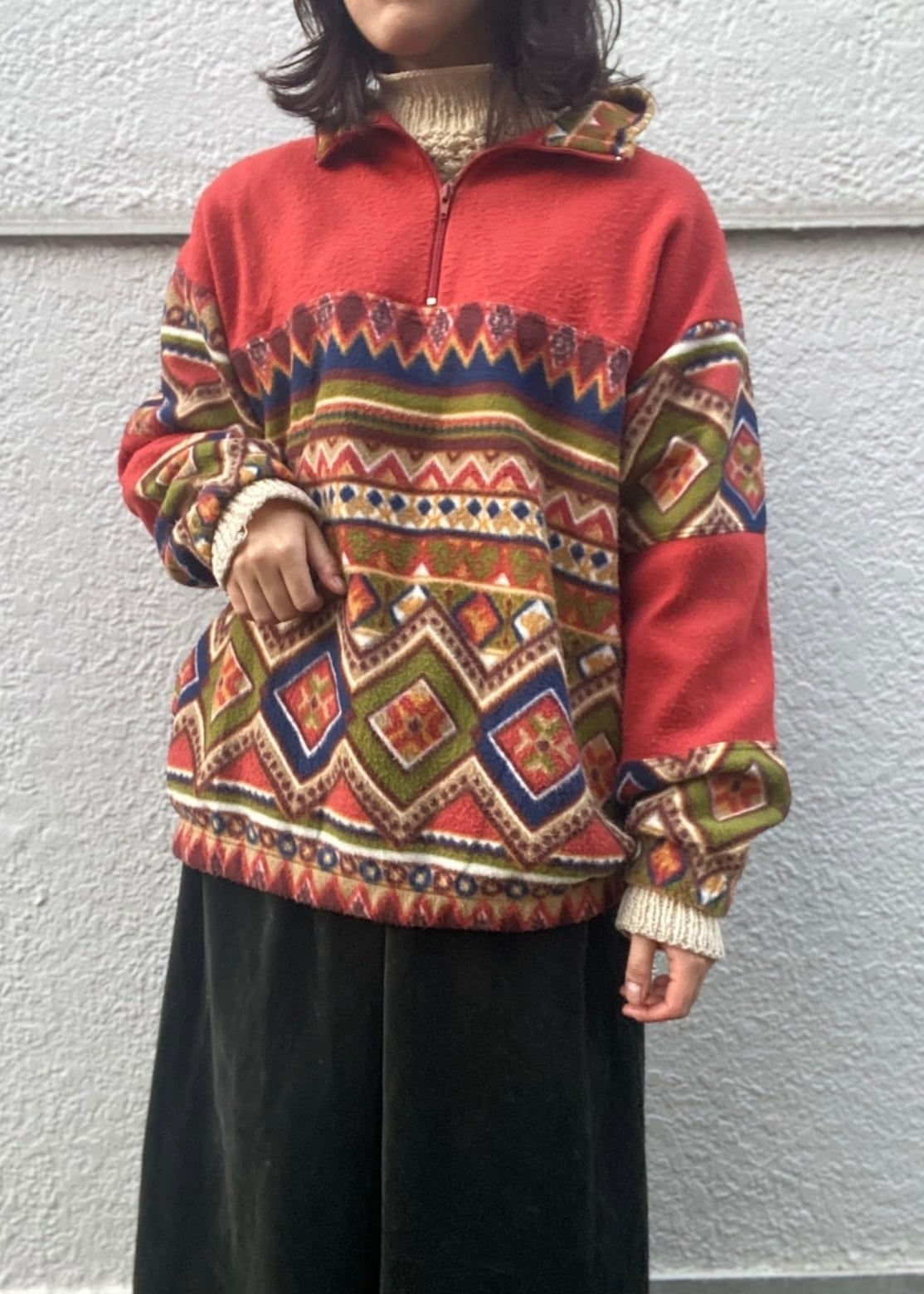 ノルディックな配色が目を惹くフリース。