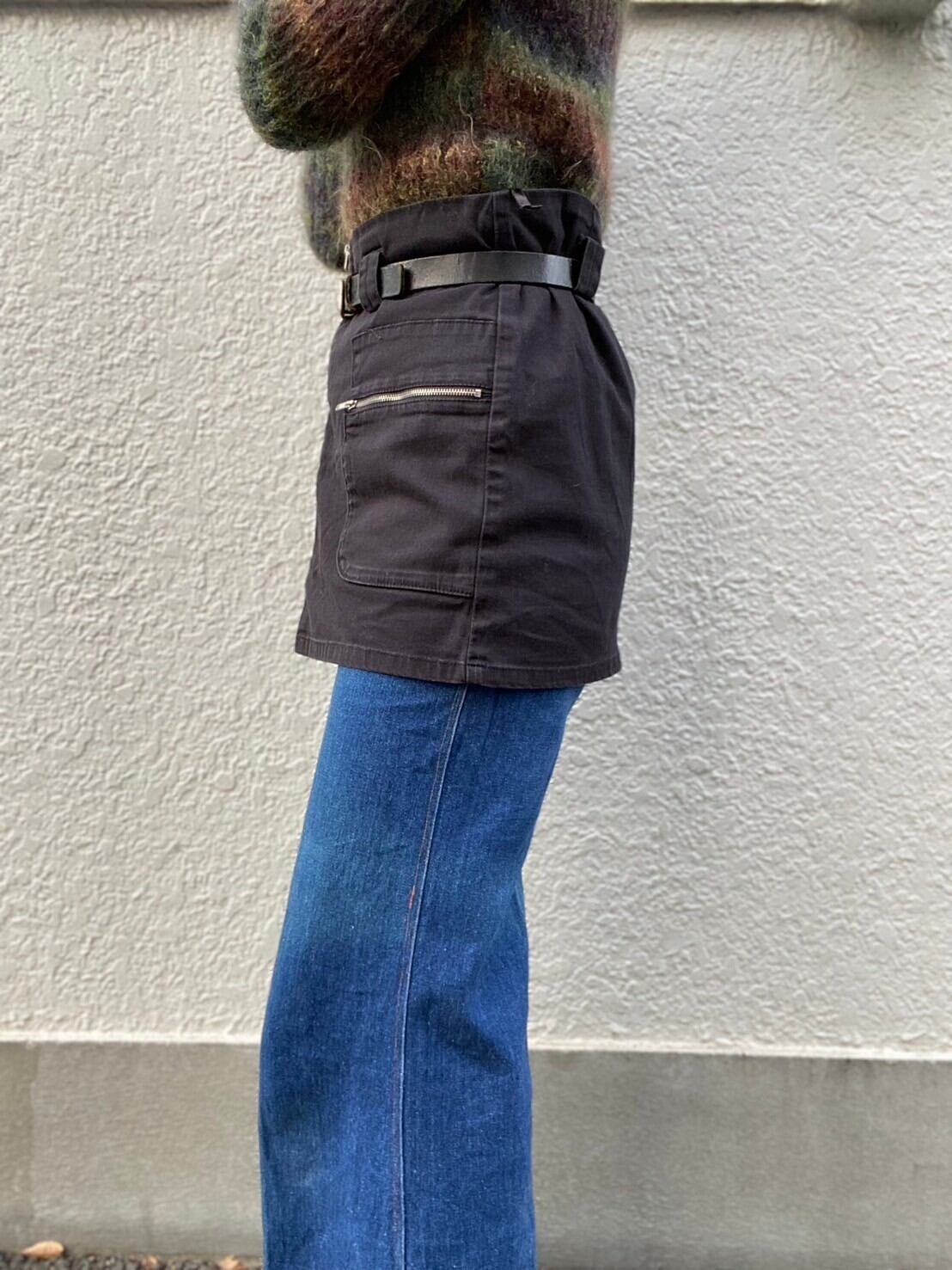 ポケットやベルトループなどはワークパンツのような作り。スカートに落とし込みガーリー×ワークという対極な組み合わせが表現されています。