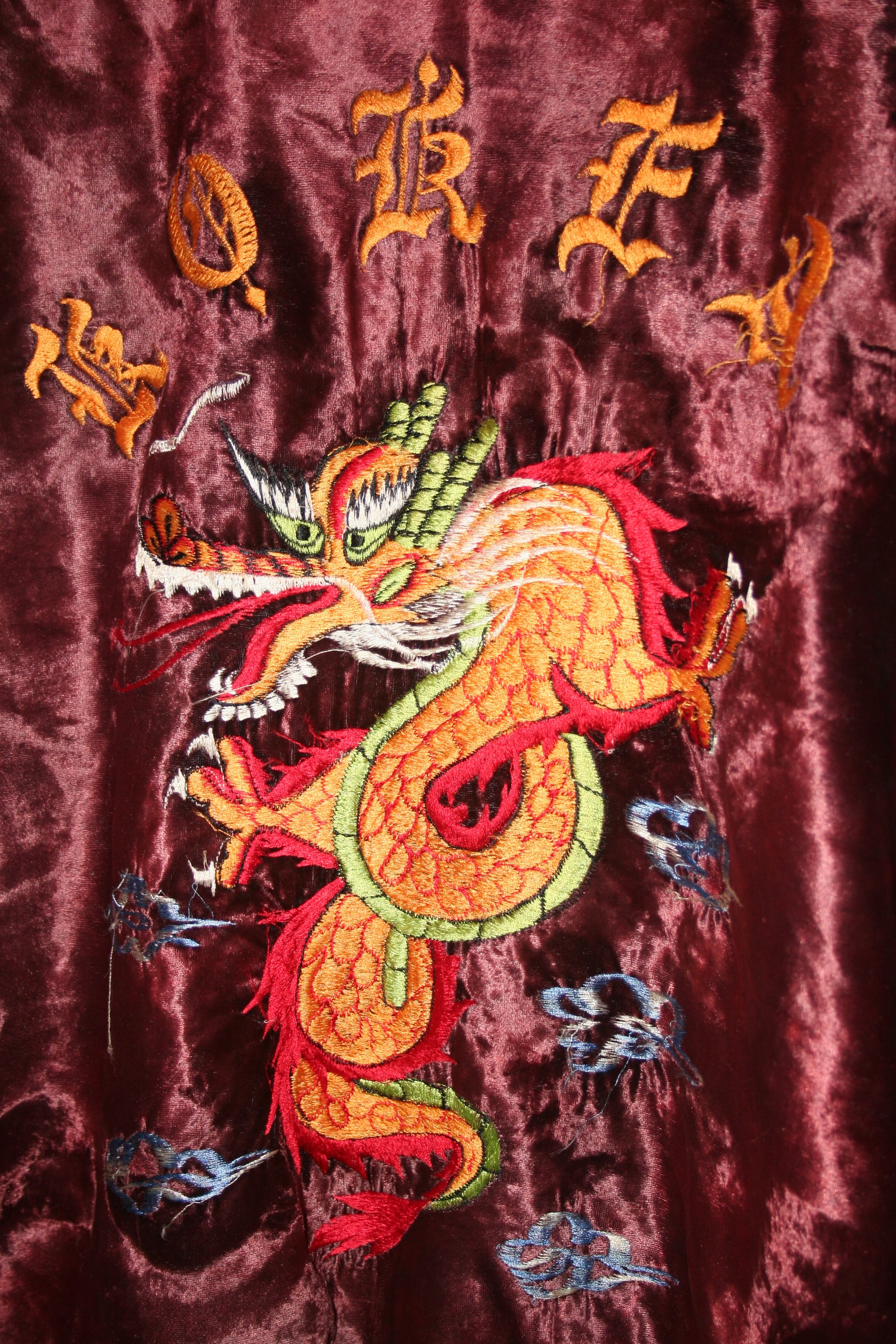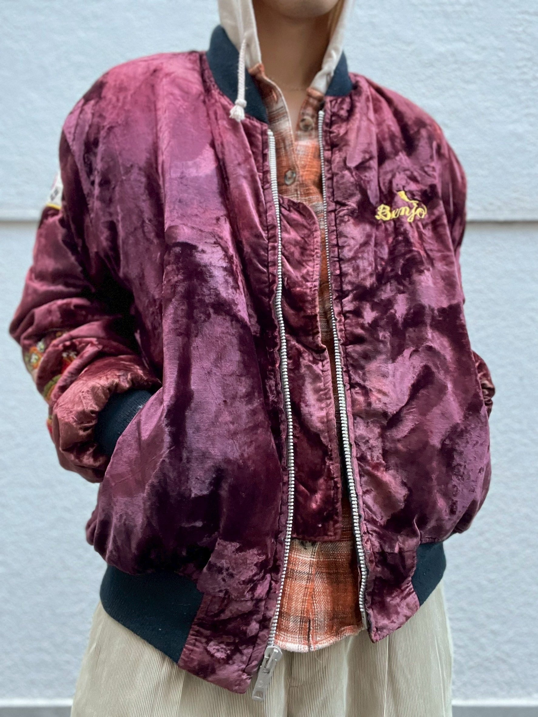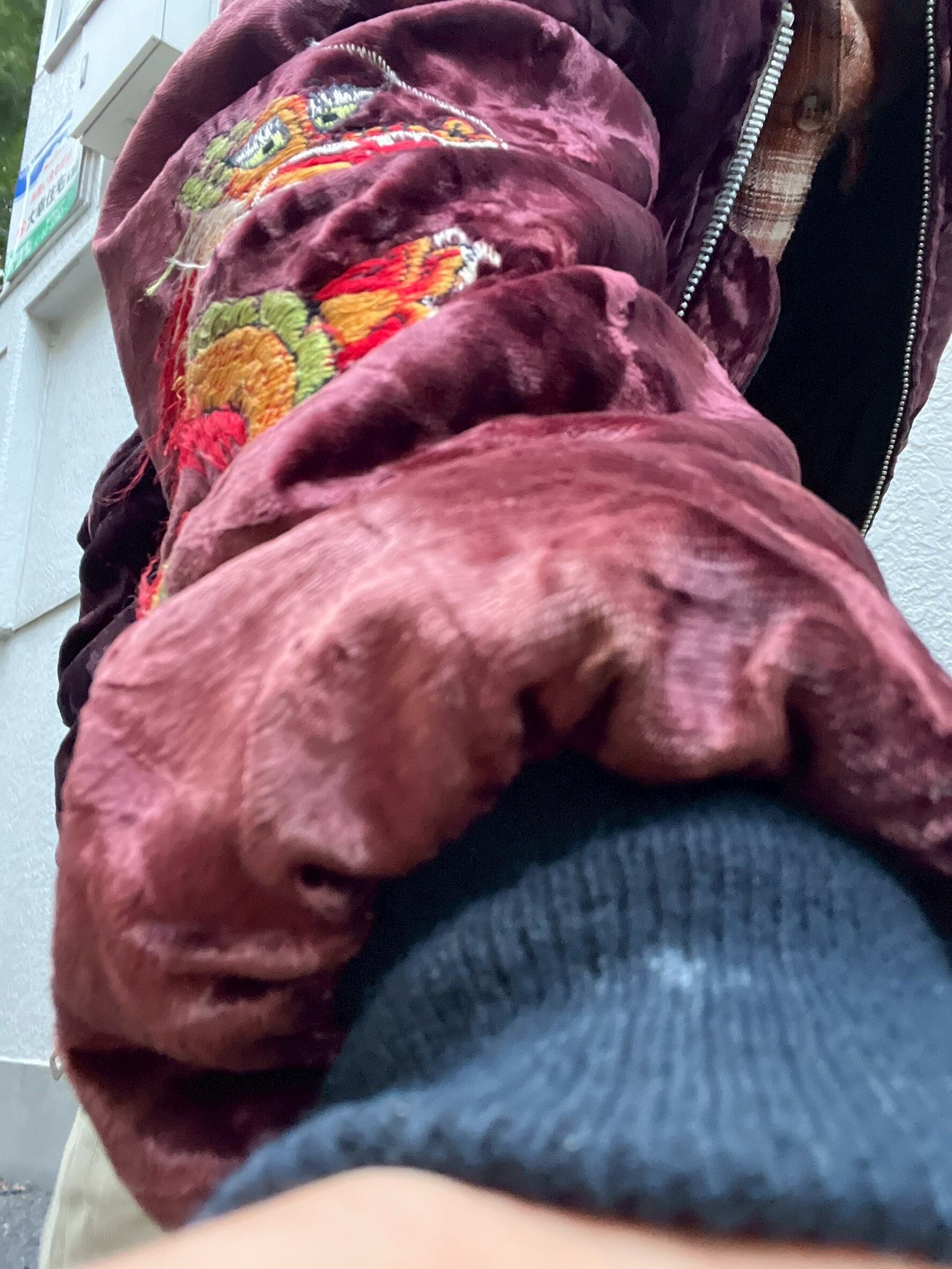 レーヨンやサテン系の生地が多い中、高級感あるベロア素材。光沢のある生地のおかげか龍などのステッチデザインがより輝いて見えます。