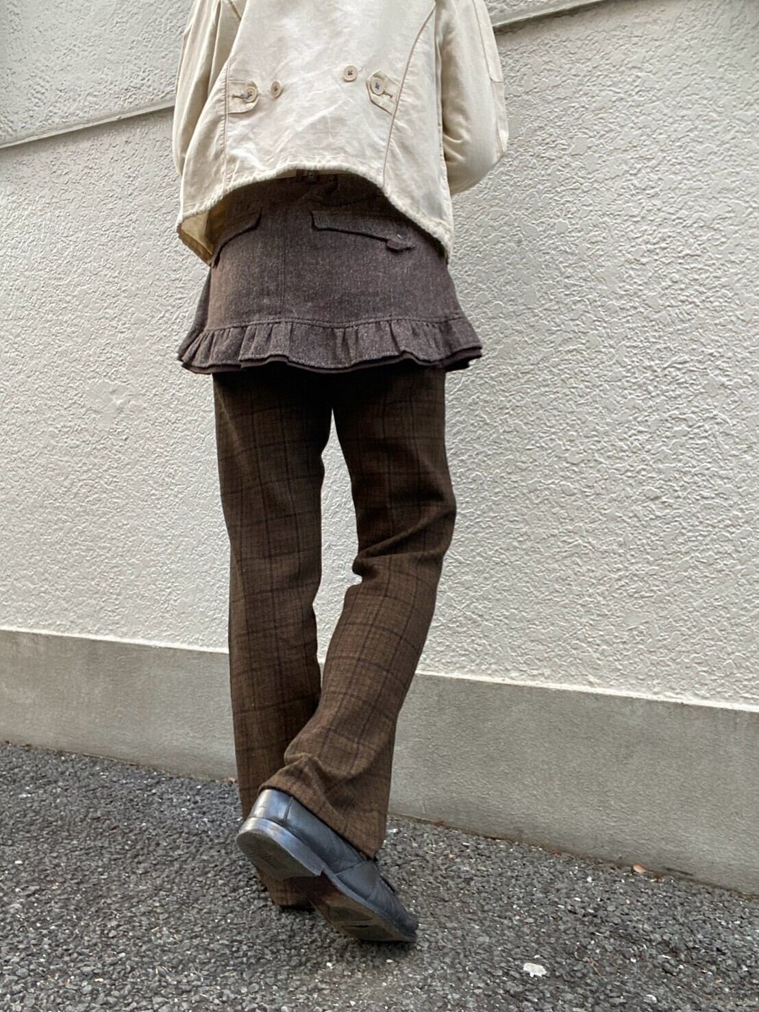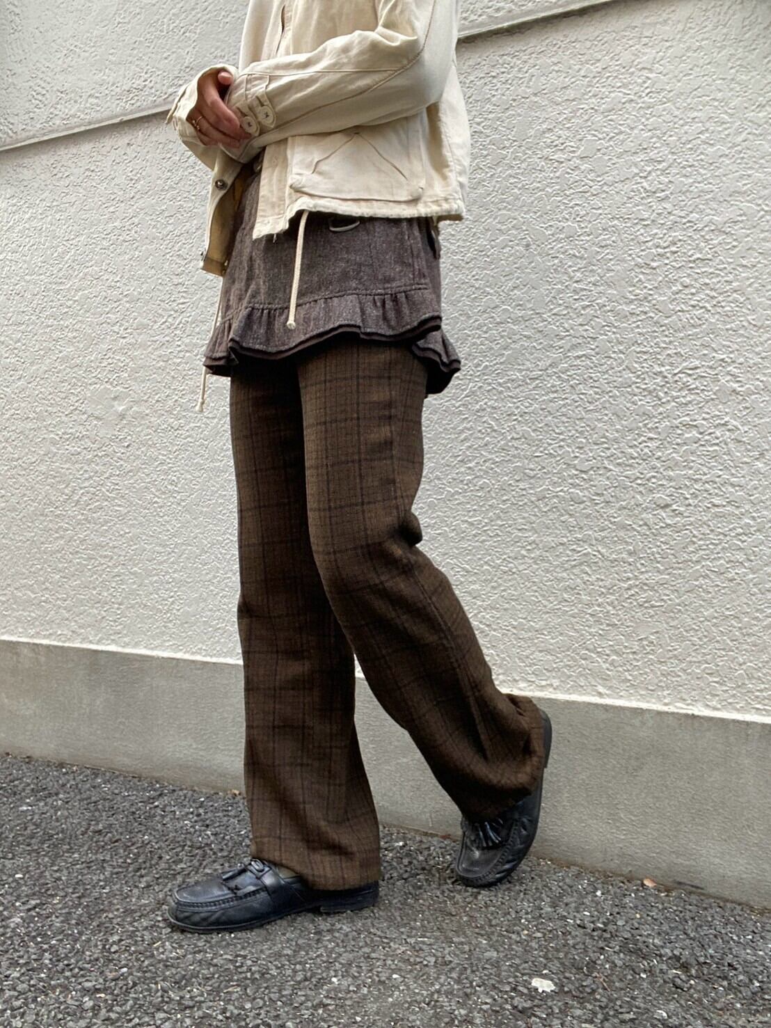 スラックスも生地を変えれば秋冬にも選びやすいアイテムに様変わりです。